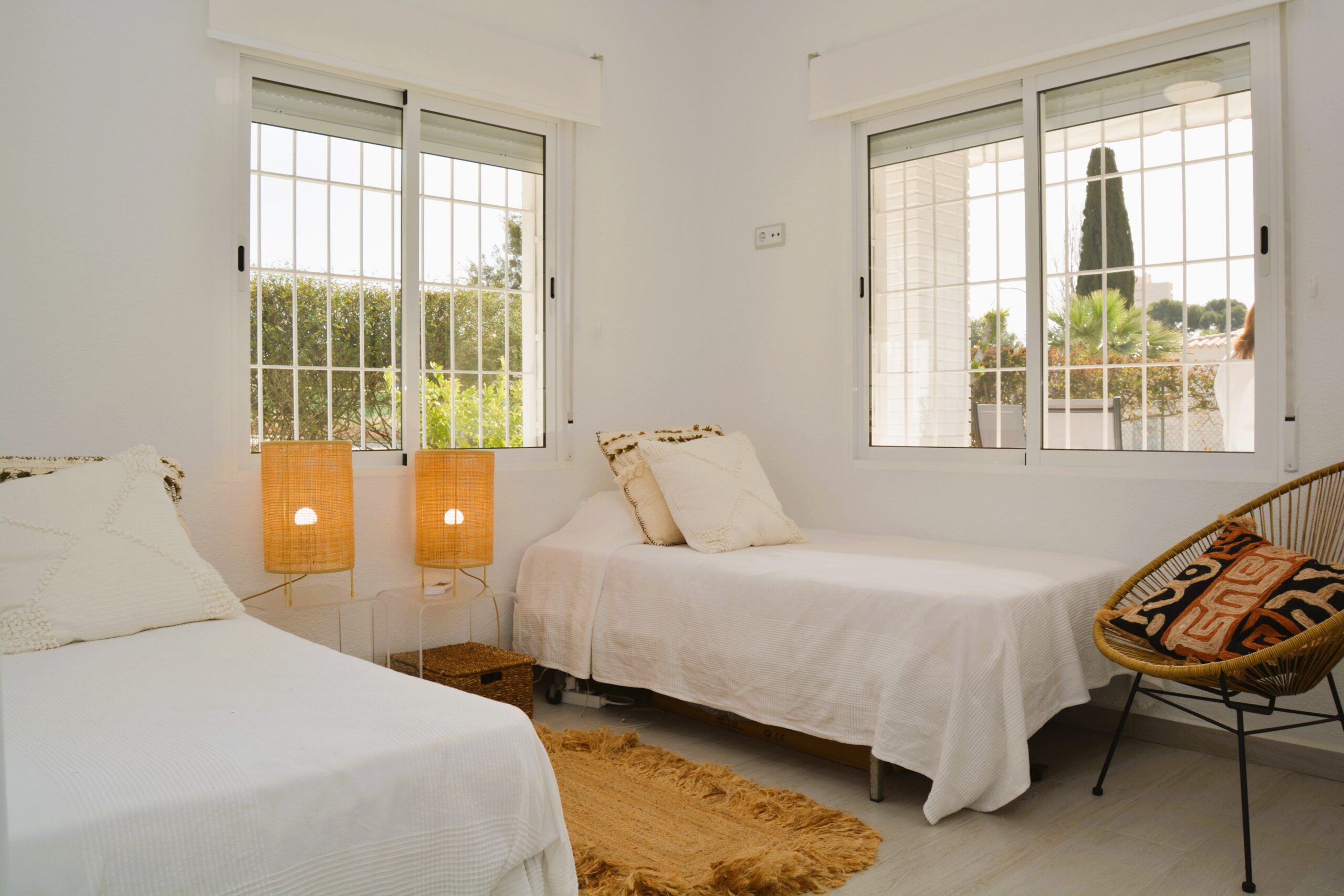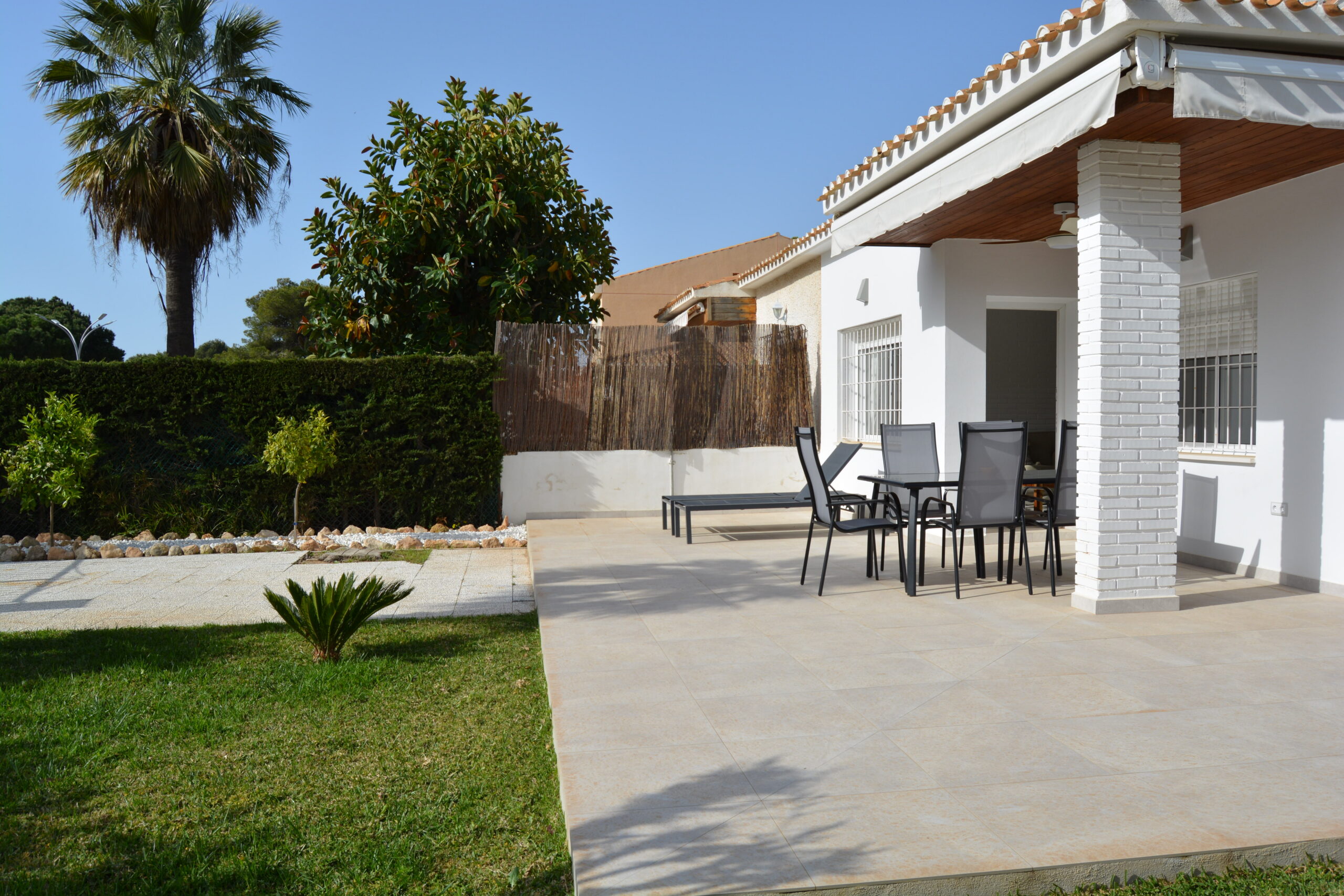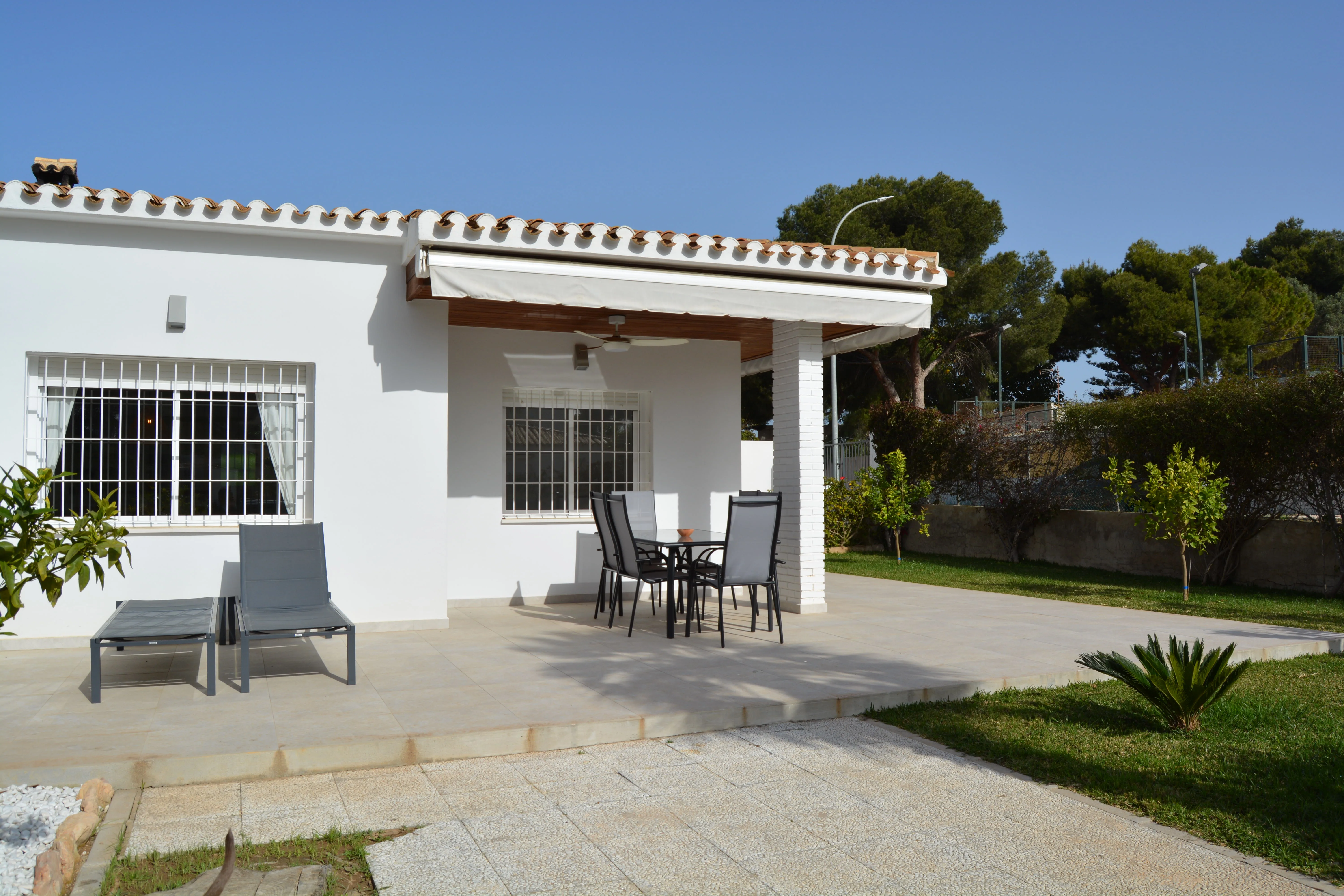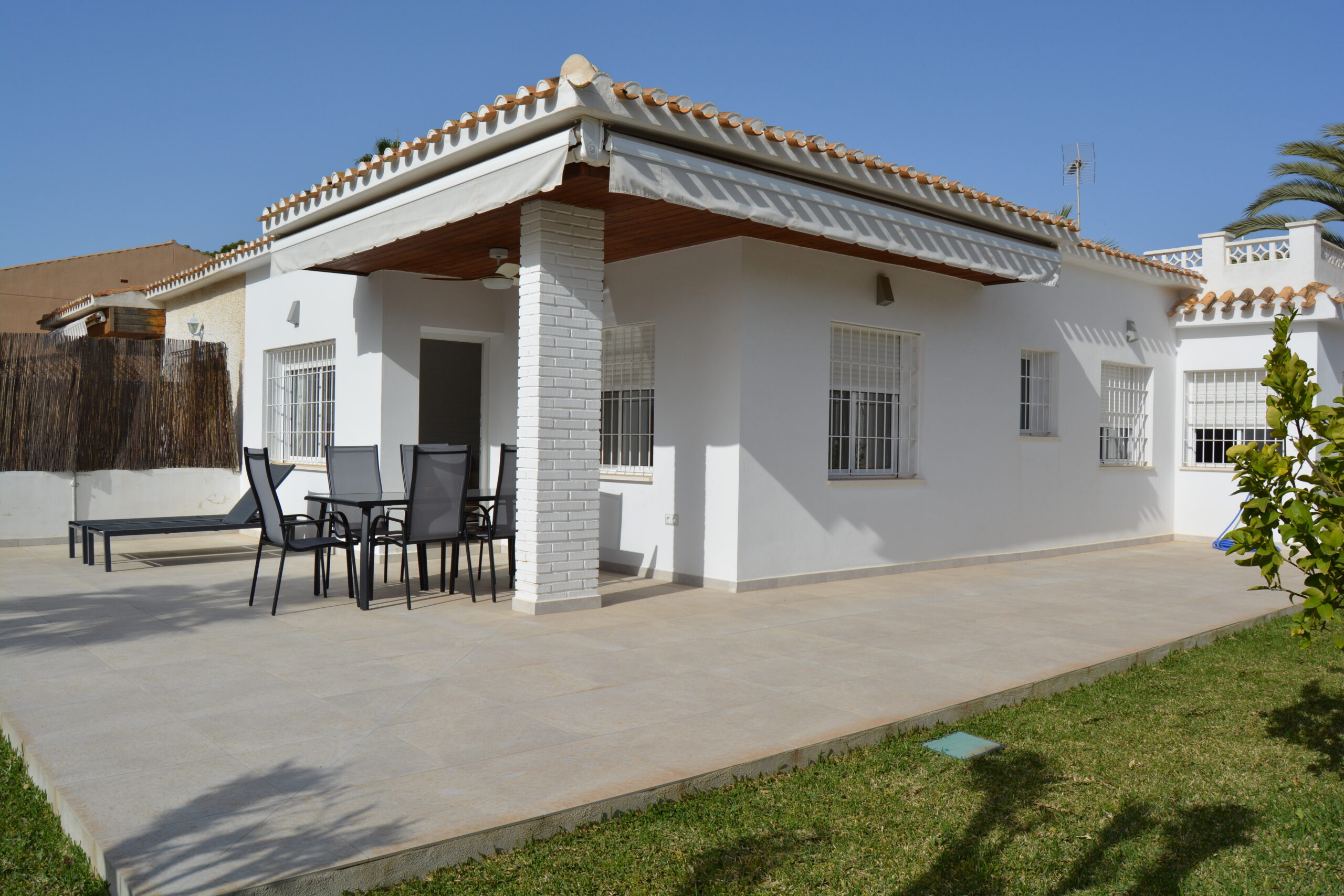 Estupendo mini chalet en Campoamor totalmente reformado con un amplio jardín ideal para disfrutar de una magnifica estancia. La vivienda tiene un salón comedor muy luminoso, la cocina es americana, muy bien equipada, con acceso a una zona de lavadero y a una pequeña terraza. Dispone de tres dormitorios, dos baños, un porche cubierto con toldo, tiene acceso a una zona comunitaria con piscina y zonas verdes. La vivienda se encuentra cerca de todos los servicios, bares, restaurantes, zonas verdes, supermercado y las mejores playas de la zona. Este apartamento no se puede reservar por menos de 11 noches. Es una estancia mid term conforme al Decreto Ley 9/2024 del gobierno de la Comunidad Valenciana..