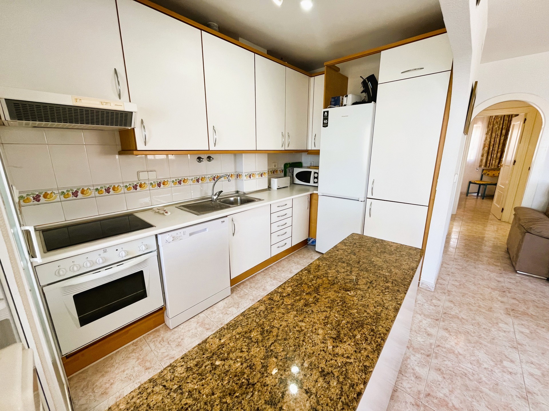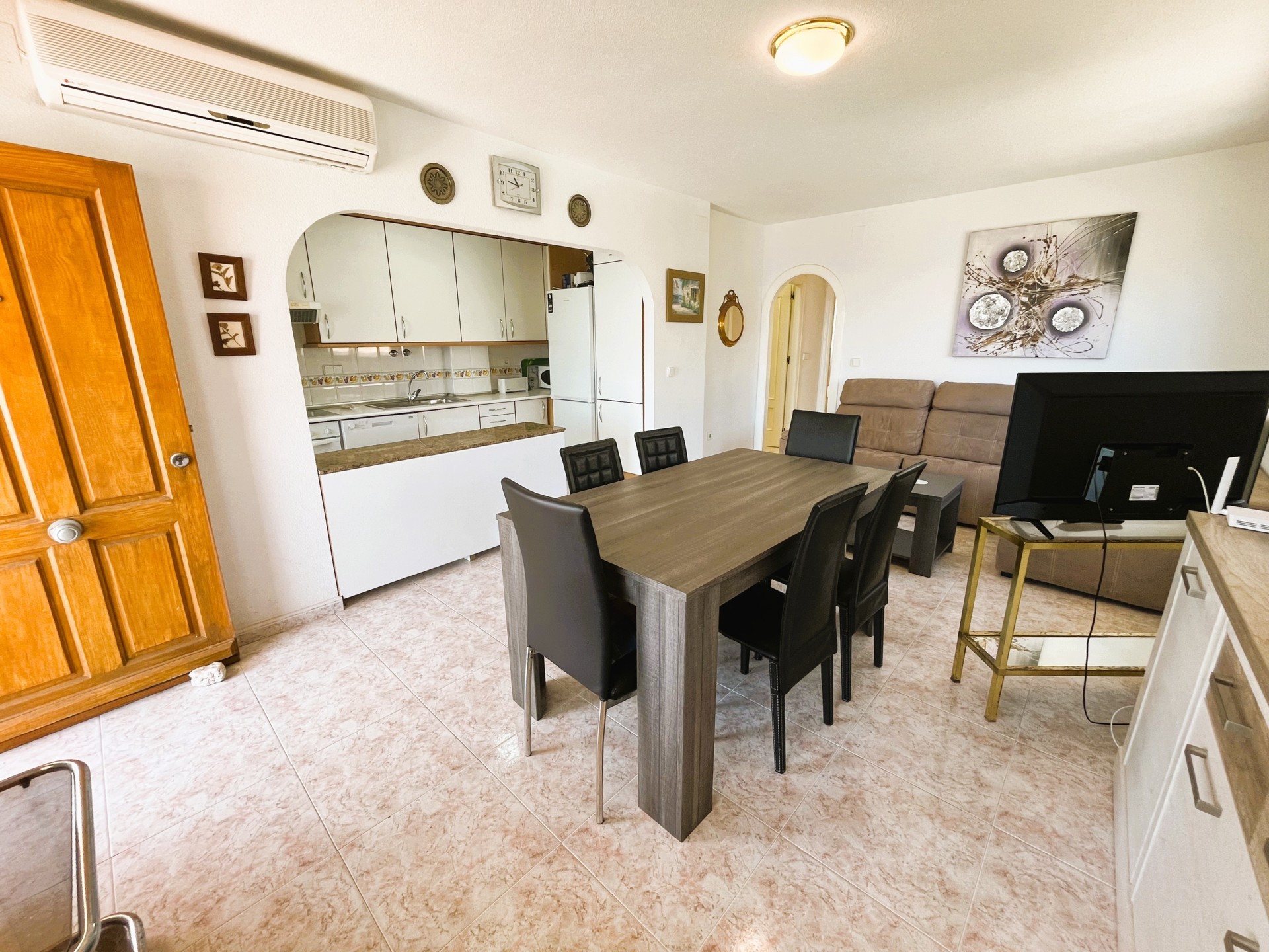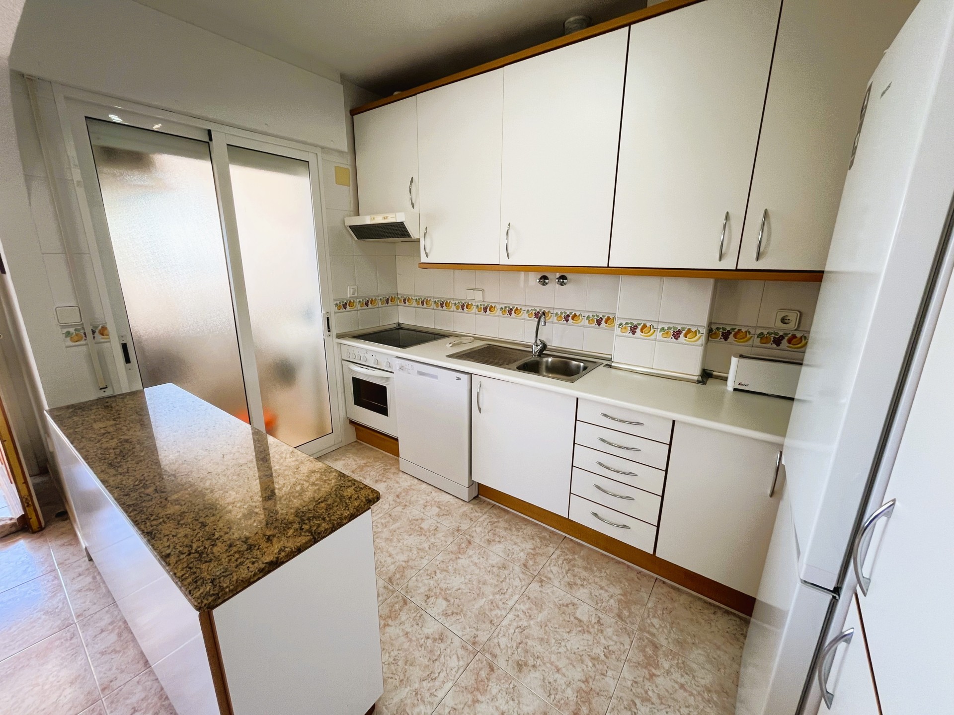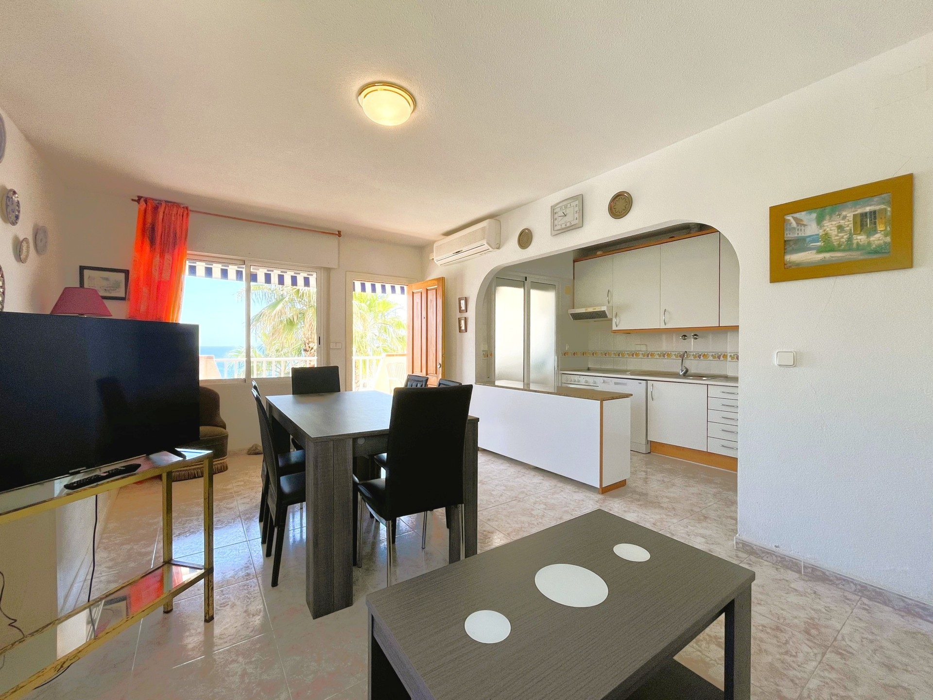 Increíble apartamento en alquiler en el residencial Aguamarina, Dehesa de Campoamor, a solo 120 metros de la playa. Esta luminosa vivienda de dos dormitorios cuenta con una espectacular terraza con vistas al mar, perfecta para relajarse y disfrutar de magníficos amaneceres. El apartamento ofrece un amplio salón-comedor con grandes ventanales que permiten la entrada de luz natural, conectado a una cocina totalmente equipada con zona de lavadero. Ambos dormitorios disponen de armarios empotrados y comparten un baño completo. Entre sus comodidades, destaca el acceso a una piscina comunitaria y una plaza de aparcamiento. Su ubicación es excelente, cerca de todos los servicios: restaurantes, supermercados, bares, pistas de tenis y pádel, y algunas de las mejores playas de la zona. Estancia mínima de 11 noches. Este alojamiento se ofrece como alquiler de media estancia, conforme al Decreto Ley 9/2024 del Gobierno de la Comunidad Valenciana..