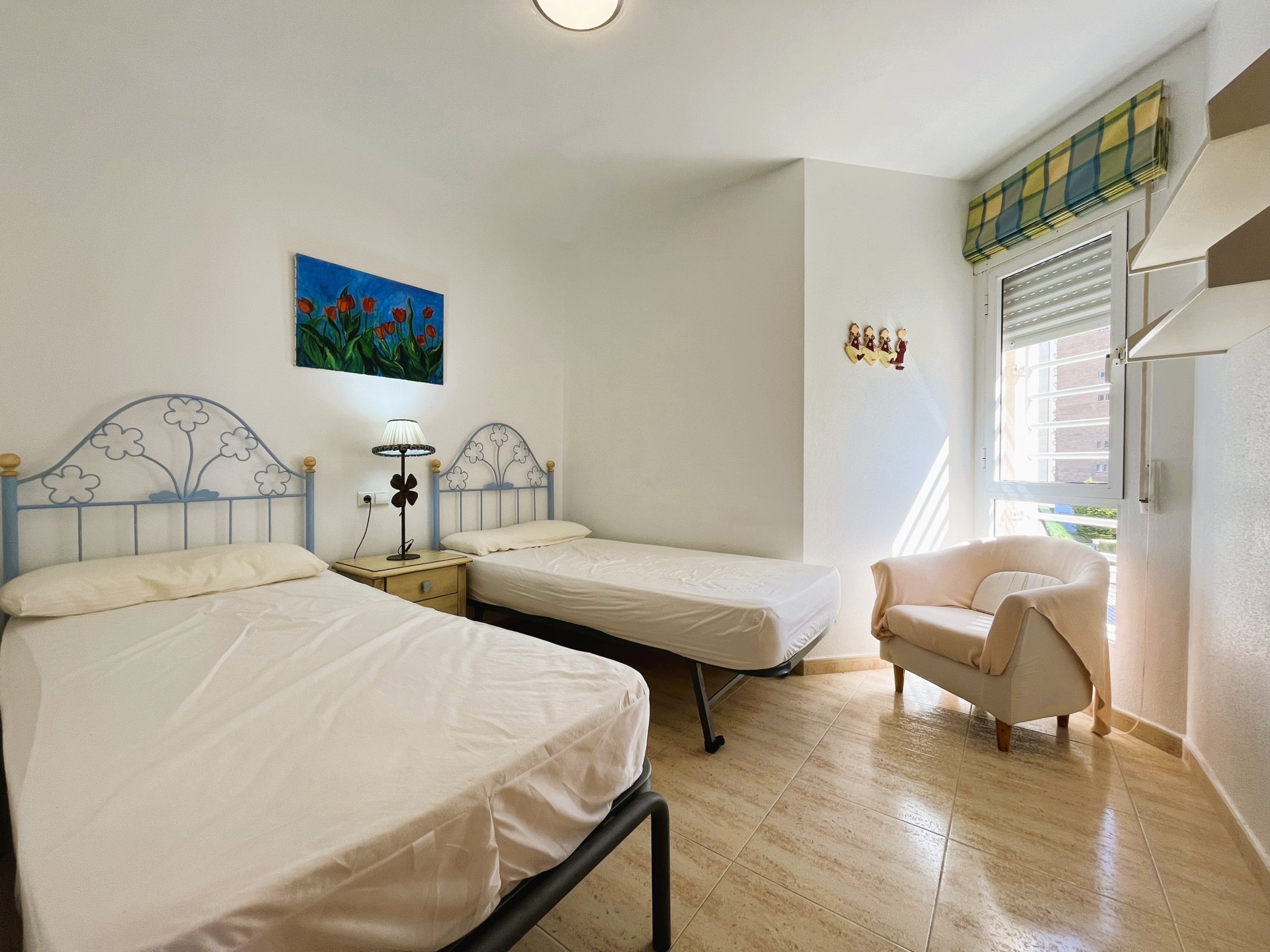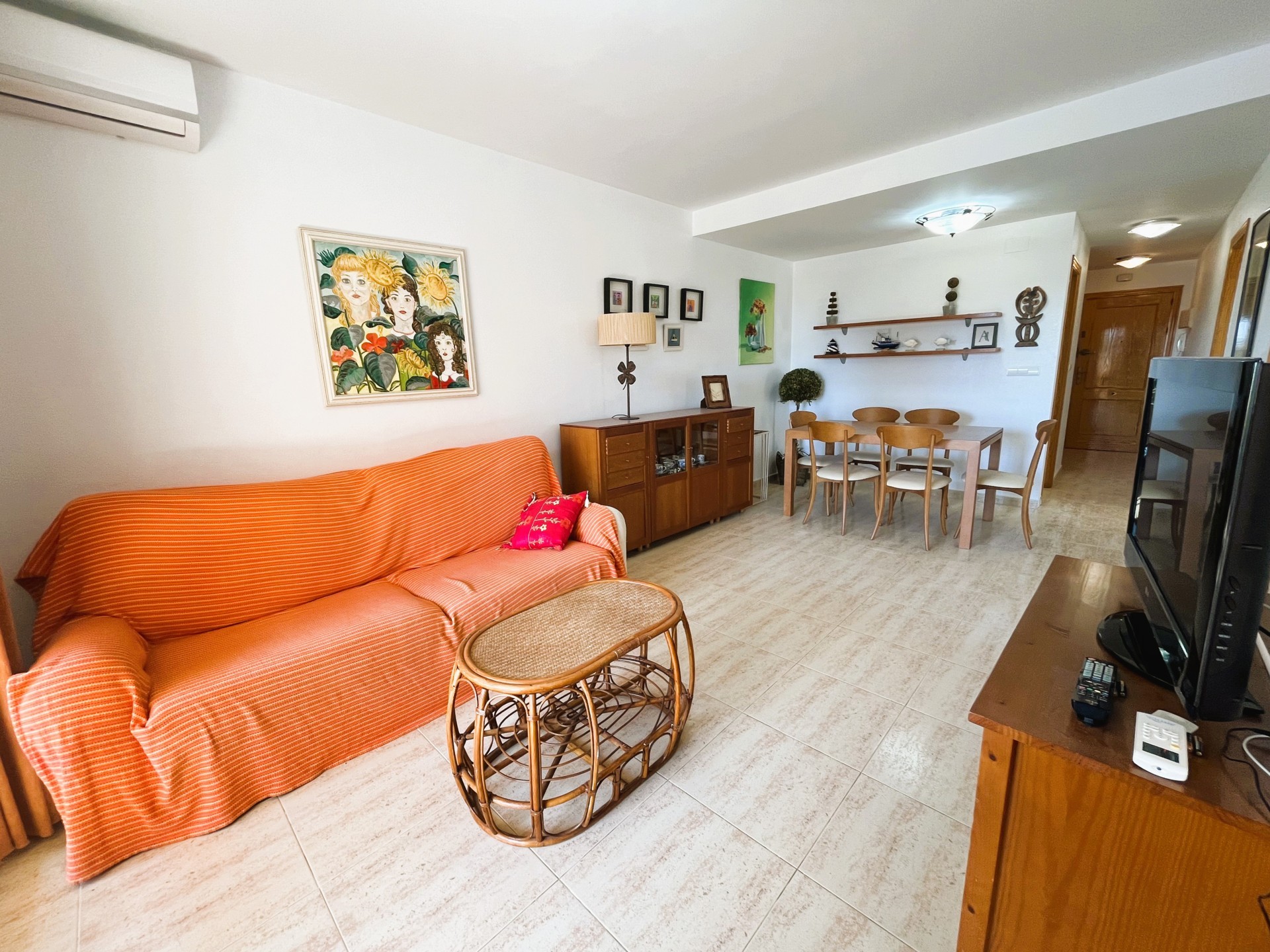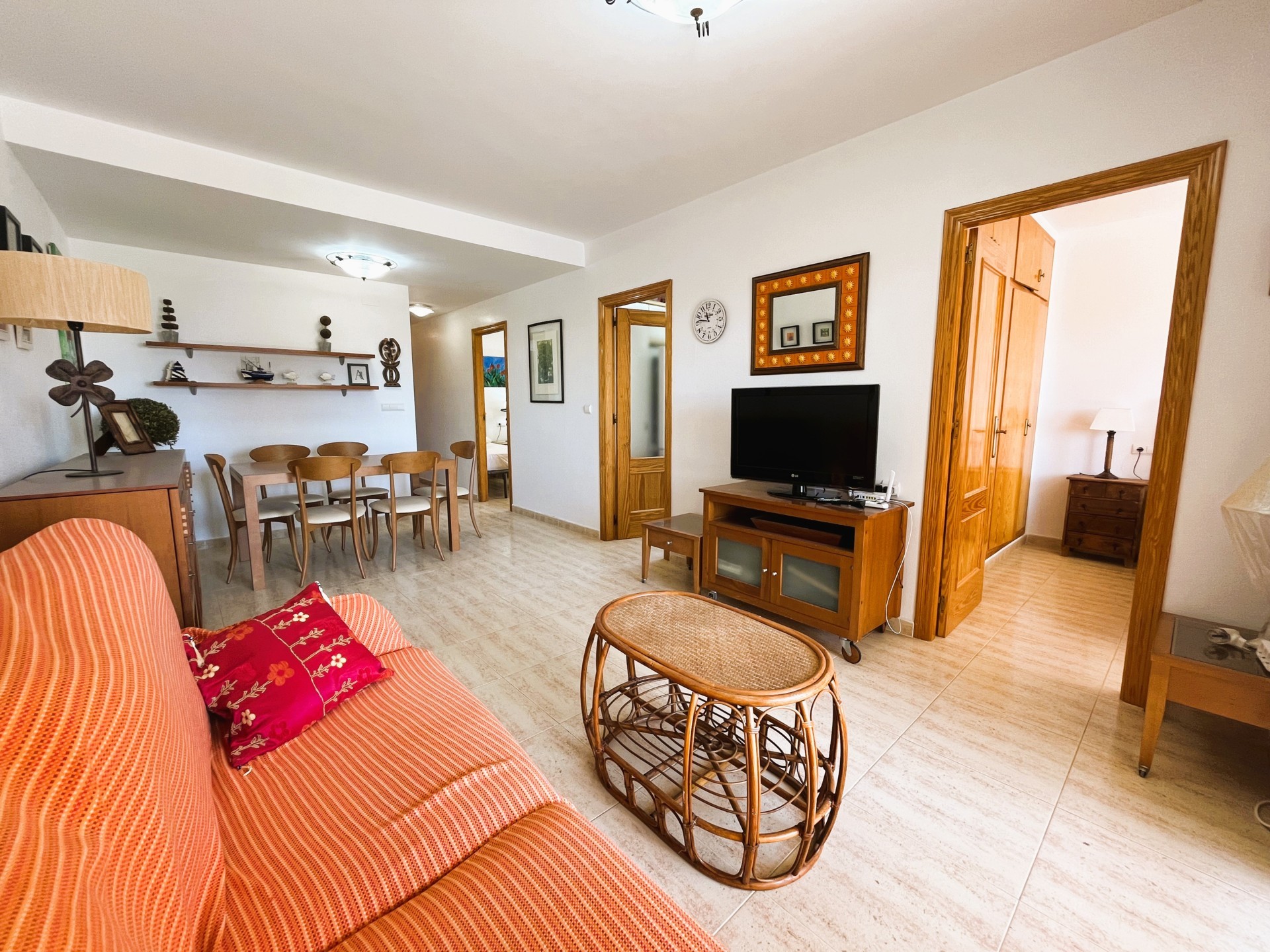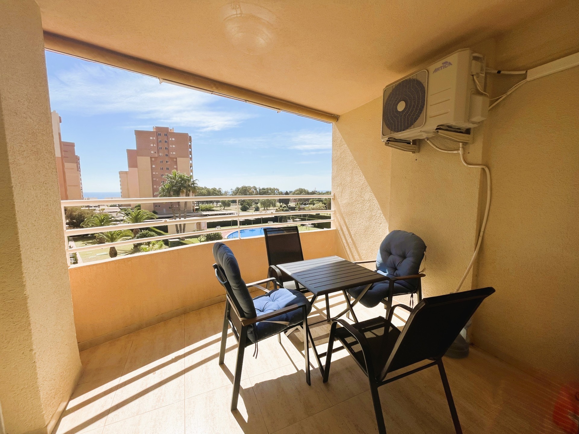 Estupendo piso en el centro de Campoamor, a tan solo 400 mt de la playa. Entrando en la vivienda encontramos un amplio salón comedor con acceso directo a la terraza con vistas al mar y con una cocina independiente. La casa tiene dos dormitorios muy luminosos con armarios empotrados y un aseo con bañera. La vivienda tiene plaza de aparcamiento, piscina comunitaria y está rodeada de zonas Cerca de todos los servicios restaurantes, supermercados, bares, pista de tenis, pádel y las mejores playas de la zona. Este apartamento no se puede reservar por menos de 11 noches. Es una estancia mid term conforme al Decreto Ley 9/2024 del gobierno de la Comunidad Valenciana..