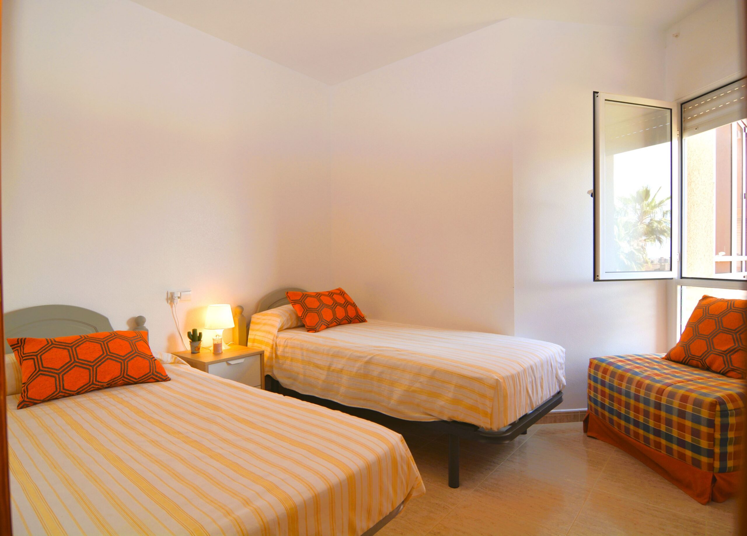 Estupendo apartamento de 2 dormitorios en el centro de Campoamor. La vivienda tiene una luminosa terraza con vistas al mar mediterráneo. Dispone de un amplio salón comedor, cocina independiente con zona de lavadero, dos dormitorios y un baño. La vivienda pertenece a una urbanización cerrada, tiene una plaza de aparcamiento privada y piscina comunitaria. Se encuentra cerca de todos los servicios, bares, restaurantes, supermercado y las mejores playas de la zona. Este apartamento no se puede reservar por menos de 11 noches. Es una estancia mid term conforme al Decreto Ley 9/2024 del gobierno de la Comunidad Valenciana..