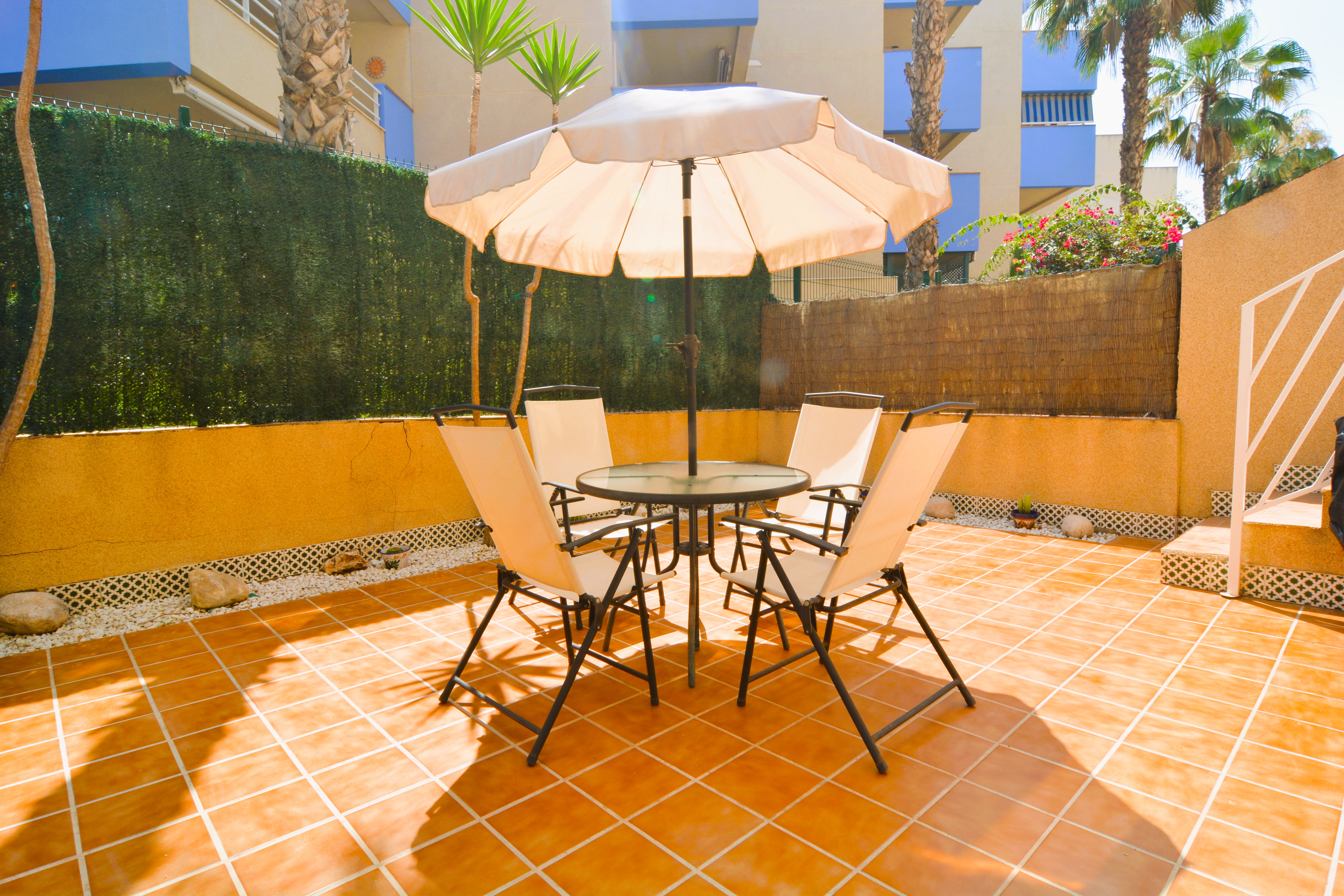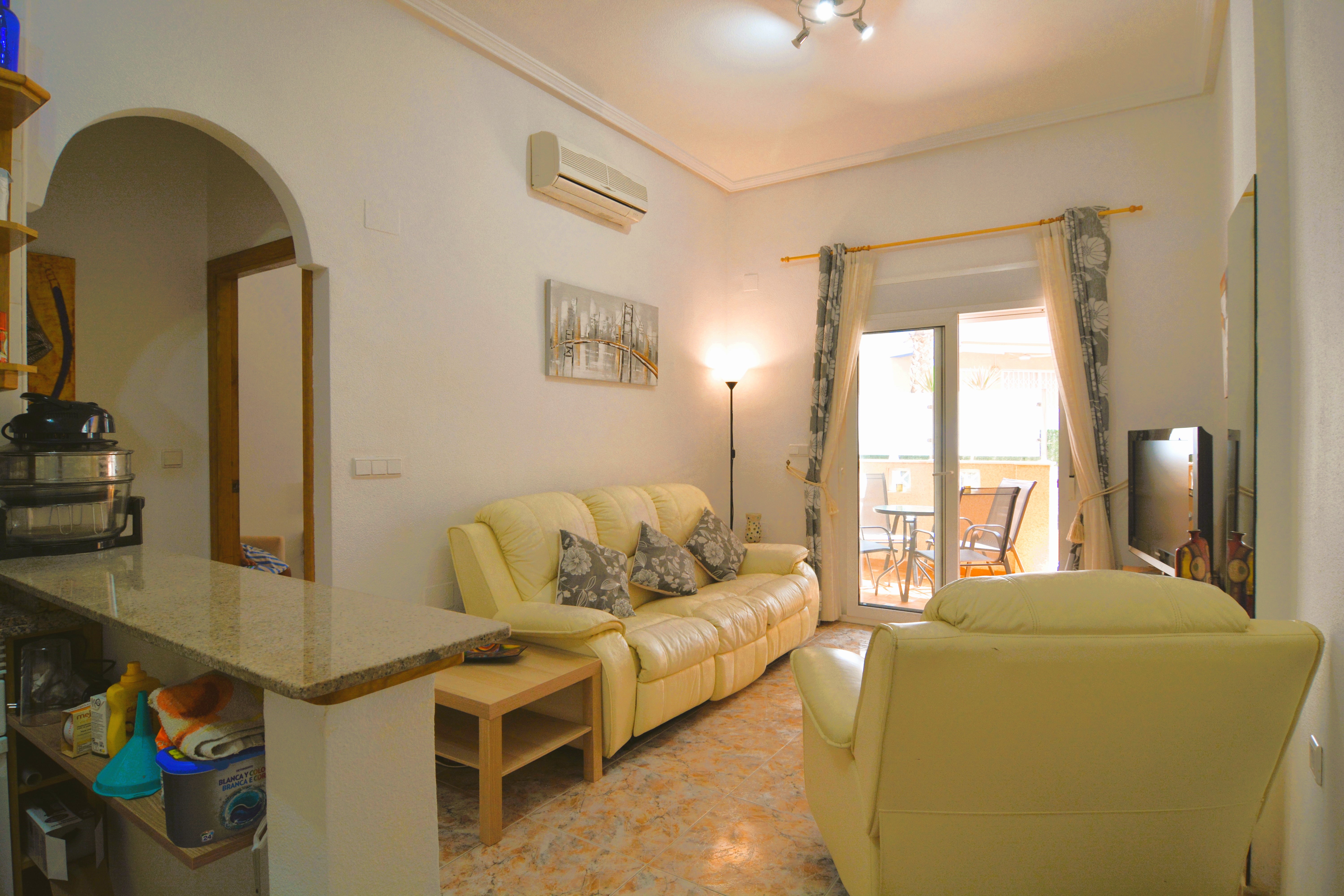Fantástica vivienda a solamente 500 metros de la cala de Aguamarina. La vivienda tiene un amplio patio interior, ideal para disfrutar de una comida en familia. El salón comedor es muy amplio y luminoso junto a una cocina americana. La vivienda tiene 2 dormitorios amplios con armarios empotrados y 2 baños. Situada en una de las mejores zonas de Aguamarina, dispone de plaza de aparcamiento y piscina comunitaria. Se encuentra cerca de todos los servicios, restaurantes, bares, supermercado, parque infantil, club de tenis y las mejores playas de la zona. Este apartamento no se puede reservar por menos de 11 noches. Es una estancia mid term conforme al Decreto Ley 9/2024 del gobierno de la Comunidad Valenciana..