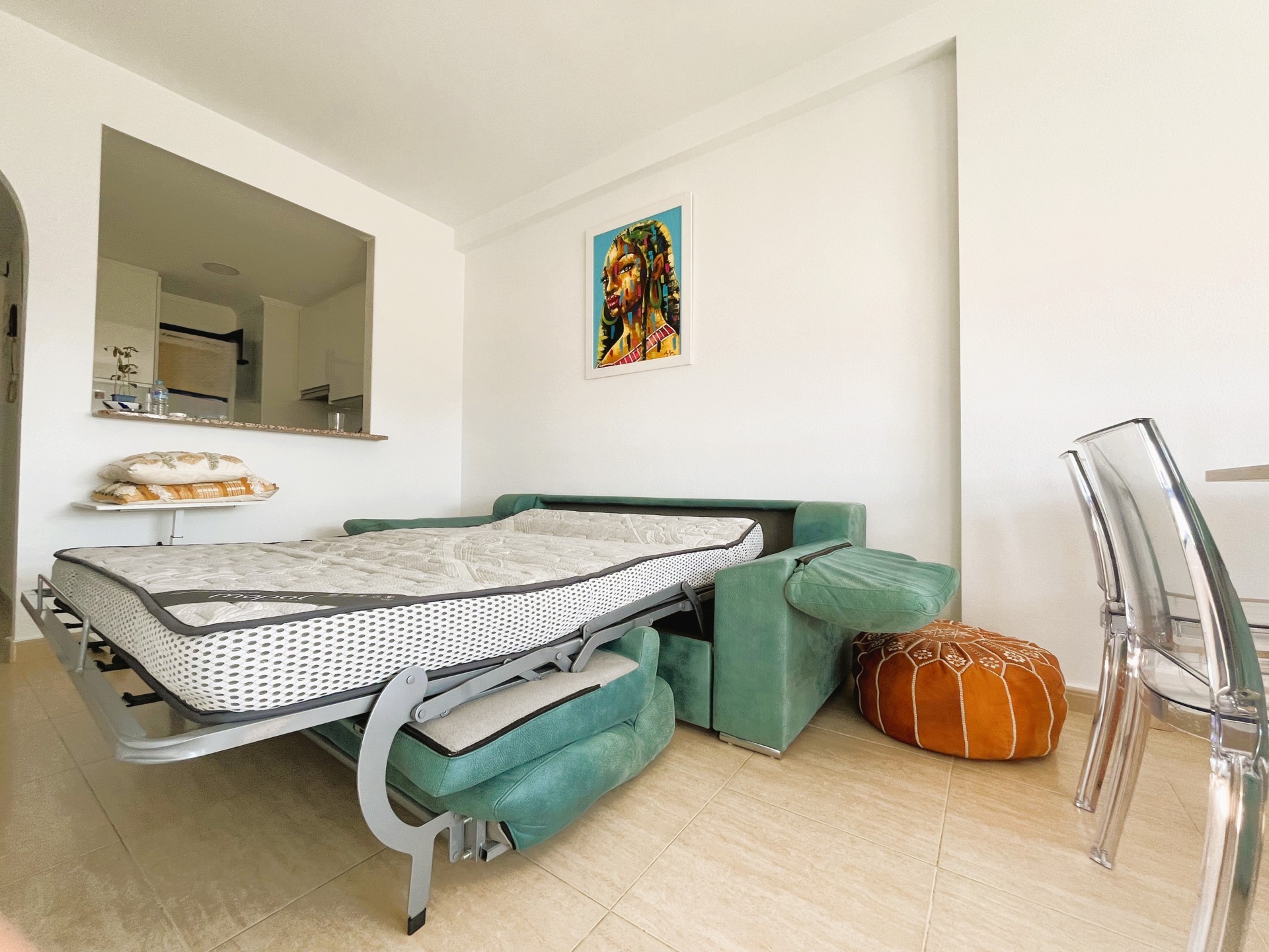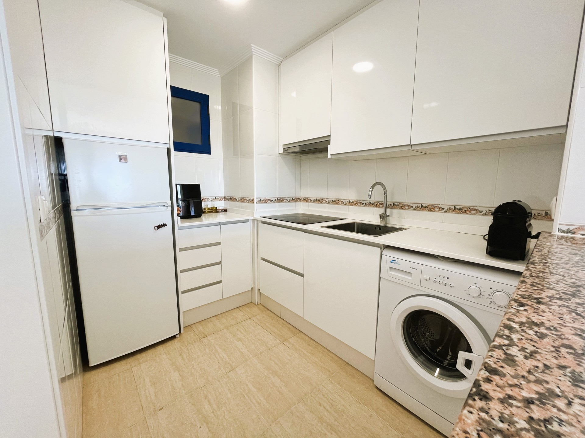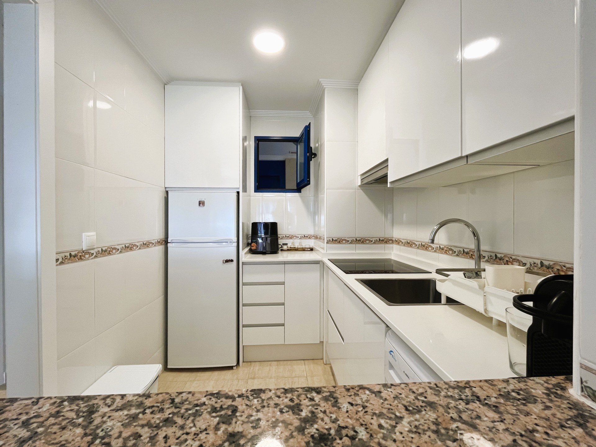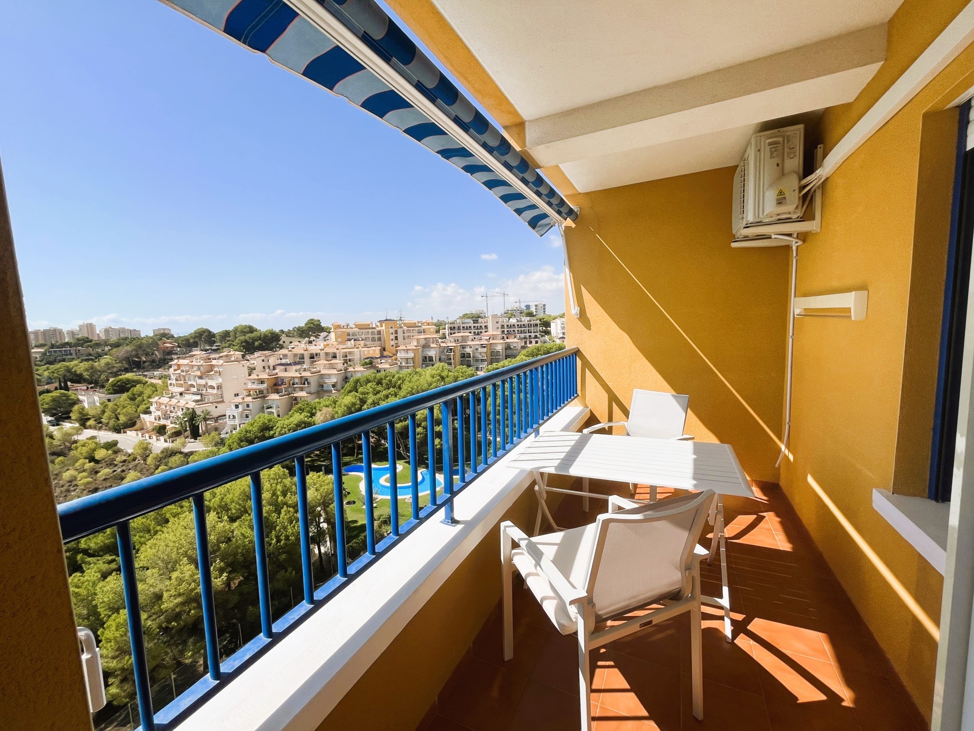 Estupendo apartamento de un dormitorio con fantásticas vistas al mar. La vivienda tiene una acogedora terraza, ideal para disfrutar de un buen desayuno. El salón comedor es muy luminoso y cuenta con un cómodo sofá cama y aire acondicionado. La cocina es independiente, de estilo moderno, y tiene una práctica ventana. El dormitorio principal dispone de un amplio armario empotrado y el baño cuenta con ducha. También dispone de plaza de aparcamiento. El residencial cuenta con una de las piscinas más bonitas de la zona y una pista de tenis. Se encuentra cerca de todos los servicios: bares, restaurantes, supermercado y las mejores playas de la zona. Este apartamento no se puede reservar por menos de 11 noches. Es una estancia mid term conforme al Decreto Ley 9/2024 del gobierno de la Comunidad Valenciana..