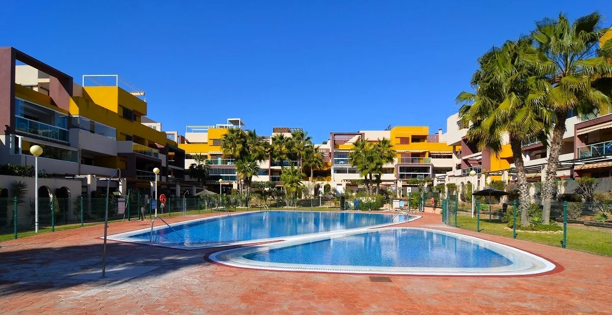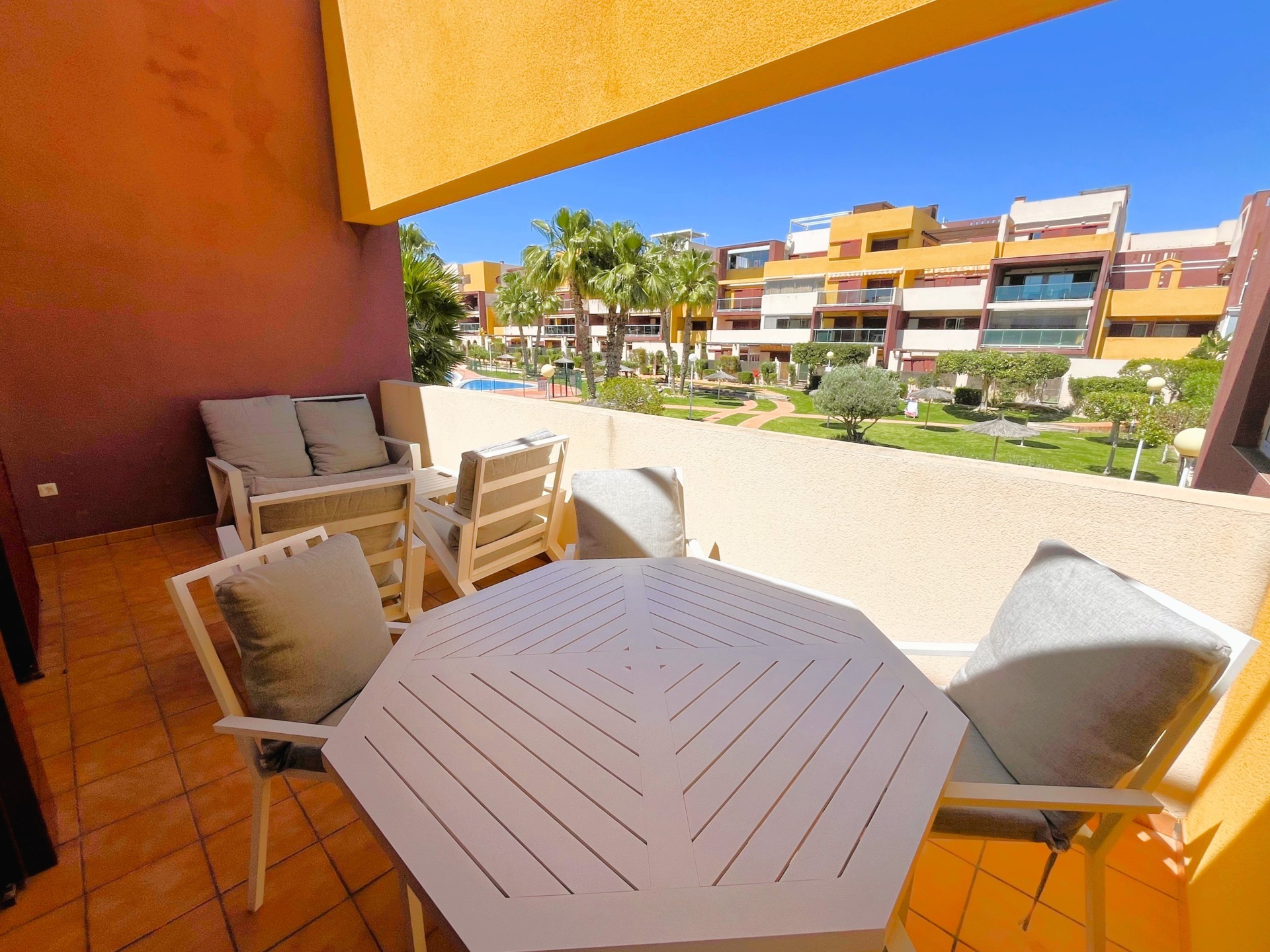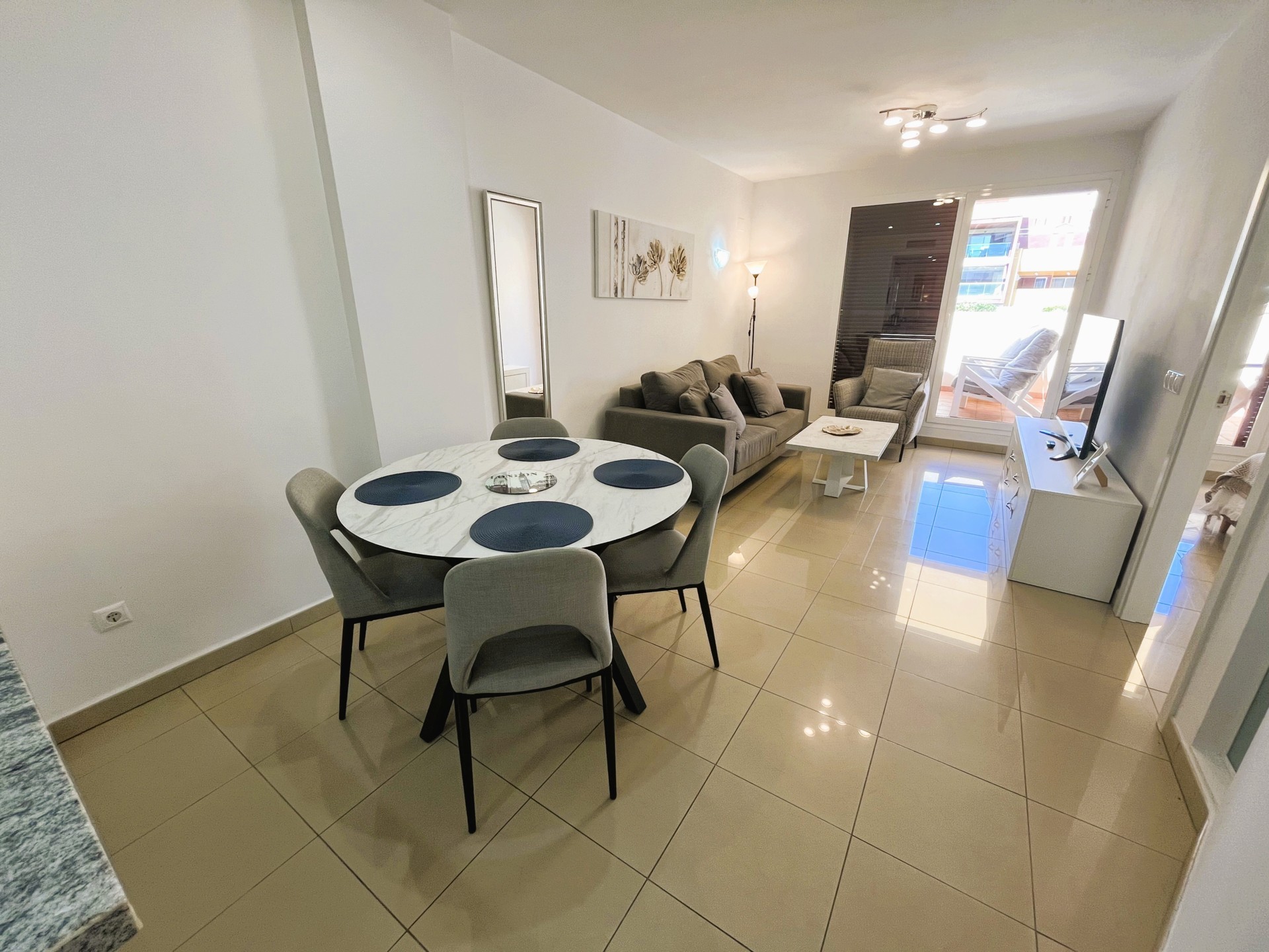 Fantástico apartamento disponible para alquilar en una de las zonas más bonita de Orihuela Costa. La vivienda se encuentra en una urbanización cerrada, con una estupenda piscina comunitaria rodeada de zonas verdes que invitan al relax. Esta encantadora propiedad combina un ambiente acogedor con un estilo moderno, perfecta para disfrutar al máximo de la vida en la costa. Dispone de un amplio y luminoso salón-comedor con acceso directo a una generosa terraza, ideal para relajarse al aire libre leyendo un buen libro. La cocina americana, moderna y completamente equipada, se integra perfectamente en el espacio. La vivienda cuenta con dos dormitorios con armarios empotrados, dos baños completos y una práctica zona de lavadero. Cuenta con plaza de aparcamiento propia y sistema de aire acondicionado por conductos. Está ubicada en una zona tranquila y bien comunicada, cerca de todos los servicios esenciales, como supermercados, restaurantes y centros comerciales, y a solo unos minutos de las mejores playas de la Costa. Este apartamento no se puede reservar por menos de 11 noches. Es una estancia “mid term” conforme al Decreto Ley 9/2024 del gobierno de la Comunidad Valenciana..