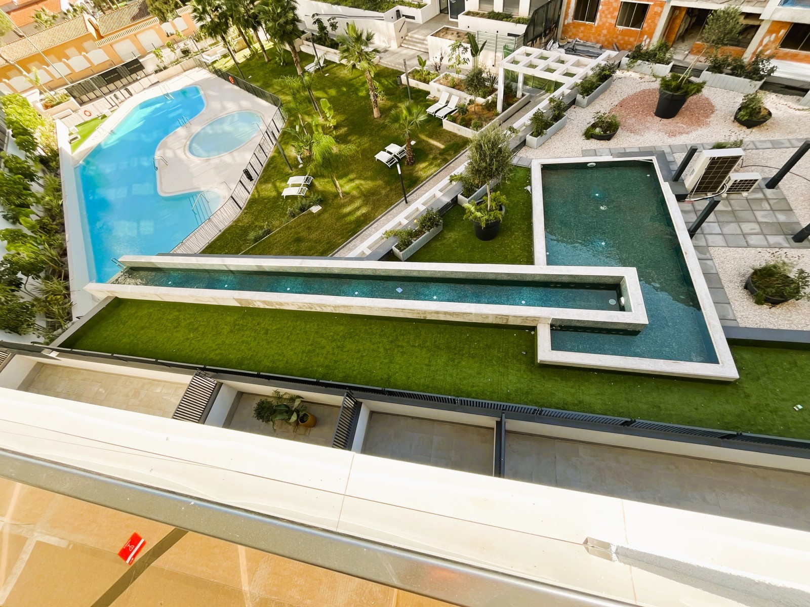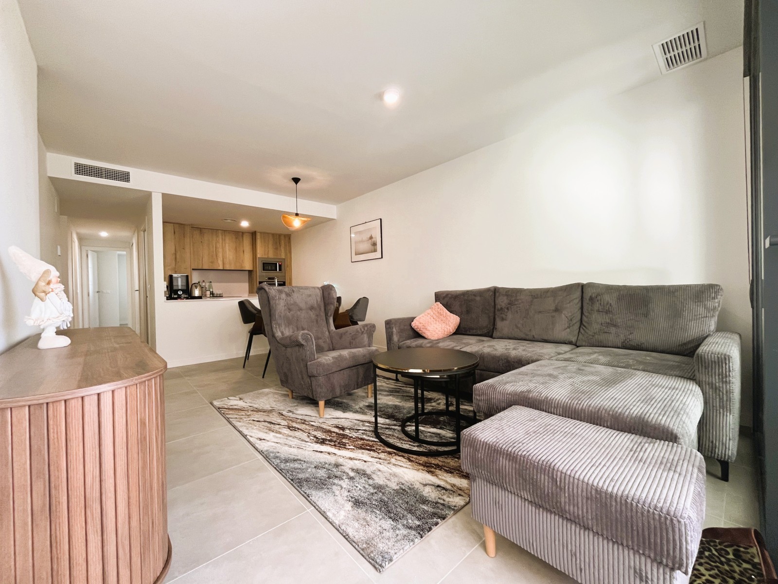 Fantástico apartamento ubicado en una urbanización que combina confort, lujo y naturaleza en Campoamor. El interior de este apartamento ha sido concebido para el máximo disfrute. Dispone de una luminosa terraza privada que funciona como una extensión del salón, ofreciendo vistas impresionantes. La cocina de diseño moderno se integra perfectamente con el salón comedor, creando un espacio abierto ideal para socializar. Completan el hogar dos amplias y tranquilas habitaciones con armarios empotrados y dos cuartos de baño completos (uno de ellos en suite), garantizando estilo, privacidad y comodidad. La urbanización cuenta con una amplia variedad de servicios, como una piscina exterior para adultos y otra de niños, rodeada de hermosas palmeras y un cuidado jardín con césped, creando un entorno perfecto para relajarte y disfrutar del aire libre. Para momentos de relajación y bienestar, la urbanización ofrece una piscina interior climatizada, ideal para un baño en cualquier época del año. También dispones de un gimnasio completamente equipado para mantenerte en forma. . (Parte del complejo se encuentra actualmente en construcción). Adicionalmente, el apartamento cuenta con plaza de garaje privada. No pierdas la oportunidad de vivir en este enclave único que combina la tranquilidad de un entorno natural con las comodidades más modernas. Está cerca de todos los servicios, restaurantes, el paseo marítimo, parques infantiles, y unas playas espectaculares en Campoamor. Este apartamento no se puede reservar por menos de 11 noches. Es una estancia “mid term” conforme al Decreto Ley 9/2024 del Gobierno de la Comunidad Valenciana..