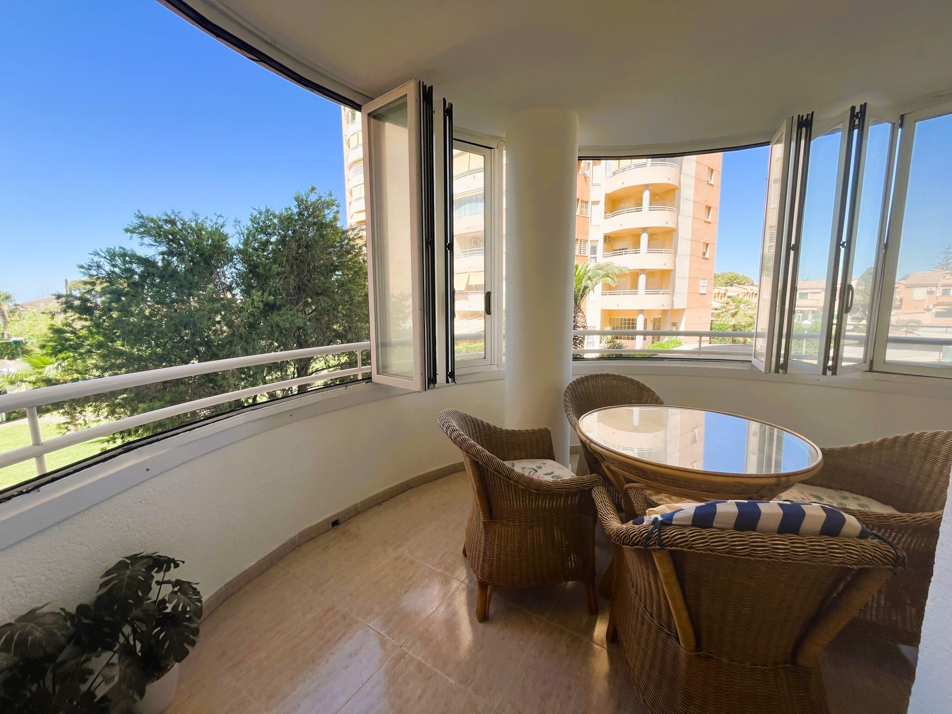 En Dehesa de Campoamor, en uno de los edificios más apreciados, se encuentra este piso de dos dormitorios. La vivienda cuenta con un baño completo, cocina independiente con zona de galería separada, salón-comedor y terraza acristalada. La comunidad ofrece una zona ajardinada, piscina y aparcamiento privado asignado a cada vivienda. Está cerca de todos los servicios, como restaurantes, supermercado, paseo marítimo, parques infantiles y las mejores playas de la zona. Este apartamento no se puede reservar por menos de 11 noches. Es una estancia mid term conforme al Decreto Ley 9/2024 del gobierno de la Comunidad Valenciana..