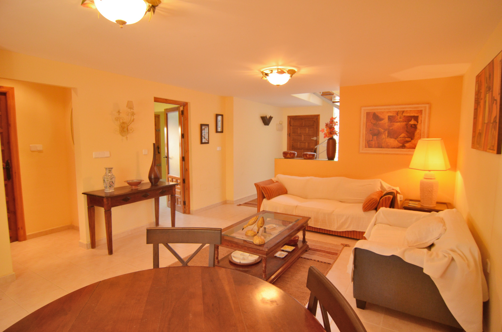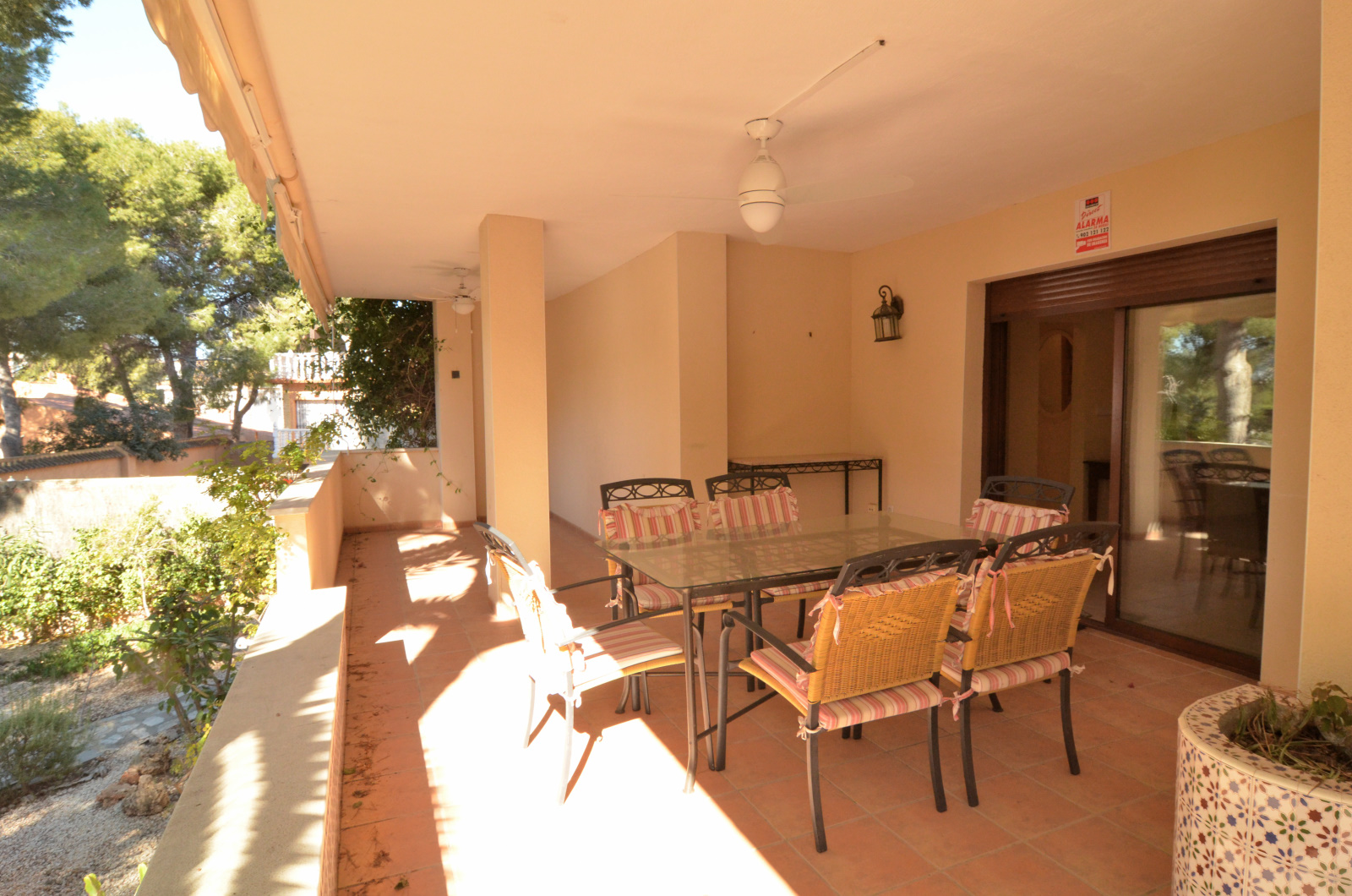 Increíble Villa pareada en el centro de Campoamor a solamente 100 m de las mejores playas. Esta vivienda tiene un jardín muy bonito que comparte con la otra mitad de la vivienda. Tiene un amplio porche cubierto donde podrás disfrutar de una comida en familia rodeado de la naturaleza. Tiene un total de 3 alturas, con dos salones en las dos primeras plantas, perfecto para dos familias incluso. Tiene una cocina amplia e independiente con suficiente espacio para una mesa de comer. Tiene 5 habitaciones y 3 baños completos. Los dormitorios principales tienen acceso a una terraza amplia, incluso la planta de arriba tiene una muy privada con vistas bonitas. Tiene todas las extras: aire acondicionado, vistas, terraza, porche, garaje propio. Cerca de todos los servicios, restaurantes, paseo marítimo, parques infantiles, y unas playas espectaculares en Campoamor. Este chalet no se puede reservar por menos de 11 noches. Es una estancia “mid term” conforme al Decreto Ley 9/2024 del gobierno de la Comunidad Valenciana..