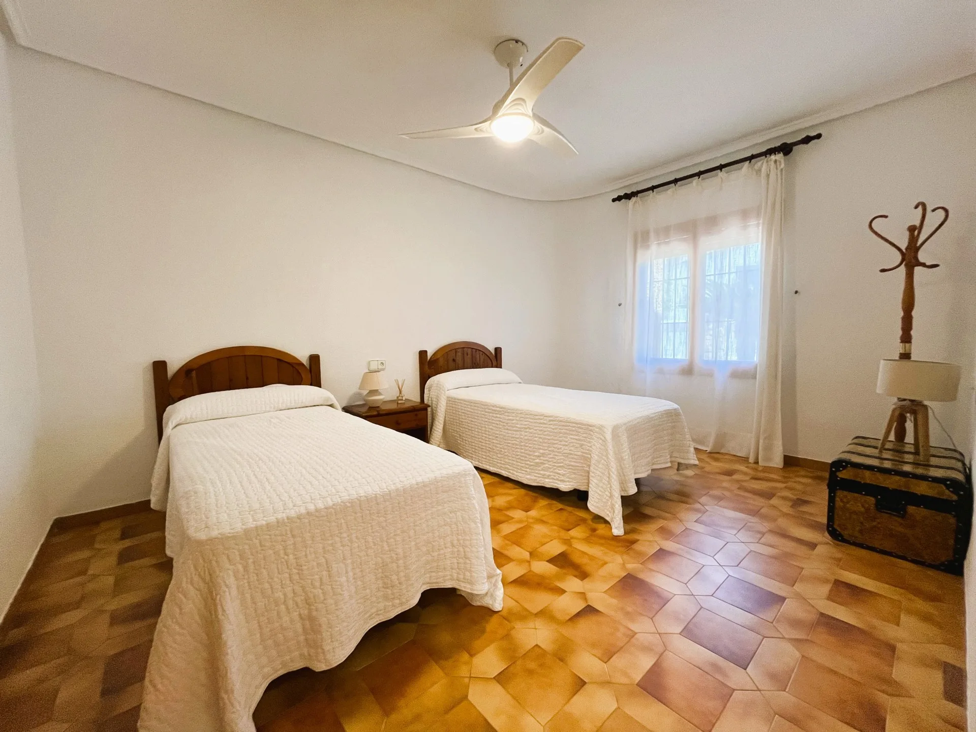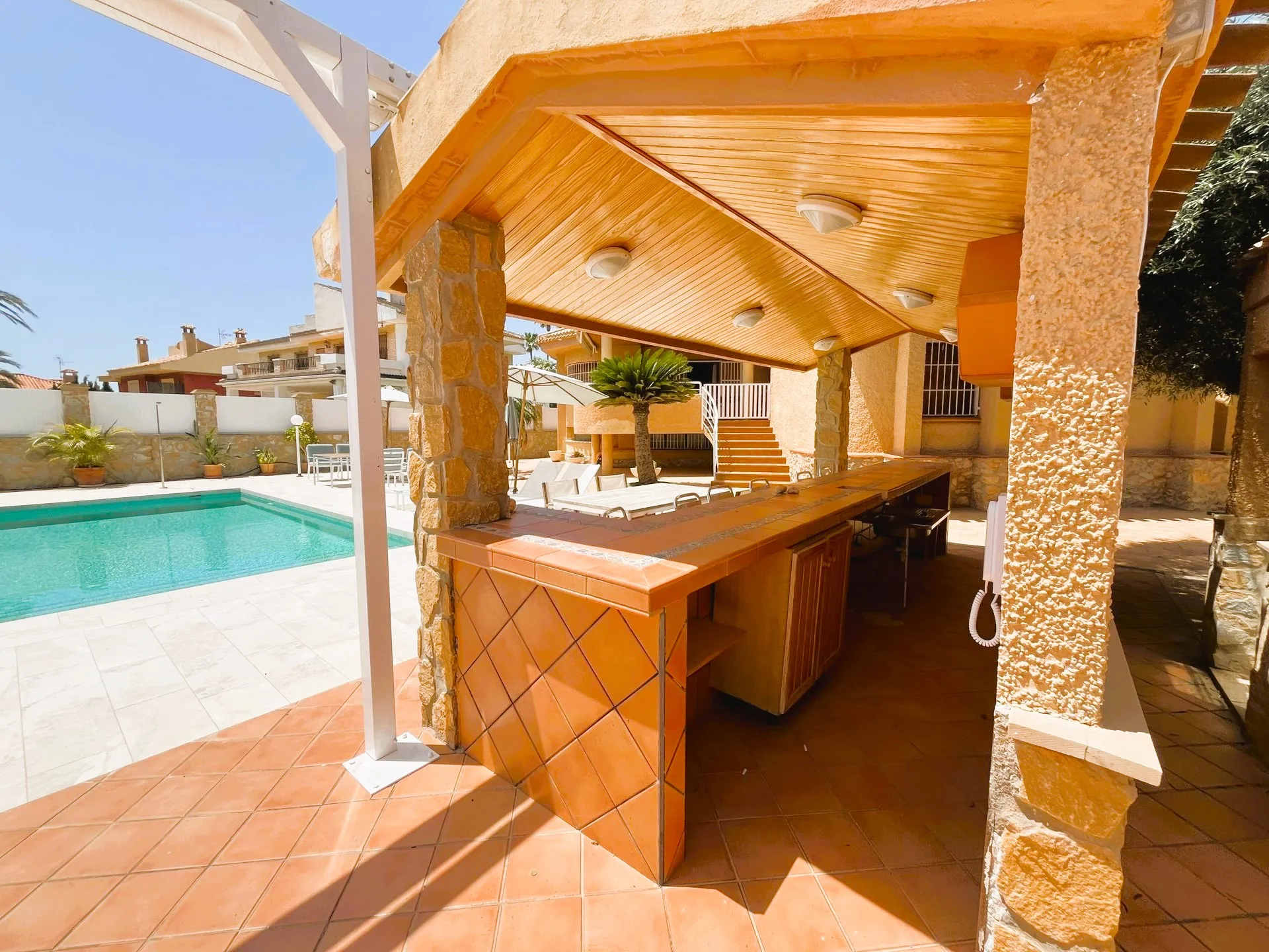 Magnifico chalet independiente en Dehesa de Campoamor a 150 m de la playa. Construido en dos plantas, la vivienda se encuentra en una parcela de 750 m2. Dispone de un amplio jardín con una fantástica piscina privada con zona de bar. Salón con chimenea con salida a un amplio porche con vistas al mar y a la piscina y la zona de comedor rodeada de ventanas que le aporta luz natural. La cocina está totalmente equipada y es independiente, tiene 4 amplios dormitorios todos con aire acondicionado y 4 cuartos de baño, el dormitorio principal con salida a una terraza, vestidor y baño en suite. La privacidad, comodidades y cercanía a la playa hacen de esta vivienda un destino ideal para disfrutar tus vacaciones o una larga estancia. Este chalet no se puede reservar por menos de 11 noches. Es una estancia “mid term” conforme al Decreto Ley 9/2024 del gobierno de la Comunidad Valenciana..