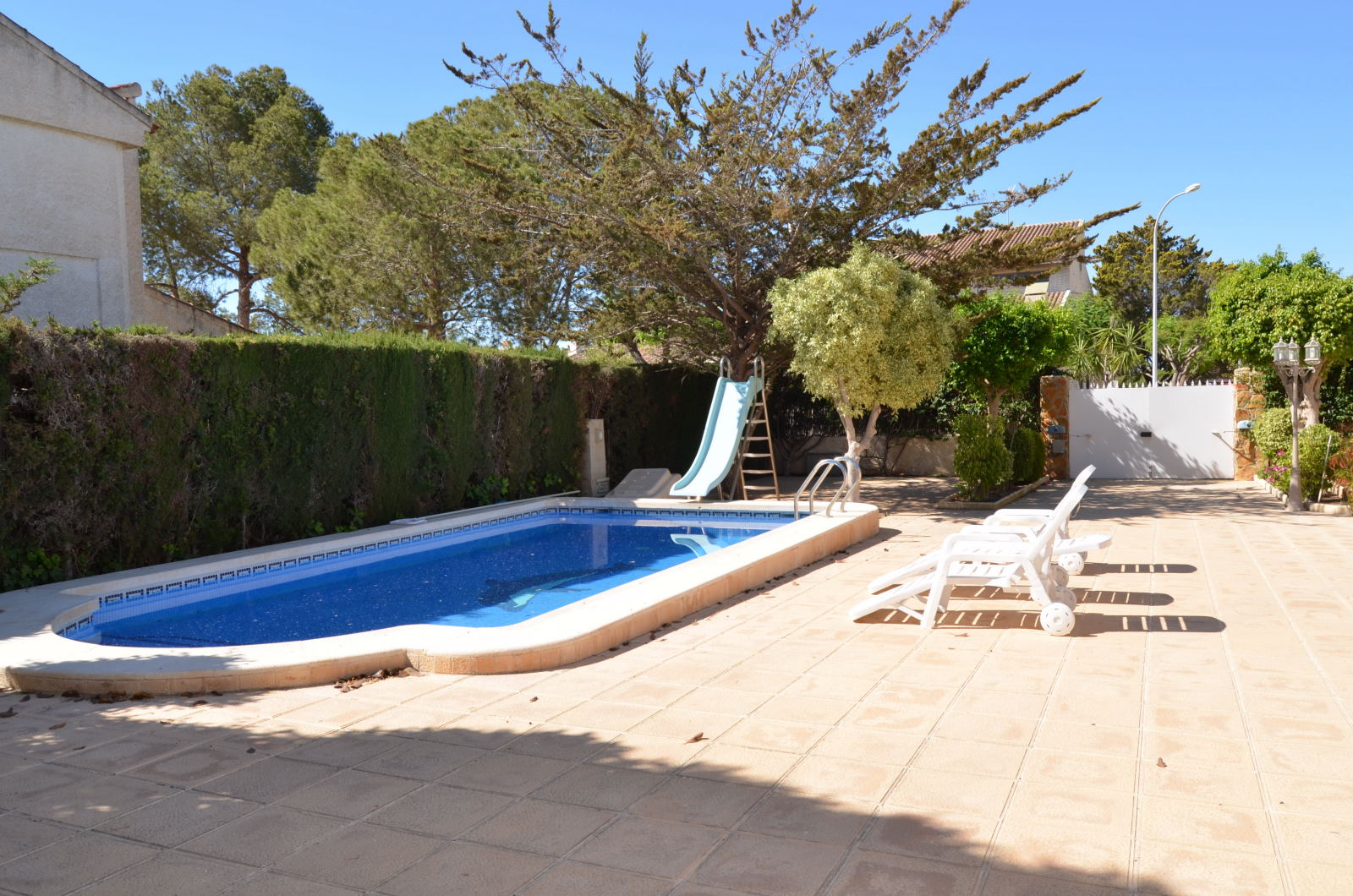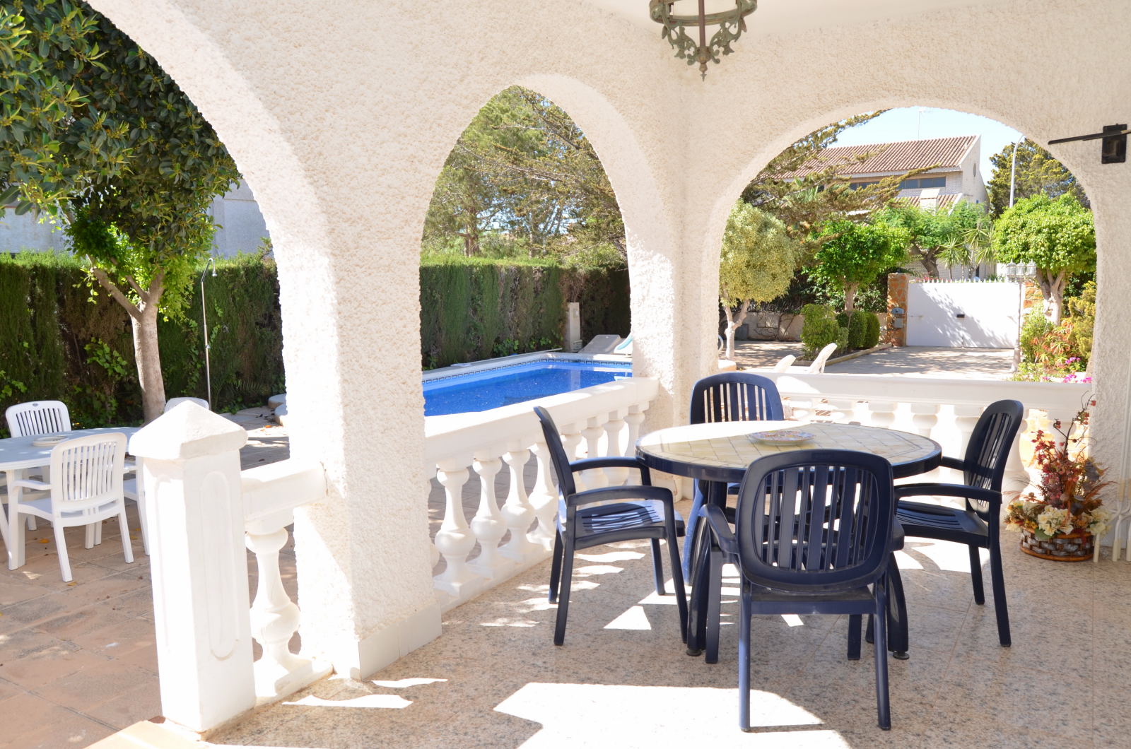 Magnífico chalet independiente en Dehesa de Campoamor a tan solo 300 m de la playa. La propiedad de dos alturas se encuentra en una parcela de 800 m2, con una amplia terraza con porche cubierto, dispone de un amplio espacio exterior con piscina privada. La vivienda tiene un salón comedor muy luminoso con una agradable chimenea, ideal para una comida en familia. La casa tiene un total de 6 dormitorios y 4 baños. Se encuentra cerca de todos los servicios, restaurantes, supermercado, bares y las mejores playas y calas de la zona. Y tiene acceso a una zona comunitaria con piscina. Este chalet no se puede reservar por menos de 11 noches. Es una estancia “mid term” conforme al Decreto Ley 9/2024 del gobierno de la Comunidad Valenciana..