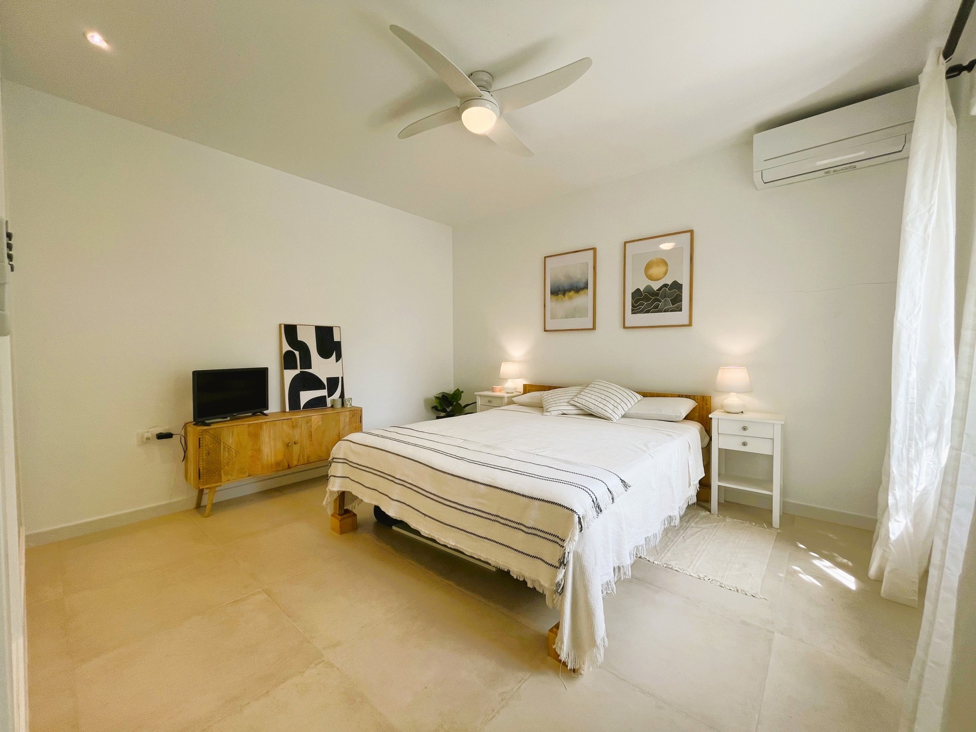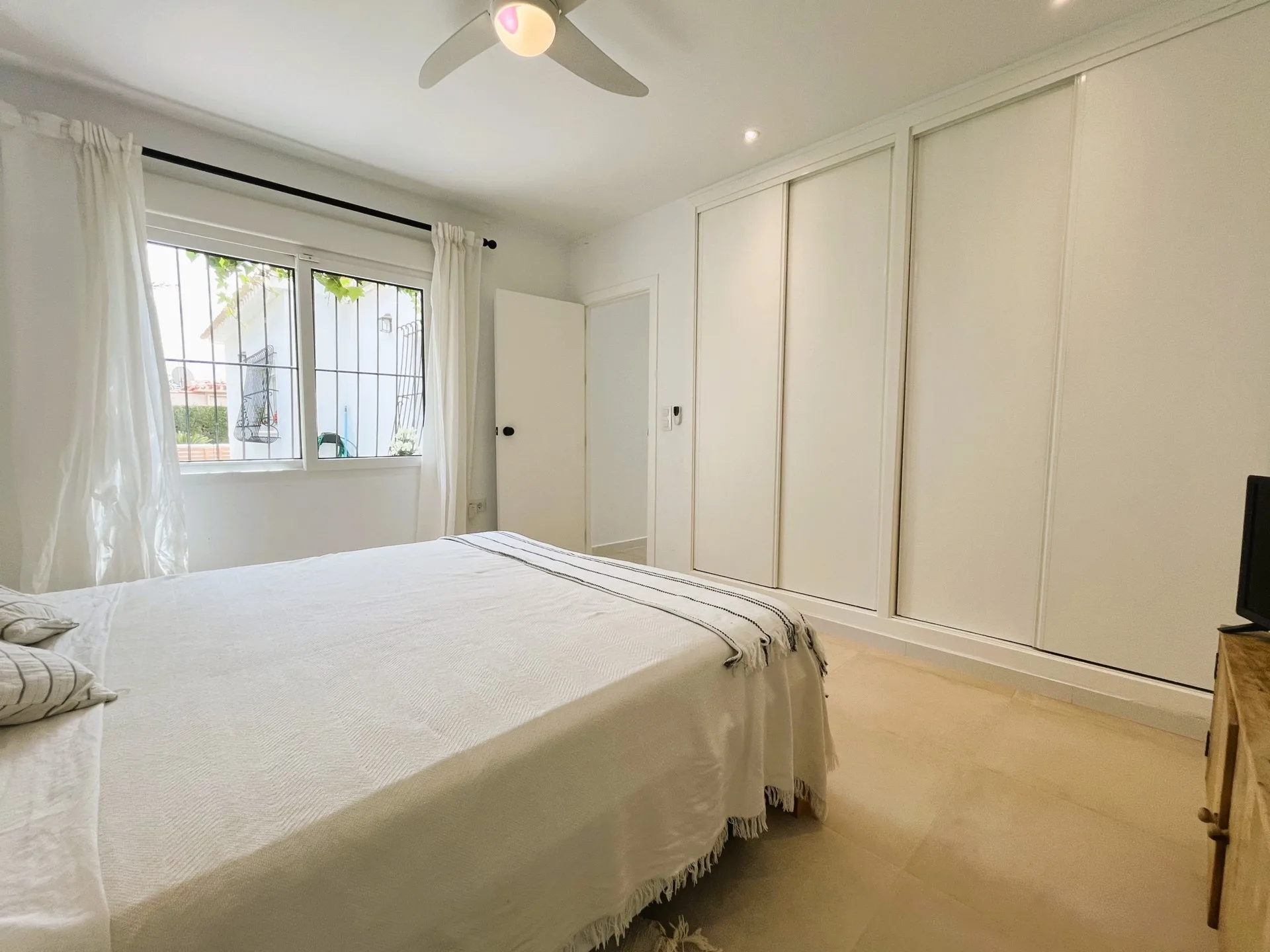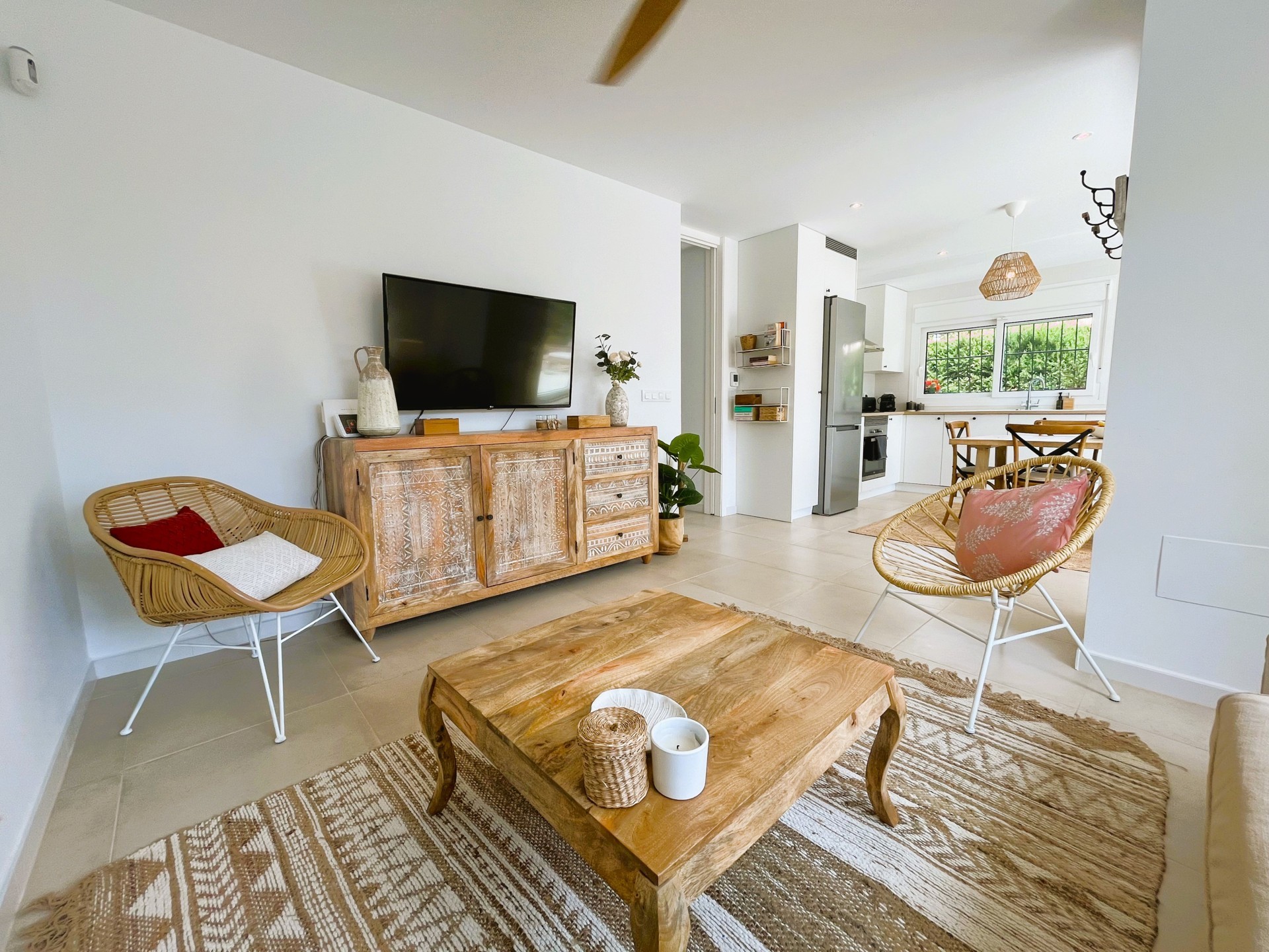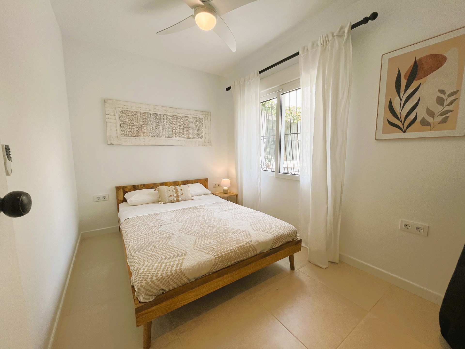 Fantástico mini chalet en Campoamor, completamente reformado y perfecto para disfrutar de una maravillosa estancia. La vivienda dispone de un luminoso salón comedor con aire y ventilador de techo. La cocina es muy amplia y tiene acceso directo a la terraza, ideal para disfrutar de una comida en familia al aire libre. Dispone de cuatro acogedoras habitaciones, todas con ventilador de techo y armarios empotrado y cuenta con dos baños completos. La propiedad tiene acceso a una zona comunitaria con piscina y áreas verdes. Ubicada cerca de todos los servicios, como bares, restaurantes, supermercados y las mejores playas de la zona. Este mini no se puede reservar por menos de 11 noches. Es una estancia “mid term” conforme al Decreto Ley 9/2024 del gobierno de la Comunidad Valenciana..