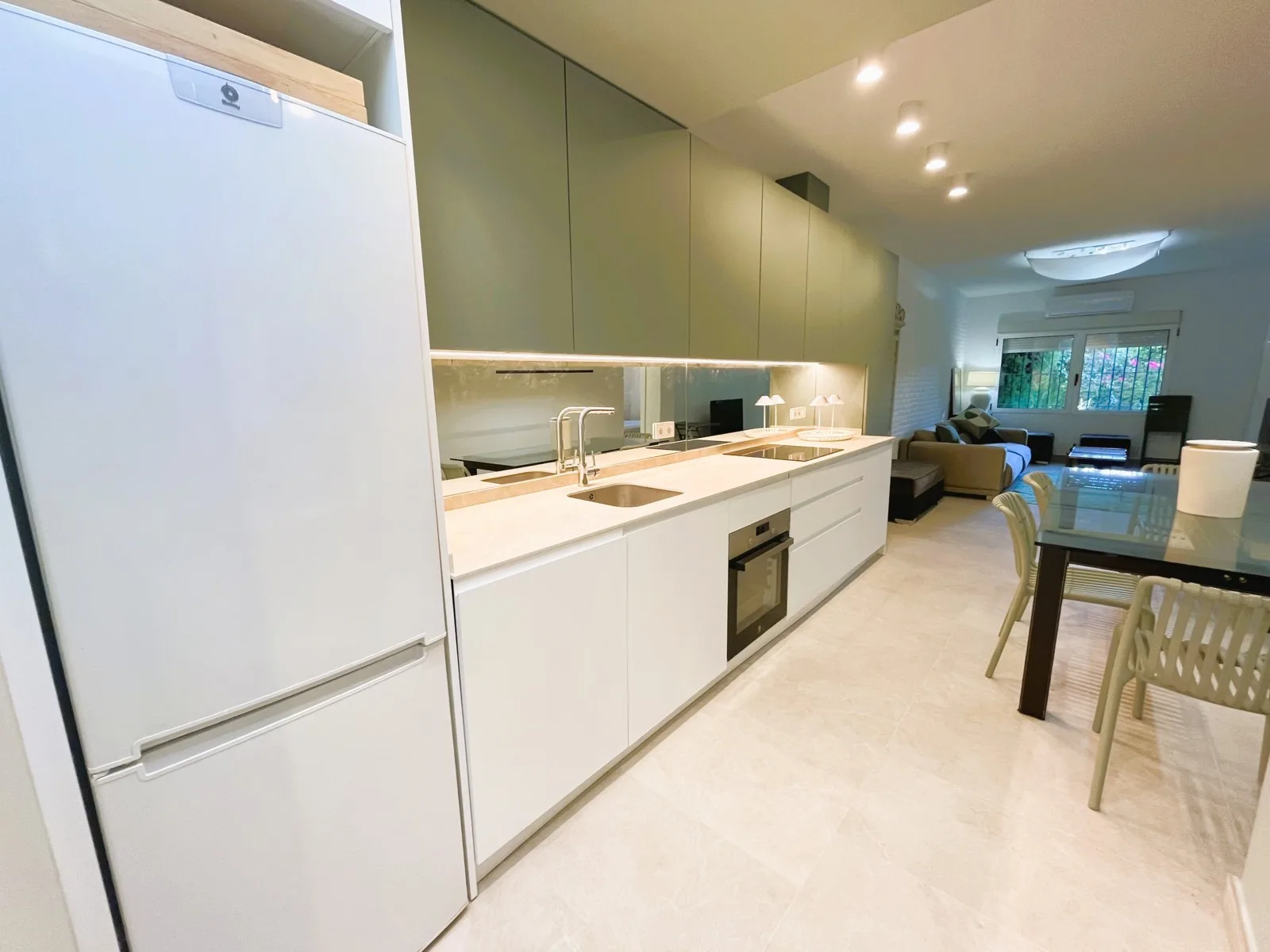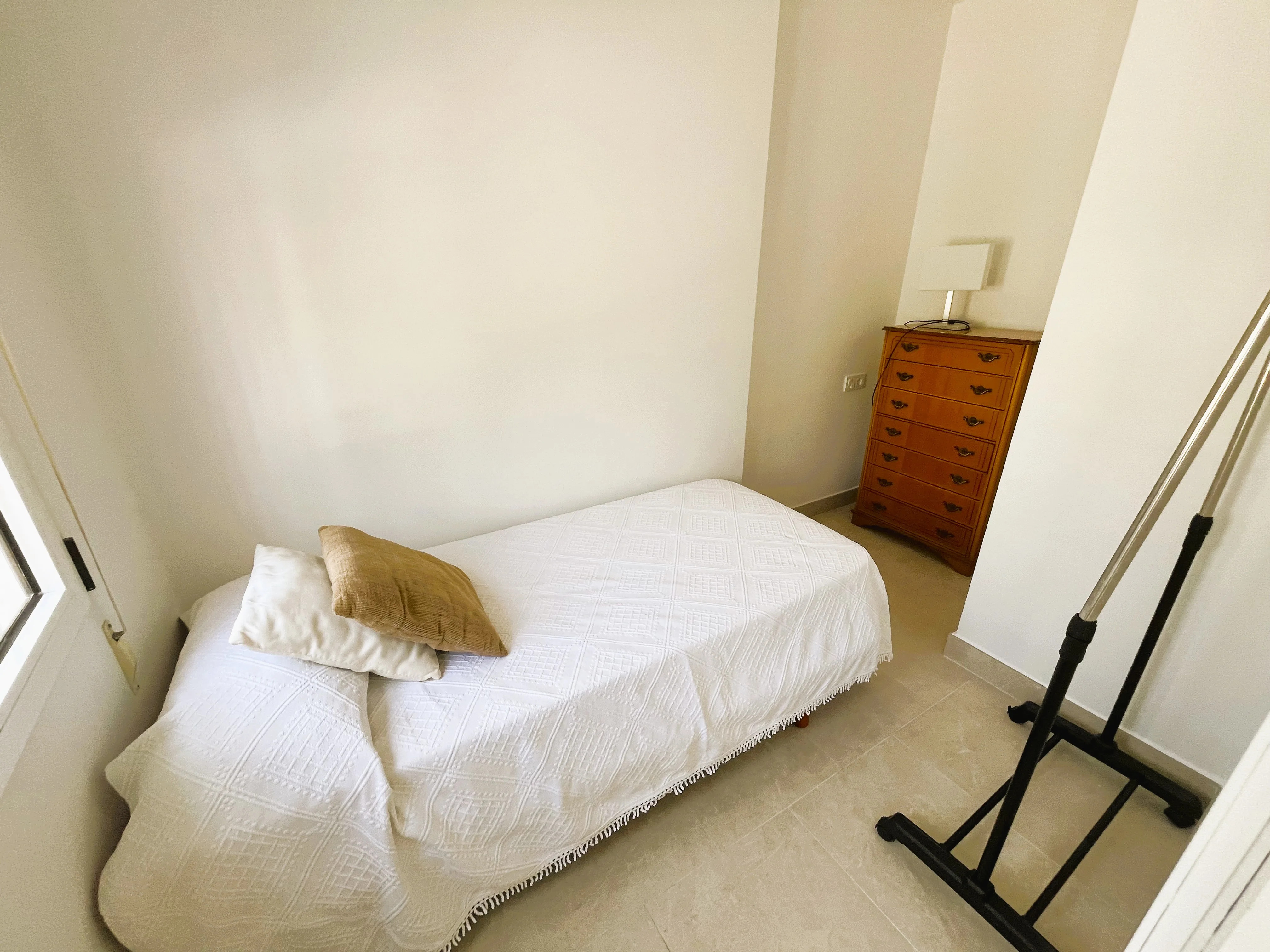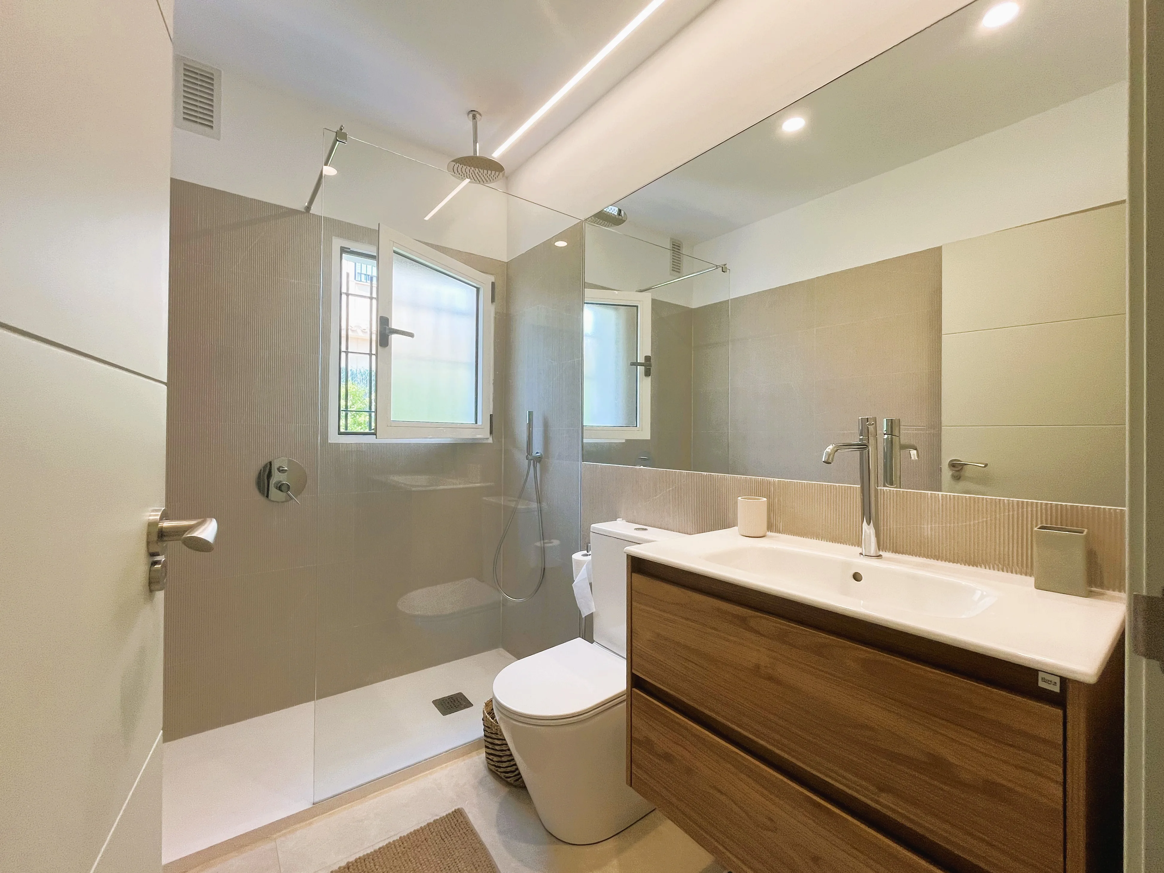 Increíble mini adosado en el corazón de Campoamor – totalmente reformado Disfruta de una estancia única en este acogedor y moderno adosado, recientemente renovado y situado en una de las mejores zonas de Campoamor. La vivienda cuenta con un amplio jardín privado, perfecto para relajarse al aire libre o compartir momentos en familia. Al entrar, encontrarás un luminoso salón-comedor de estilo moderno, integrado con una fantástica cocina americana equipada con electrodomésticos a estrenar y gran capacidad de almacenamiento. Dispone de 3 dormitorios dobles, todos con amplias ventanas, armarios empotrados y aire acondicionado, además de un cuarto dormitorio con cama individual. En total, la casa ofrece 2 baños completos con ducha, prácticos y confortables. Entre sus comodidades destacan una zona de aparcamiento privado y una galería con enchufe para la carga de coches eléctricos. Además, la propiedad ofrece acceso a una zona comunitaria con piscina y áreas verdes. Su ubicación es inmejorable: a un paso de bares, restaurantes, supermercados y las mejores playas de la zona. Este alojamiento no se puede reservar por menos de 11 noches. Se trata de una estancia de media duración conforme al Decreto Ley 9/2024 de la Comunidad Valenciana..