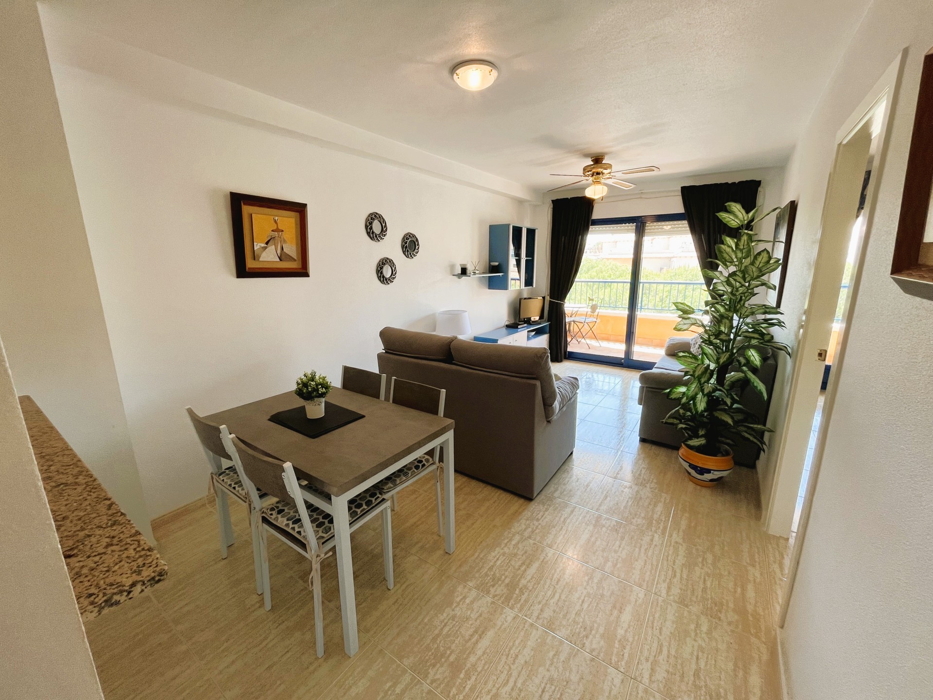 Fantástico apartamento en los Altos de Campoamor, ideal para disfrutar de unas vacaciones inolvidables en la costa. La vivienda cuenta con una amplia y soleada terraza con vistas al mar, perfecta para desayunos al aire libre o cenas al atardecer. El salón-comedor, luminoso y acogedor, se integra con una cómoda cocina americana totalmente equipada. Dispone de dos dormitorios con armarios empotrados, ofreciendo todo el confort que necesitas para descansar y desconectar. Además, tendrás acceso a una preciosa piscina comunitaria, el lugar perfecto para darte un baño durante los días de verano. Ubicado cerca de todos los servicios: restaurantes, bares, supermercados y a pocos minutos de las mejores playas de Orihuela Costa. Este apartamento no se puede reservar por menos de 11 noches. Es una estancia mid term conforme al Decreto Ley 9/2024 del gobierno de la Comunidad Valenciana..