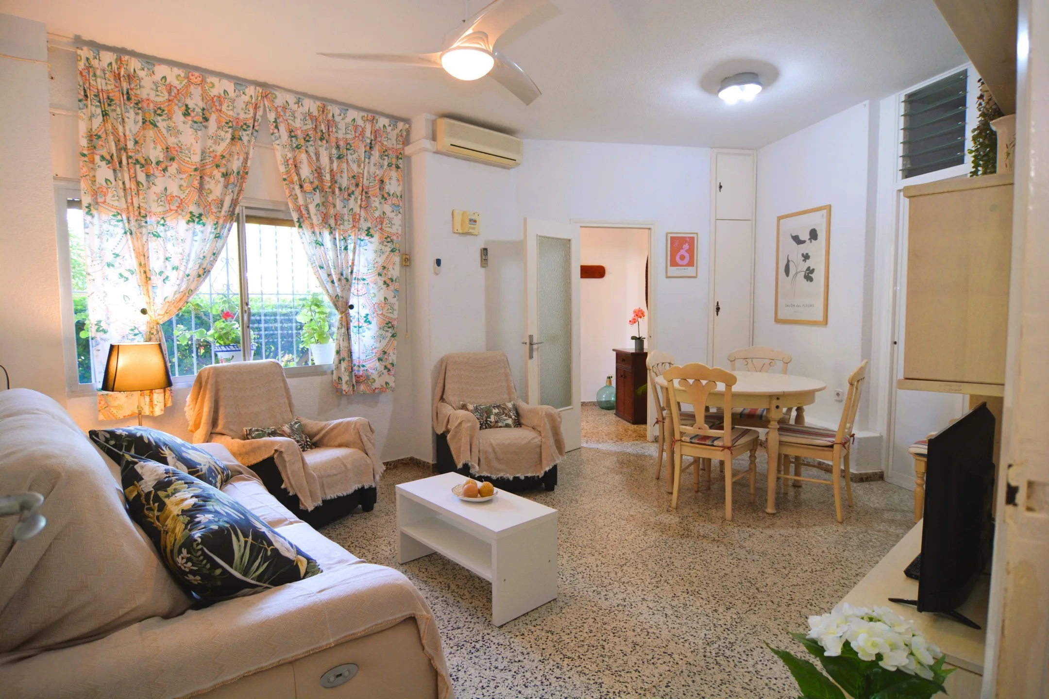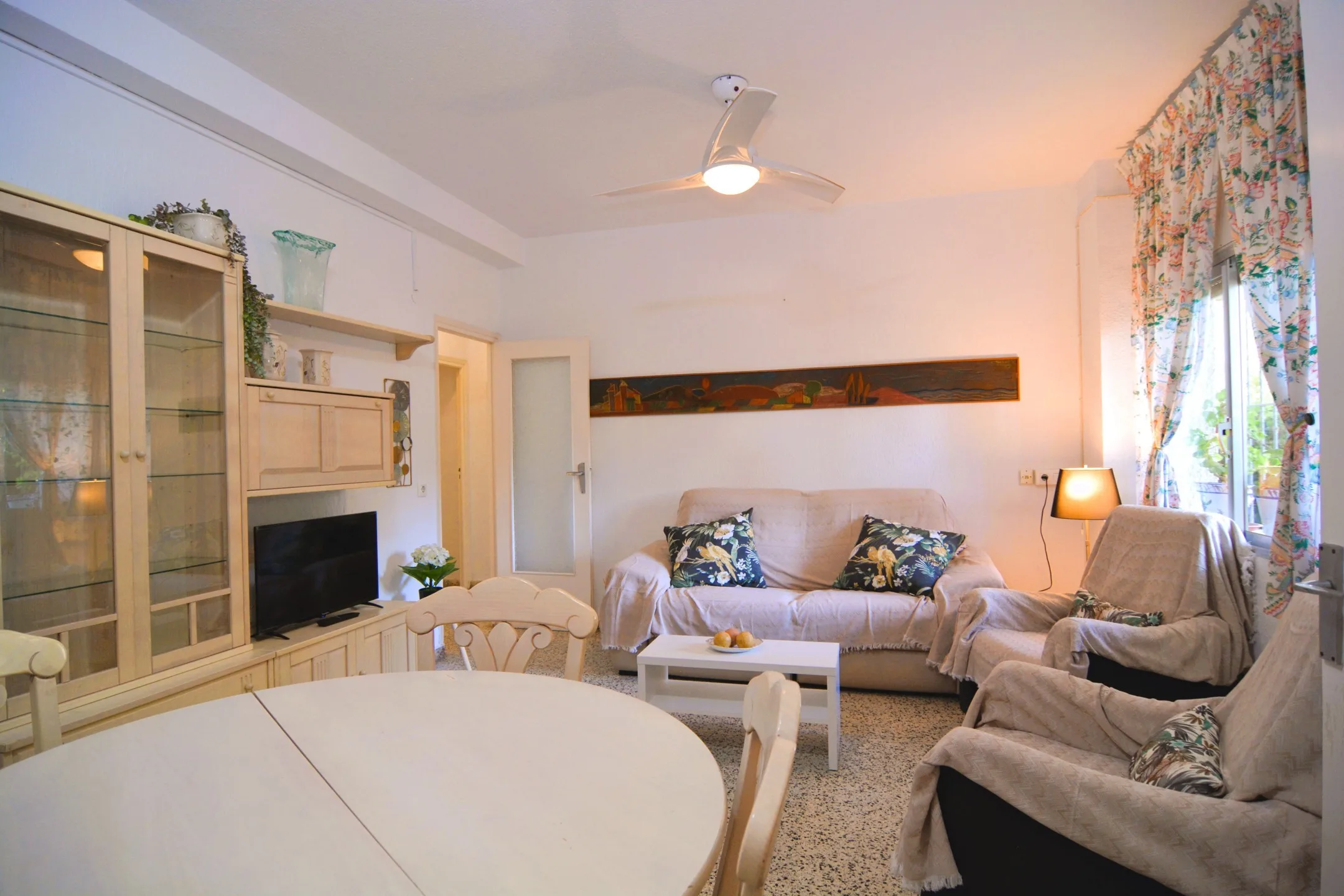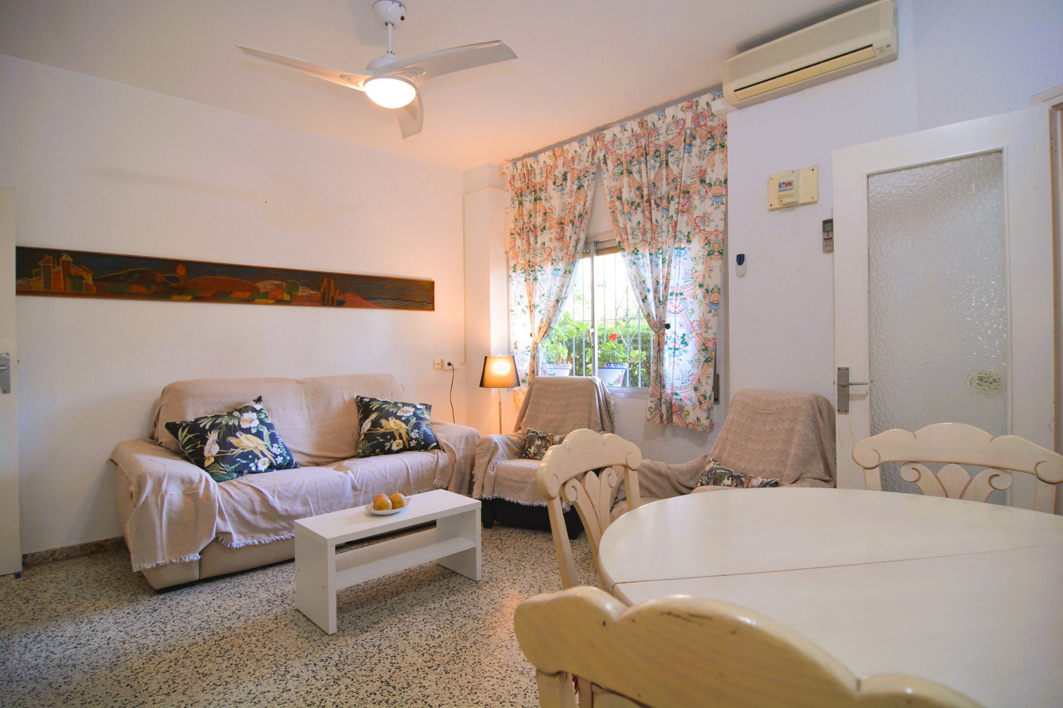 Piso en planta baja en el centro de Campoamor a tan solo 210 metros de la playa. La vivienda se encuentra en una zona ideal, tiene un amplio salón comedor muy luminoso y con aire acondicionado. En total tiene de 3 dormitorios y un baño, la cocina es independiente con su zona de lavadero y costa de una terraza muy acogedora, ideal para una comida en familia. Dispone de zona de aparcamiento y servicio de consejería. Cerca de todos los servicios restaurantes, supermercados, bares, pista de tenis, pádel y las mejores playas de la zona. Este apartamento no se puede reservar por menos de 11 noches. Es una estancia mid term conforme al Decreto Ley 9/2024 del gobierno de la Comunidad Valenciana..