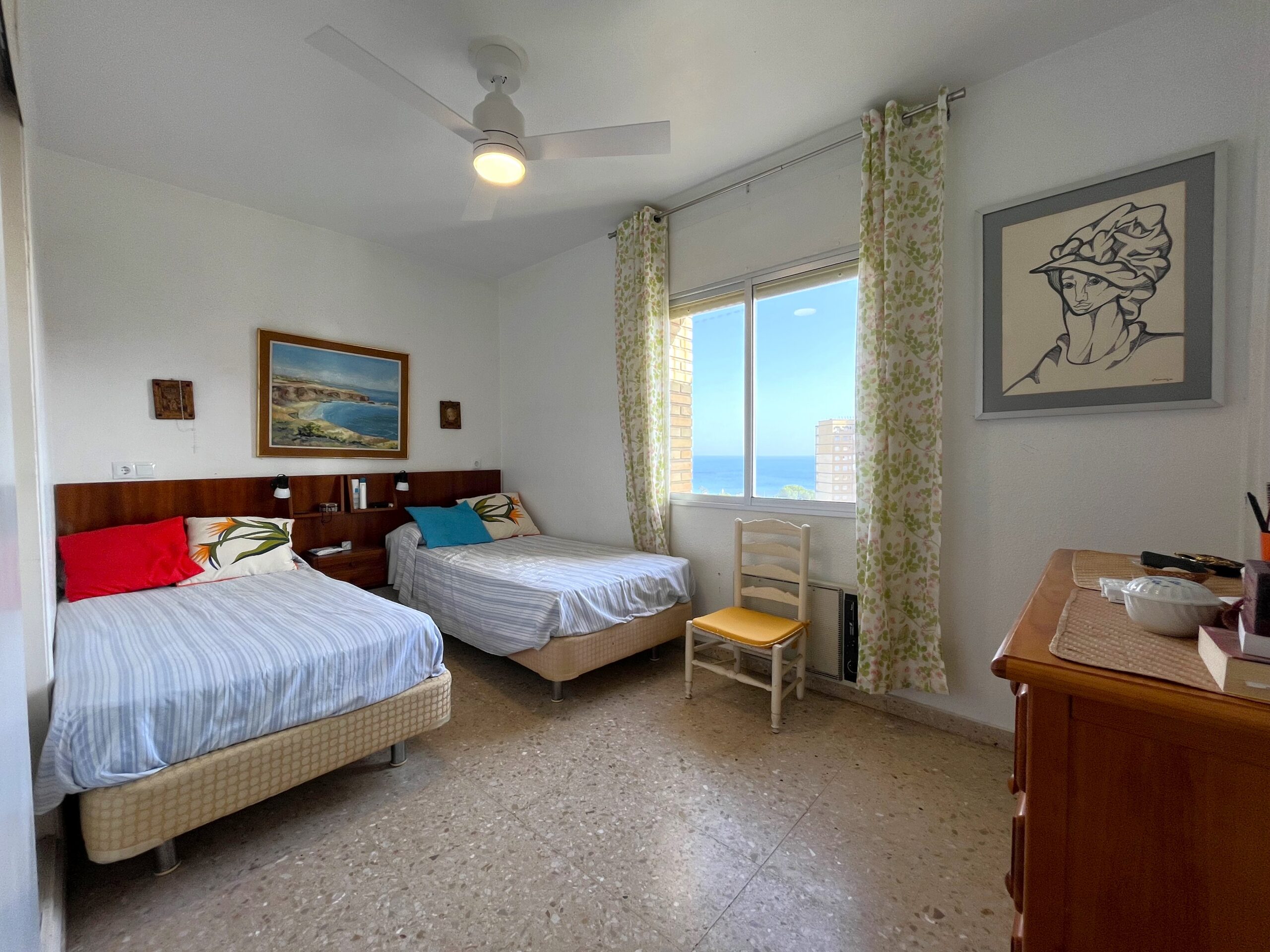 Espectacular piso en el corazón de Campoamor con impresionantes vistas al mar. Este luminoso apartamento ofrece todo lo necesario para disfrutar de unas vacaciones inmejorables a tan solo 290 metros de la playa. Cuenta con un salón-comedor que se abre a una amplia terraza, perfecta para relajarse con un café mientras sientes la suave brisa marina. La cocina, independiente y con ventanas que aportan gran luminosidad, está completamente equipada y dispone de una práctica galería. La vivienda dispone de 3 dormitorios equipados con ventiladores de techo y armarios empotrados. Además, cuenta con 2 baños completos. El edificio ofrece comodidades adicionales, como un parking comunitario y servicio de portería. Ubicado en una zona privilegiada, este piso te permite disfrutar de una variada oferta de servicios: restaurantes, cines, bares, paseos marítimos, amplias zonas verdes, parques infantiles y, por supuesto, las espectaculares playas de Campoamor. Este apartamento no se puede reservar por menos de 11 noches. Es una estancia “mid term” conforme al Decreto Ley 9/2024 del gobierno de la Comunidad Valenciana..
