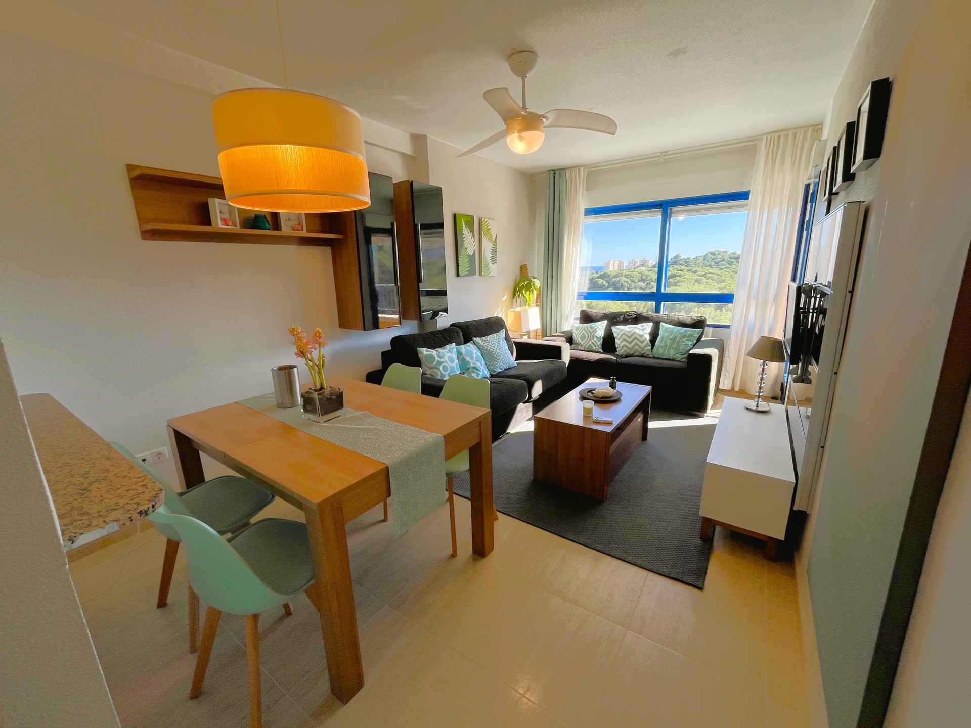 Espectaular apartamento en Dehesa de Campoamor en el residencial de Los Altos, con vistas bonitas al mar junto a la pinada de Campoamor a solamente 900 m de la playa. La vivienda tiene una terraza donde podrás relajarte junto a una copa de vino disfr utando de las vistas. Tiene un salon agradable y moderna, con una cocina americana. La vivienda dispone de un total de 2 habitaciones y 1 baño. Se encuentra en una urbanizacion con piscina communitaria, pistas de tennis, parques infantiles y zonas aj ardinadas. Cerca de todos los servicios, restaurantes, cine, bares, farmacia y las playas mas bonitas de la zona..