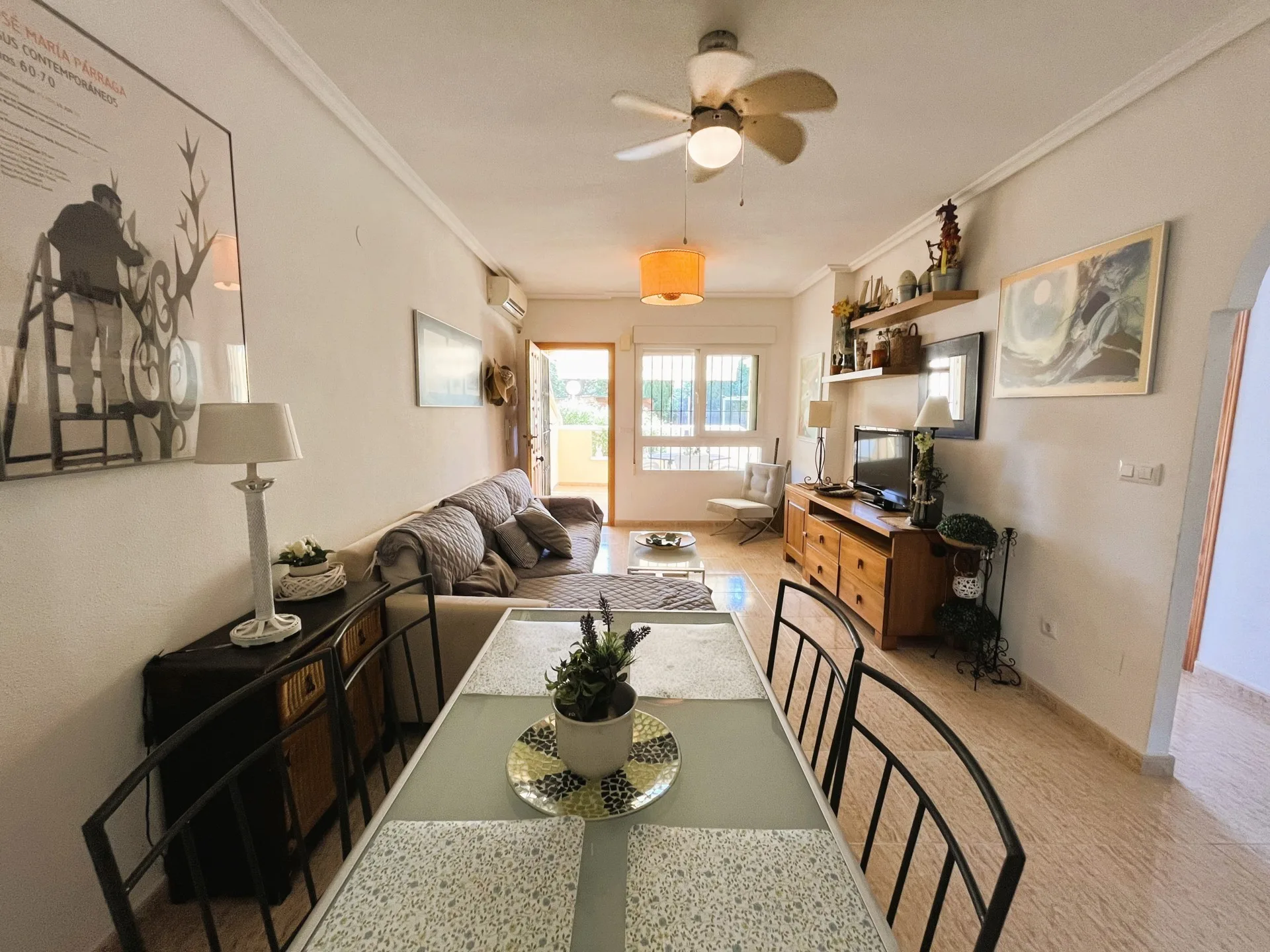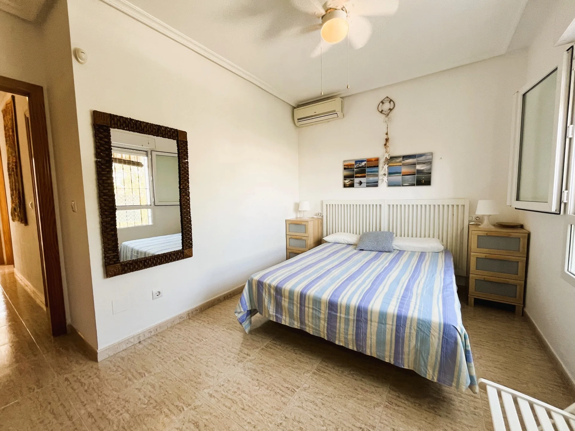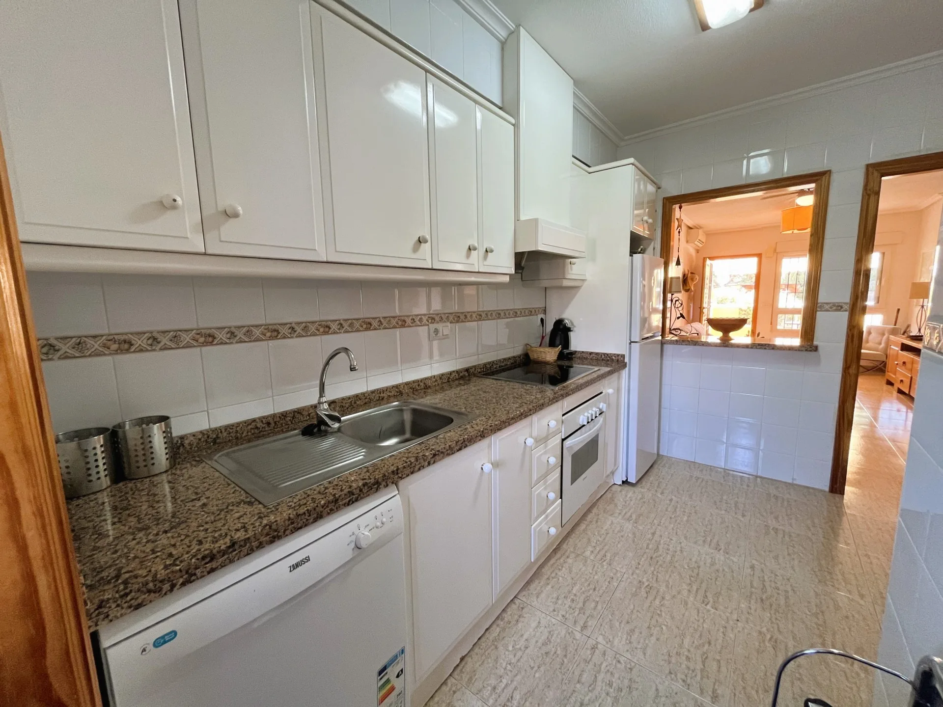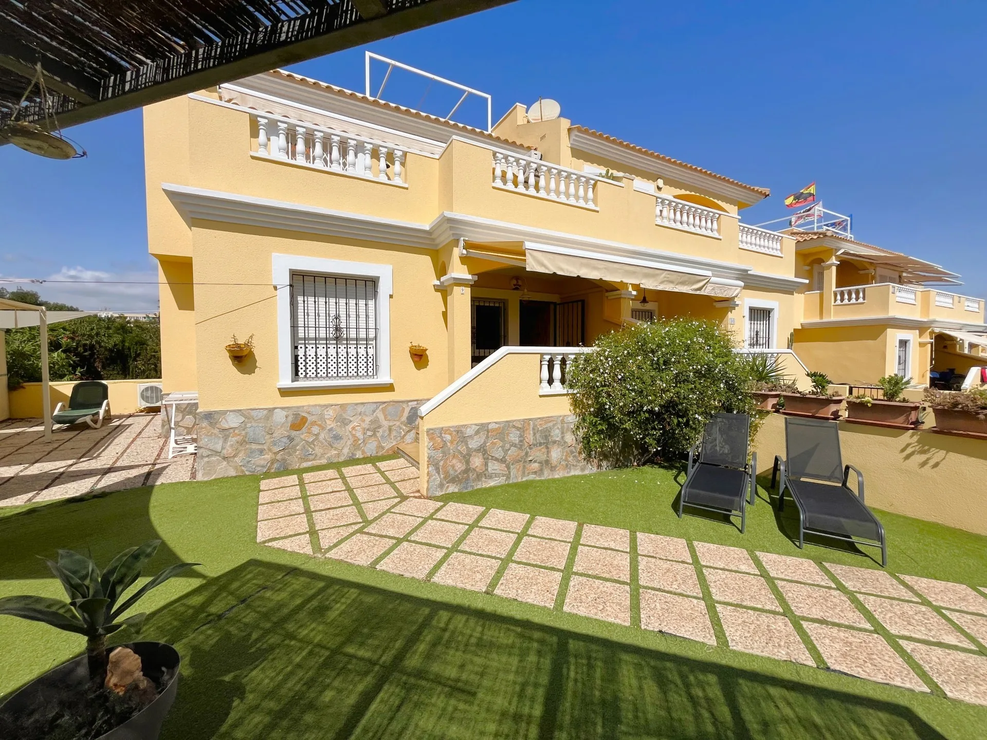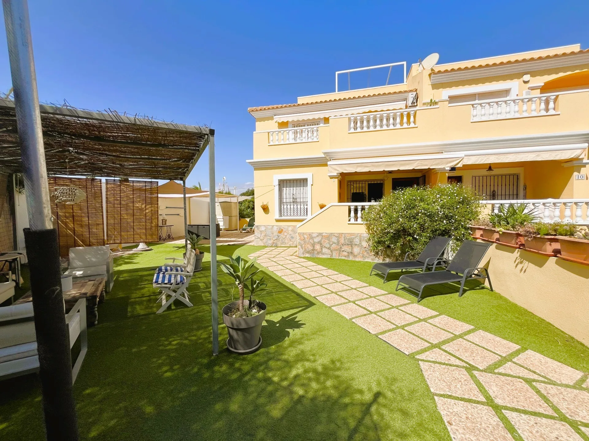 Espectacular vivienda a tan solo 200 metros de la playa. Esta magnífica casa de planta baja ofrece un amplio jardín, perfecto para disfrutar de momentos inolvidables al aire libre con tu familia. El salón, espacioso y lleno de luz natural, se complementa con una cocina independiente que incluye galería. La vivienda cuenta con 3 dormitorios amplios, todos con armarios empotrados, y 2 baños completos. Además, dispone de una zona de aparcamiento y acceso a una fantástica piscina comunitaria. Ubicada en una de las mejores zonas de Orihuela Costa, está cerca de todos los servicios: restaurantes, bares, supermercados y las mejores playas de la zona. ¡Un lugar ideal para disfrutar del Mediterráneo.