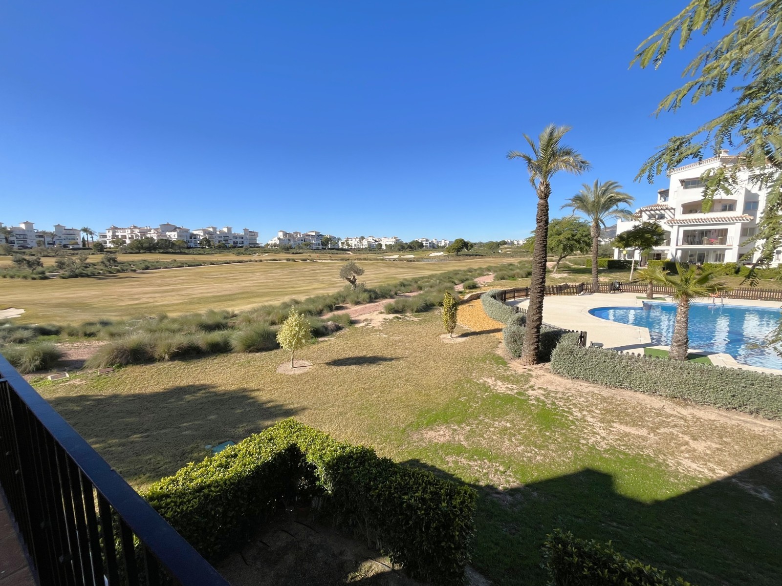 Estupendo Apartamento en el Club de Golf de Sucina, con vistas a la pisicna communitaria y zonas ajardinadas con una terraza inmensa donde podrás disfrutar una cena en compañia. La vivienda tiene un salon agradable que da accesso a la terraza. Tiene una cocina independiente, con una galeria. Hay un total de 2 dormitorios el principal con acceso a la terraza. La vivienda se encuentra en una zona ideal para los amantes de Golf, rodeado de zonas verdes y ajardinadas, cerca a todos los servicios. La vivienda tiene plaza de garaje privada y el residencial cuenta con seguridad privada..