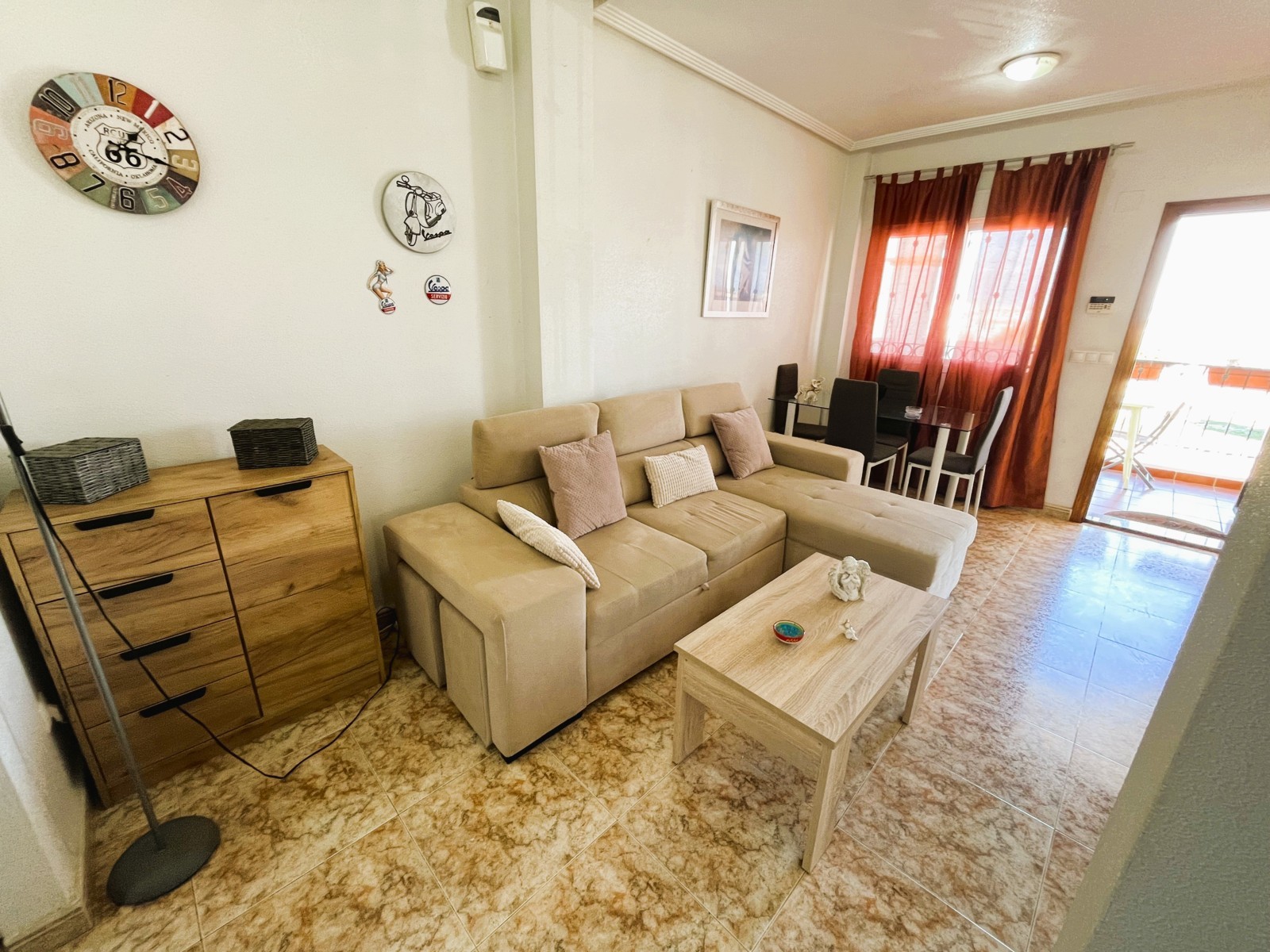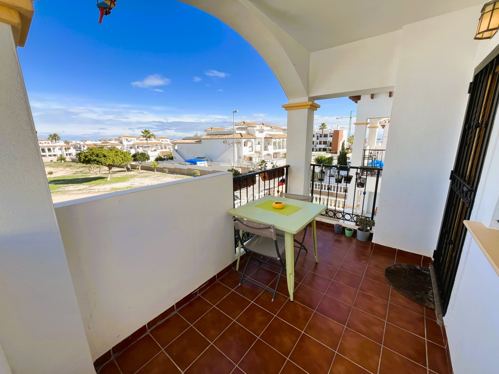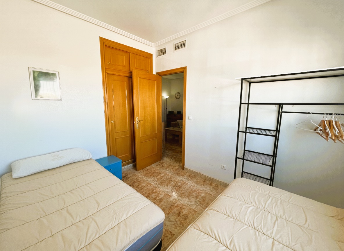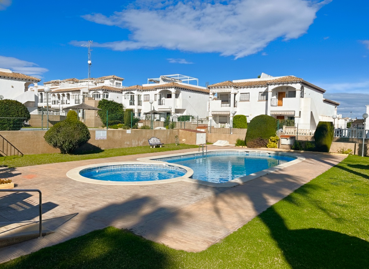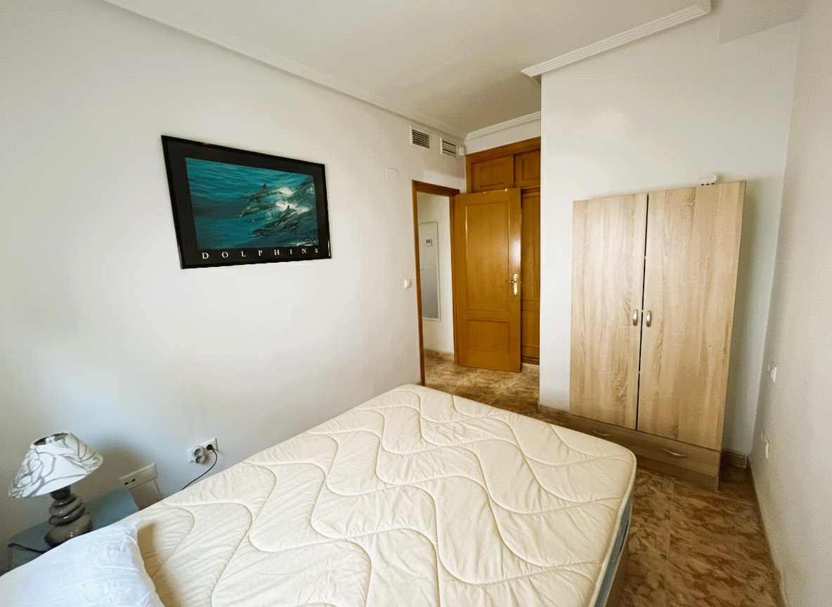 Fantástica vivienda de dos dormitorios en La Zenia muy cerca de todos los servicios y en un residencial muy tranquilo. El apartamento tiene un amplio patio de entrada, una terraza muy agradable y el salón comedor es muy luminoso. Dispone de una cocina independiente con acceso a una zona de lavadero, dos dormitorios con armarios empotrados y dos baños. Consta de aire acondicionado por conducto y en la parte de arriba tiene un maravilloso solárium con vistas al mar, ideal para tomar un aperitivo con los amigos. Tiene plaza de aparcamiento. Ademas el residencial dispone de dos piscinas comunitarias y zonas verdes. Este apartamento no se puede reservar por menos de 11 noches. Es una estancia mid term conforme al Decreto Ley 9/2024 del gobierno de la Comunidad Valenciana..