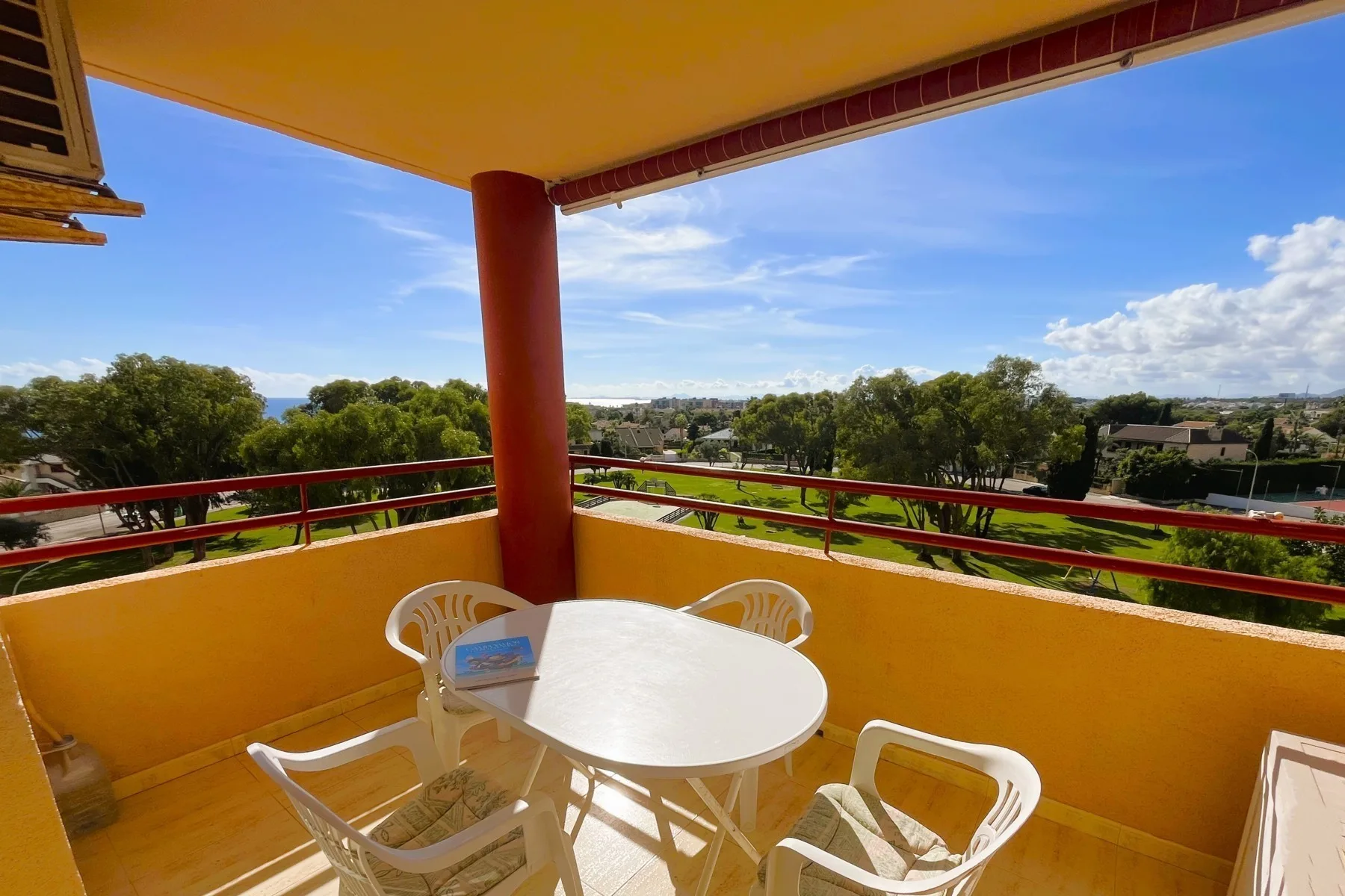 Estupendo apartamento con vistas al mar Mediterráneo a solamente 200 m de las mejores playas de Campoamor. La vivienda tiene una amplia terraza donde podrás disfrutar tomando un café por la mañana con la brisa del mar. La vivienda tiene un espacioso salón comedor con aire acondicionado. La cocina es independiente con una galería. La vivienda tiene un total de dos dormitorios con armarios empotrados y vistas. Está ubicado en el centro de Campoamor cerca a todos los servicios, con aparcamiento propio. Este apartamento no se puede reservar por menos de 11 noches. Es una estancia mid term conforme al Decreto Ley 9/2024 del gobierno de la Comunidad Valenciana..