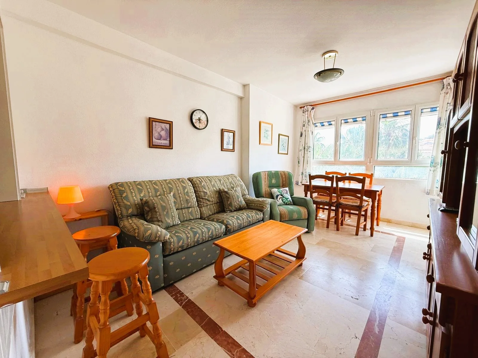 Estupendo apartamento en Dehesa de Campoamor con acceso a una fantástica piscina comunitaria y zonas verdes. Esta bonita vivienda cuenta con un luminoso salón-comedor con acceso a una terraza ideal para descansar y relajarse leyendo un buen libro. La cocina independiente está muy bien equipada y dispone de una ventana que conecta con el salón, permitiendo la entrada de abundante luz natural. El dormitorio principal cuenta con ventilador de techo, armario empotrado y tiene un baño completo. La vivienda se encuentra en una urbanización que ofrece piscina comunitaria, pista de tenis y una plaza de aparcamiento privada. Además, está cerca de todos los servicios: bares, restaurantes, supermercado y las mejores playas de la zona. Este apartamento no se puede reservar por menos de 11 noches. Se trata de una estancia de media duración, conforme al Decreto Ley 9/2024 del Gobierno de la Comunidad Valenciana..