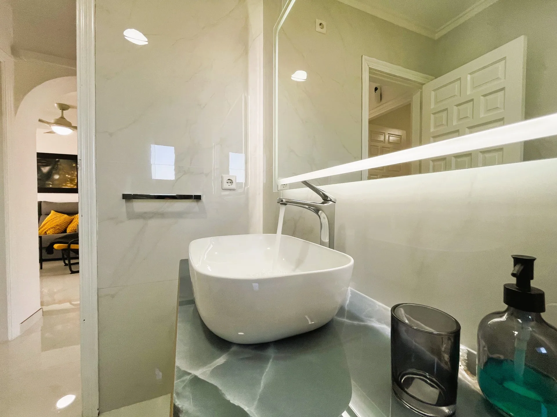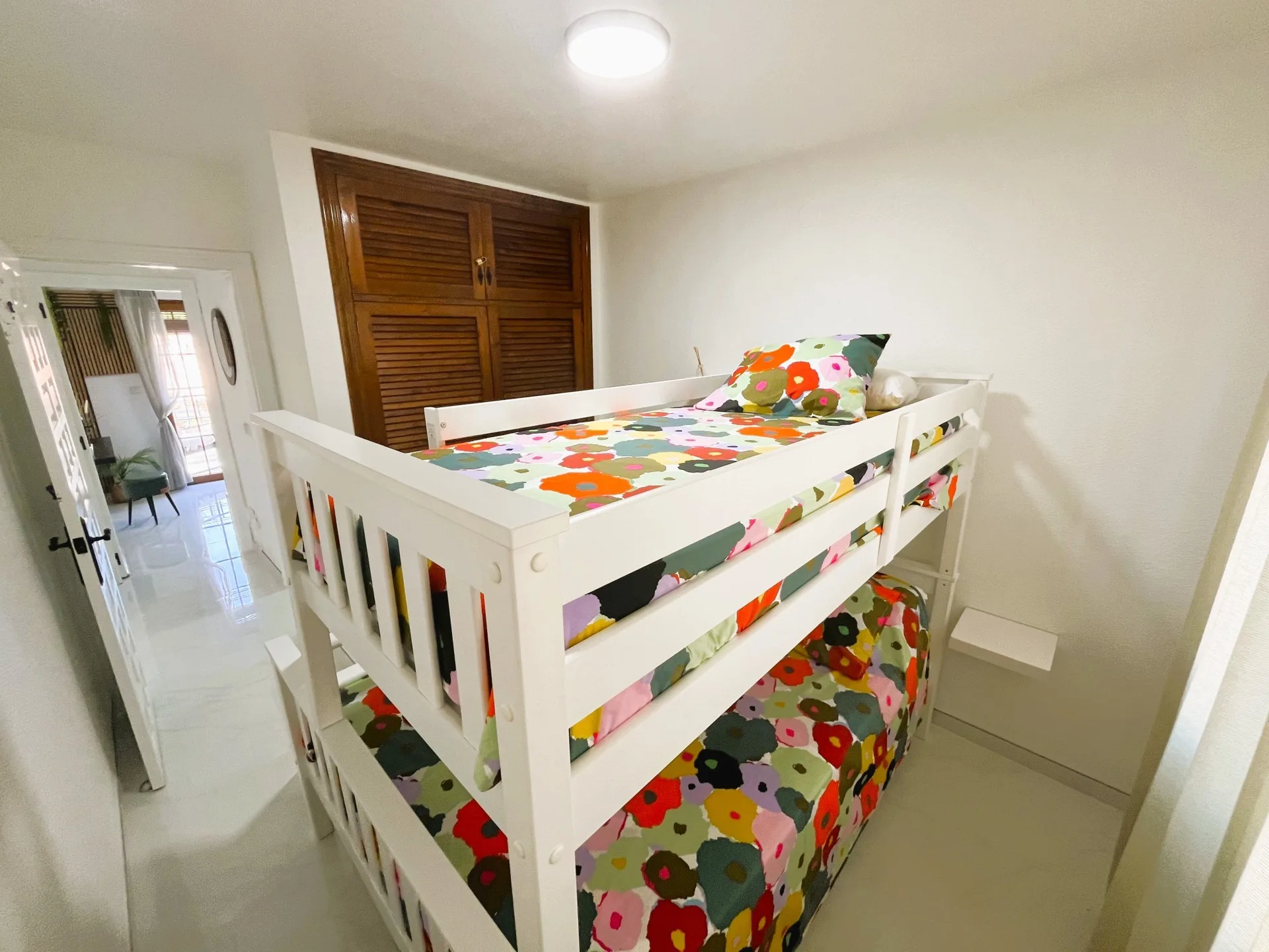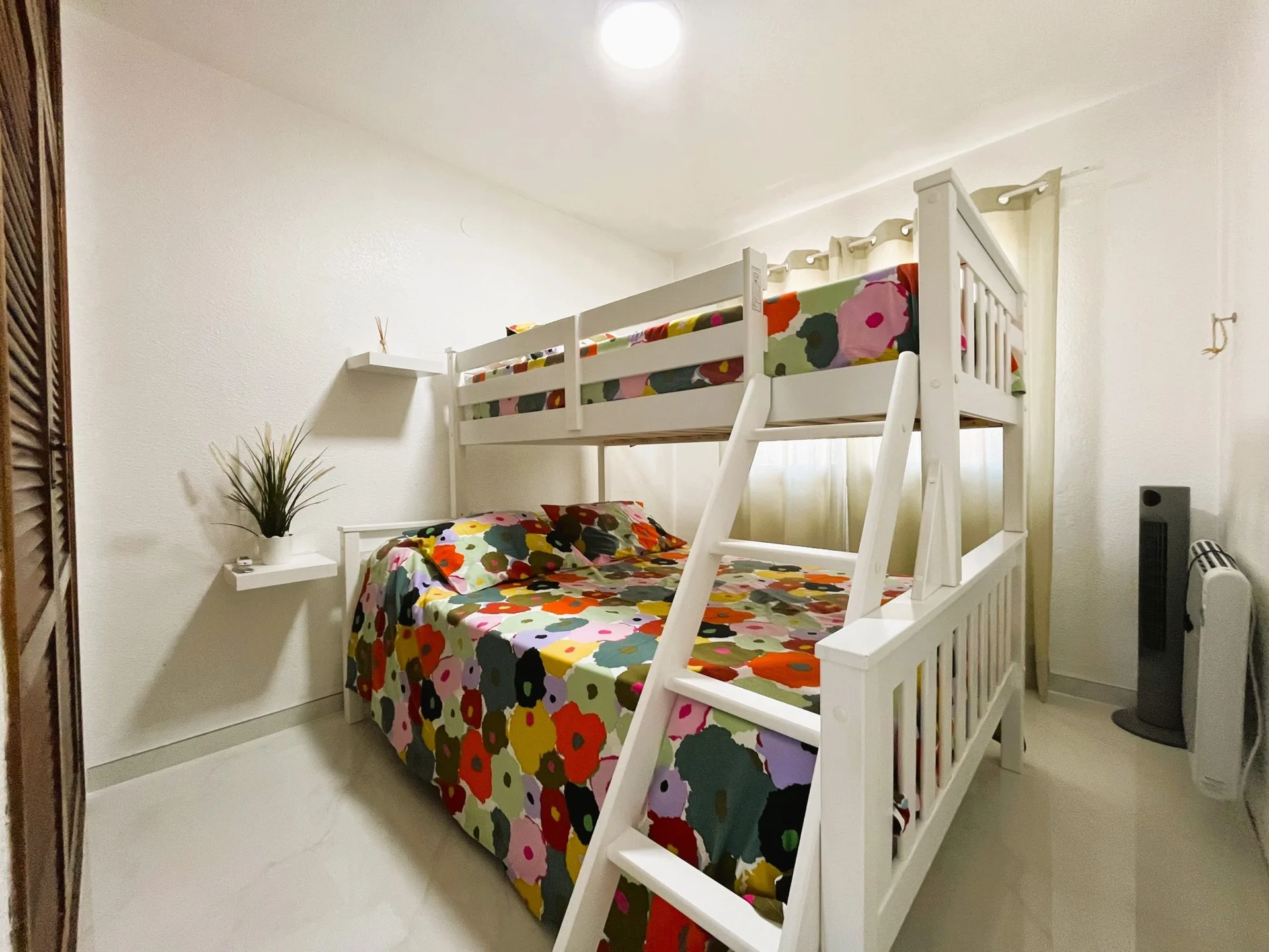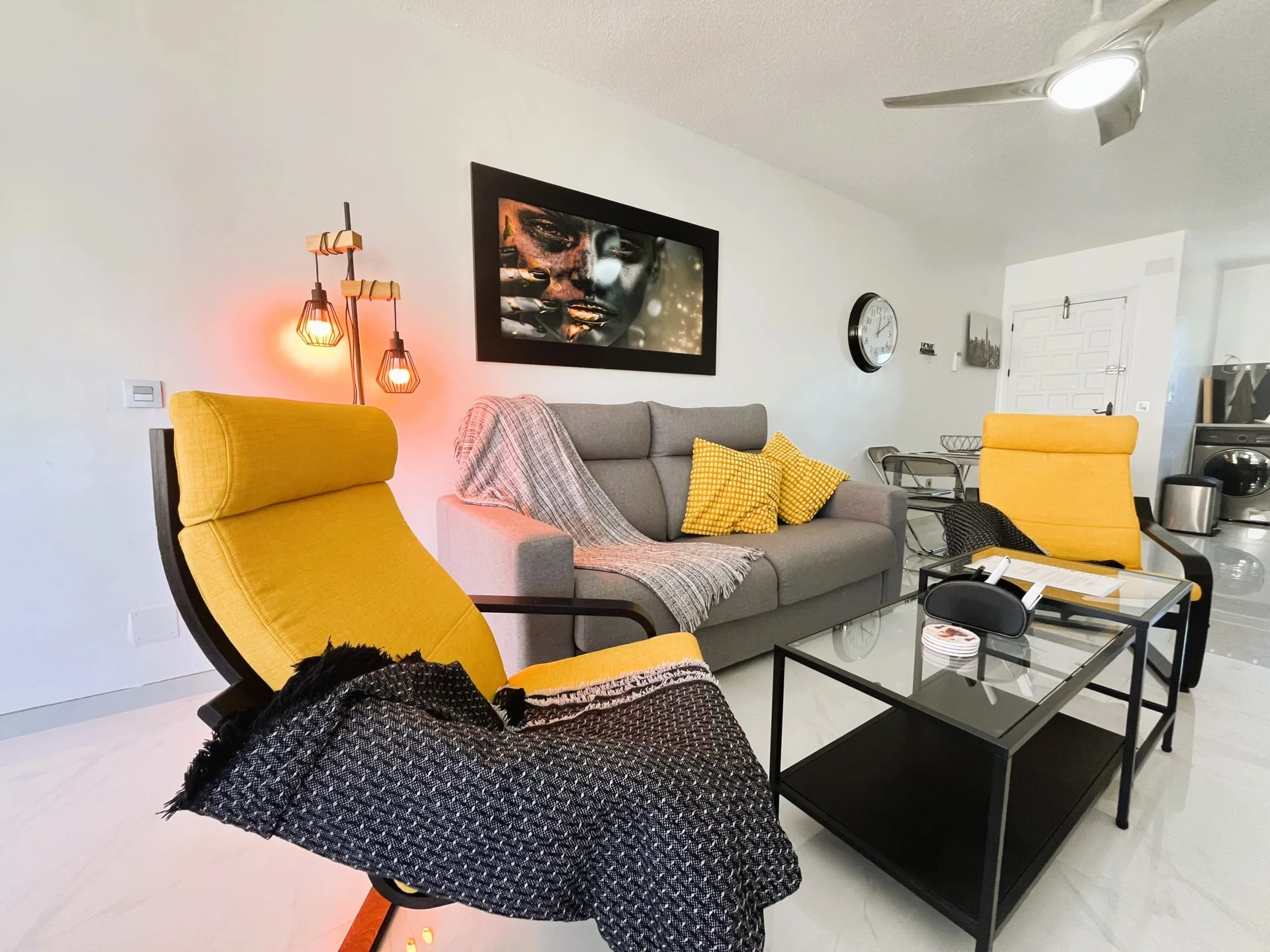 Estupendo piso completamente reformado en la zona alta de Campoamor. Esta luminosa y acogedora vivienda ha sido recientemente reformada. Dispone de un amplio salón-comedor decorado con mobiliario de estilo moderno, que se conecta con una encantadora terraza acristalada, ideal como zona de comedor desde la que se puede disfrutar de unas preciosas vistas. La cocina americana está perfectamente integrada en el espacio, totalmente equipada y cuenta con una práctica ventana que aporta abundante luz natural, creando un ambiente agradable y funcional. El dormitorio principal incluye una cómoda cama de matrimonio, ventilador de techo, un armario espacioso y acceso directo a una bonita terraza, perfecta para disfrutar de un café por la mañana o relajarse leyendo al aire libre. El segundo dormitorio está equipado con una práctica litera y armario empotrado, ideal para familias o como espacio adicional. Tiene un baño completo con ducha. La vivienda se ubica en una urbanización cerrada que ofrece tranquilidad y acceso a una estupenda piscina comunitaria. Cerca a todos los servicios, restaurantes, paseo marítimo, parques infantiles, y unas playas espectaculares en Campoamor. Este apartamento no se puede reservar por menos de 11 noches. Es una estancia “mid term” conforme al Decreto Ley 9/2024 del gobierno de la Comunidad Valenciana..