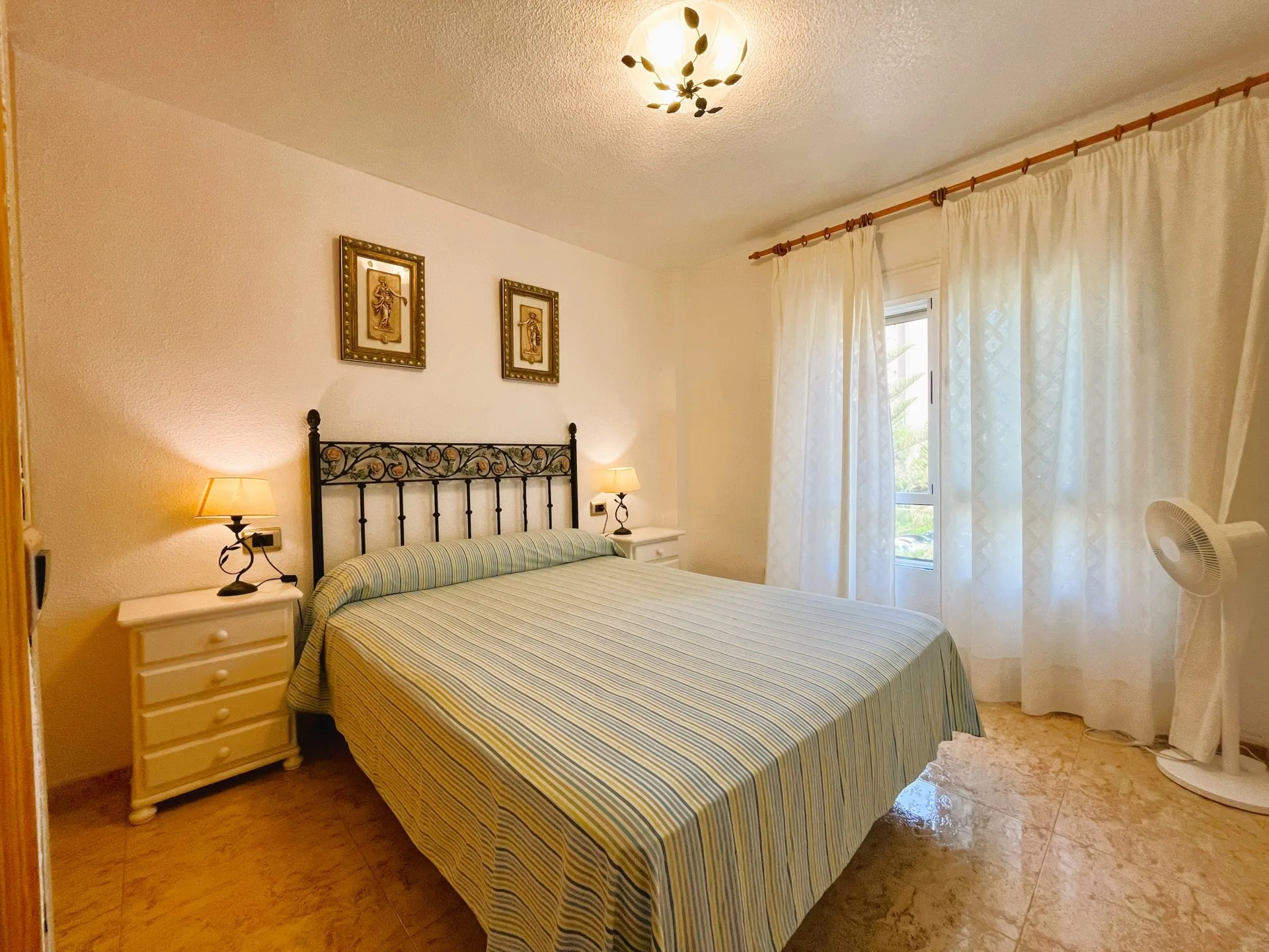 Estupendo apartamento en el centro de Campoamor a tan solo 375 mts de la playa. La vivienda cuenta con una agradable terraza acristalada con vistas al mar. El salón-comedor es muy amplio y luminoso, y la cocina es independiente. El dormitorio principal, con una amplia ventana que deja entrar mucha luz natural, dispone de armario empotrado y ventilador de techo. Incluye plaza de aparcamiento libre y servicio de portería. La vivienda se encuentra cerca de todos los servicios: bares, restaurantes, supermercado y las mejores playas de la zona..
