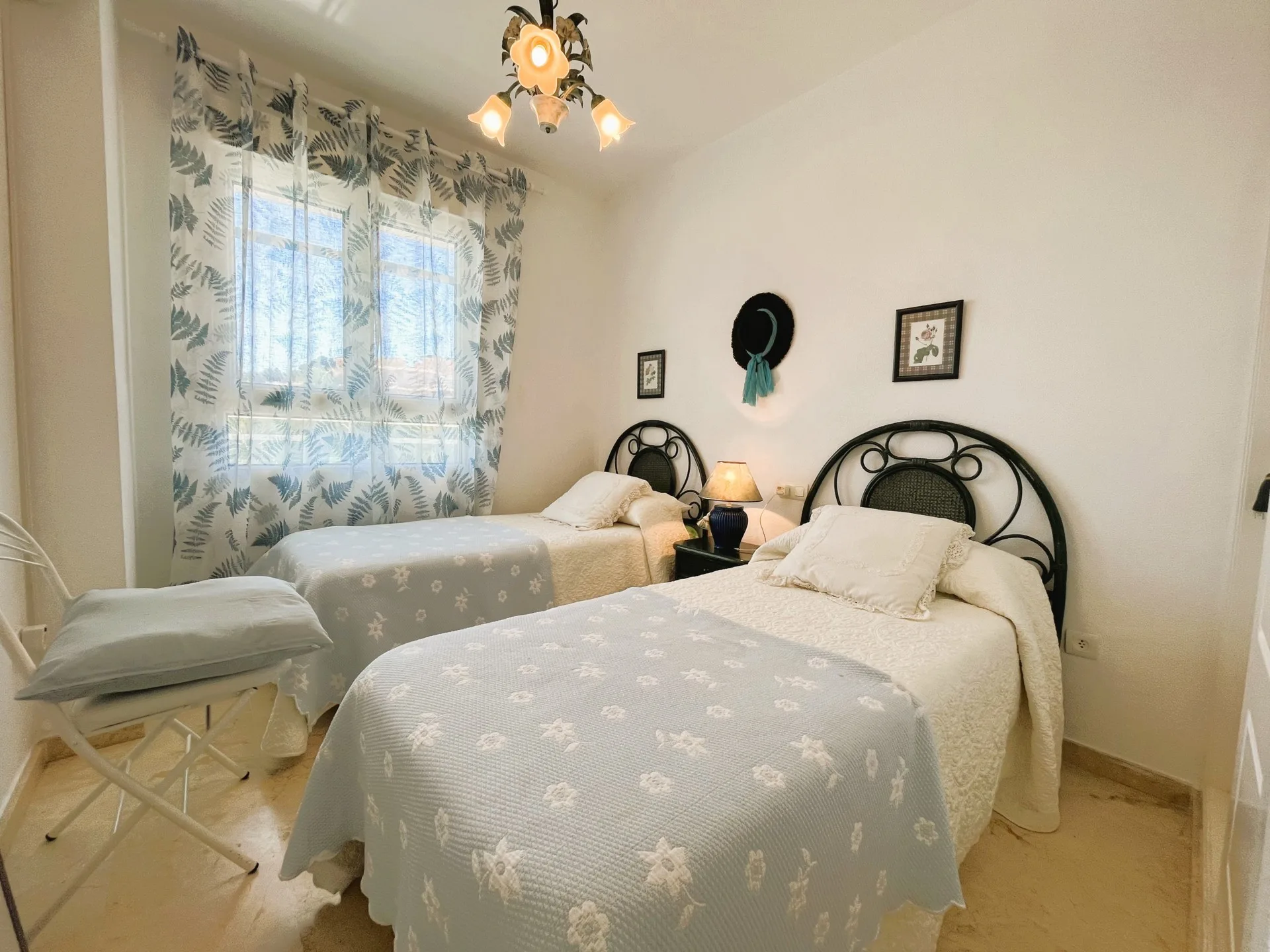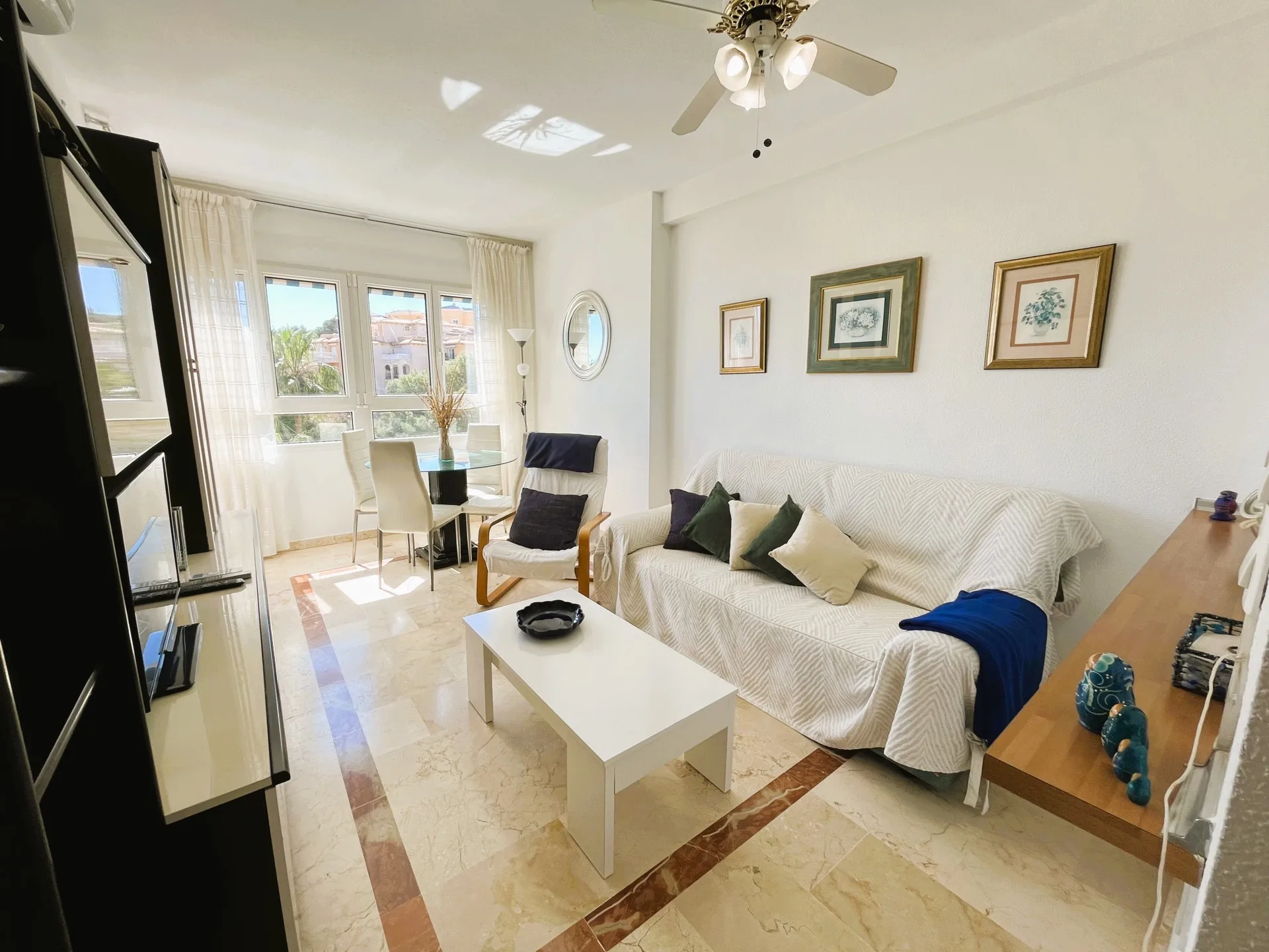 Encantador piso en Dehesa de Campoamor con vistas al mar y a la pinada. Esta bonita vivienda cuenta con 2 dormitorios. El principal dispone de un armario empotrado y acceso directo a la terraza, mientras que el segundo dormitorio, amplio y luminoso, también incluye un armario empotrado doble. El piso cuenta con un baño completo con bañera y un espacioso salón, que se comunica con la cocina a través de una ventana interior, lo que aporta mayor luminosidad. La cocina, además, dispone de una ventana exterior y numerosos armarios de almacenaje. La vivienda se encuentra en una urbanización que ofrece piscina comunitaria, pista de tenis y una plaza de aparcamiento privada. Dispone de plaza de aparcamiento. Se encuentra cerca de todos los servicios, bares, restaurantes, supermercado y las mejores playas de la zona. Este apartamento no se puede reservar por menos de 11 noches. Es una estancia mid term conforme al Decreto Ley 9/2024 del gobierno de la Comunidad Valenciana..
