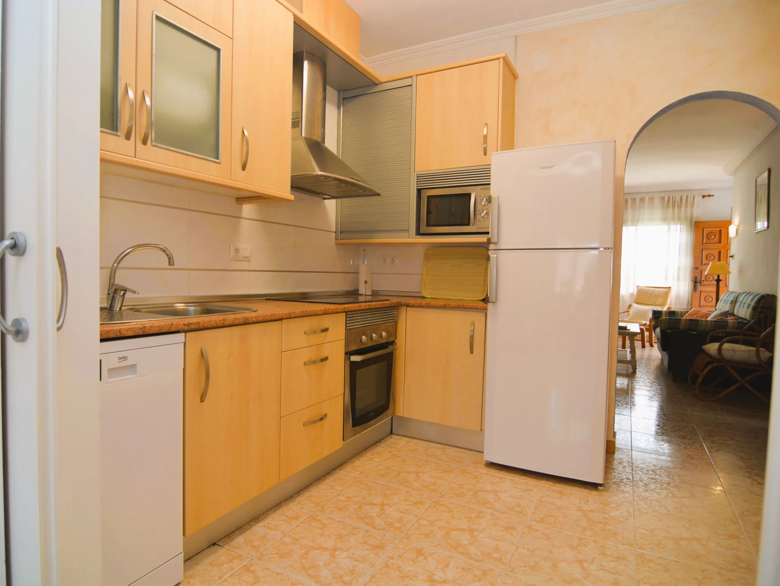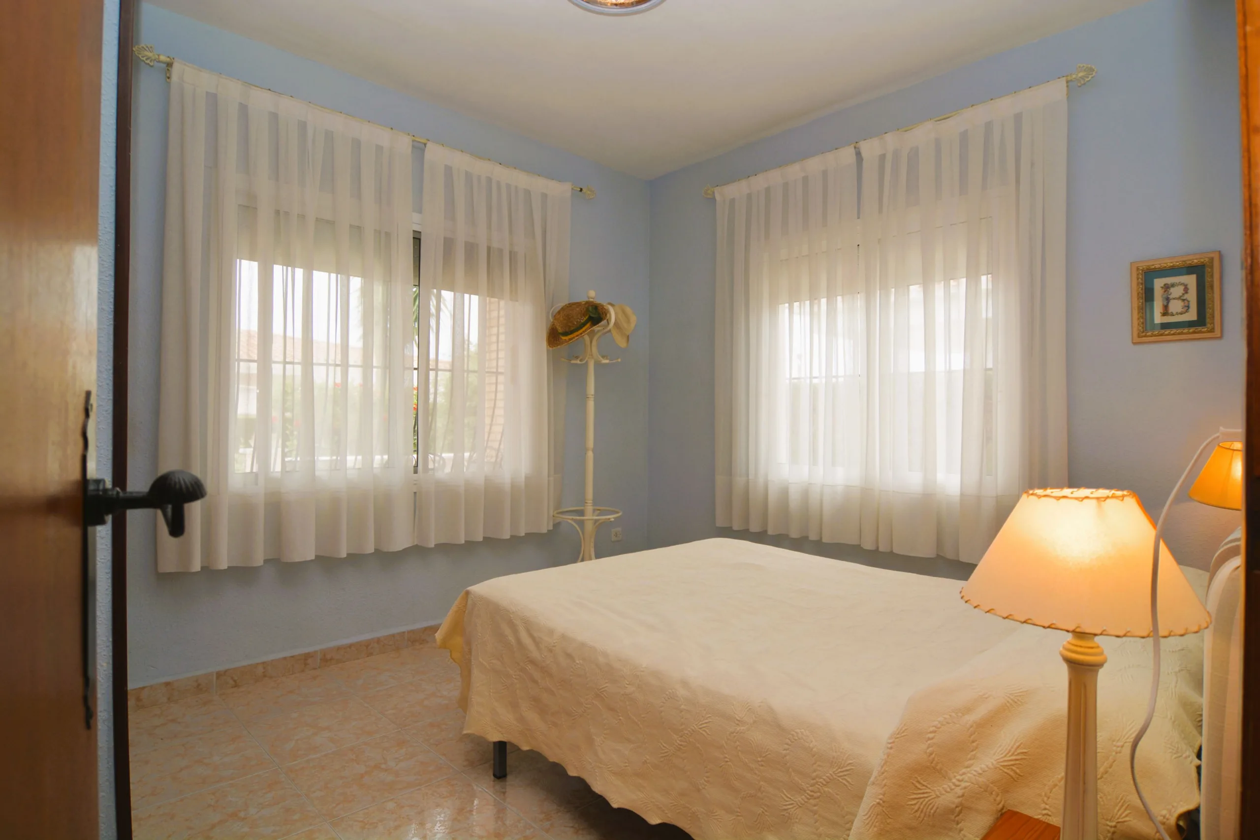 Fantástico mini chalet de tres dormitorios en Campoamor. La vivienda tiene un agradable y amplio jardín, porche cubierto, salón comedor, la cocina es independiente y dispone de lavavajillas. Los dormitorios tienen sus armarios empotrados y son muy luminosos, dispone de un baño y un trastero con acceso independiente. La casa tiene acceso a una zona comunitaria con piscina, zona verde y pista de tenis. Este mini no se puede reservar por menos de 11 noches. Es una estancia “mid term” conforme al Decreto Ley 9/2024 del gobierno de la Comunidad Valenciana..