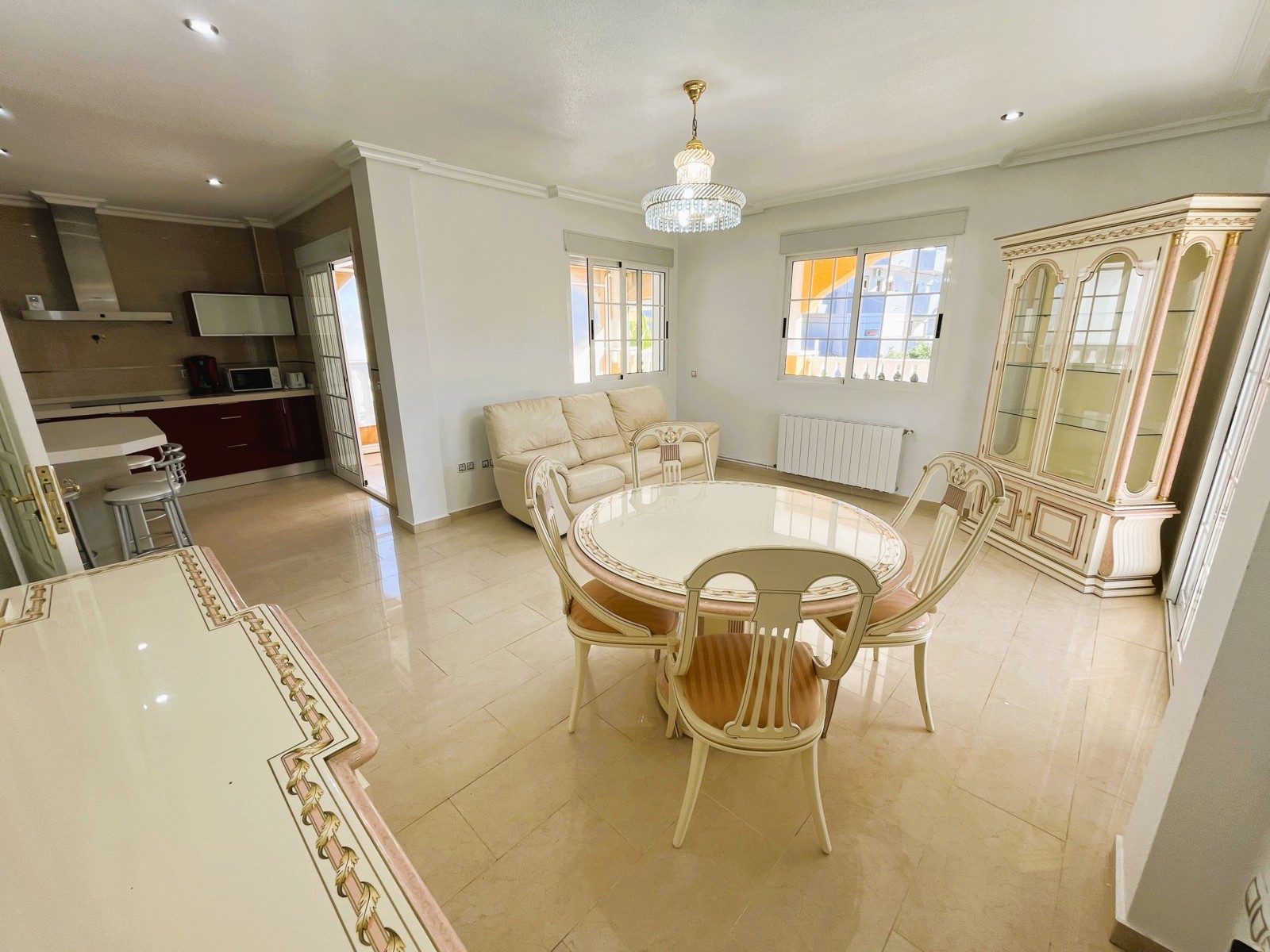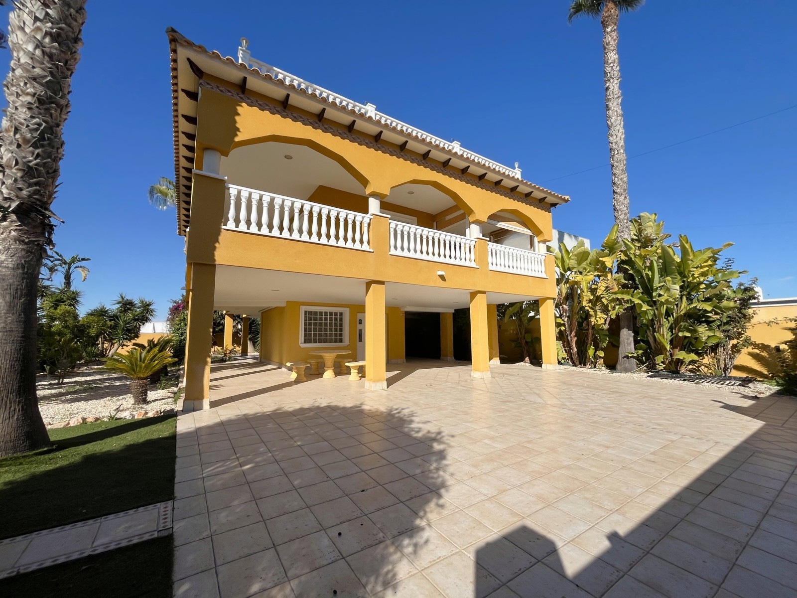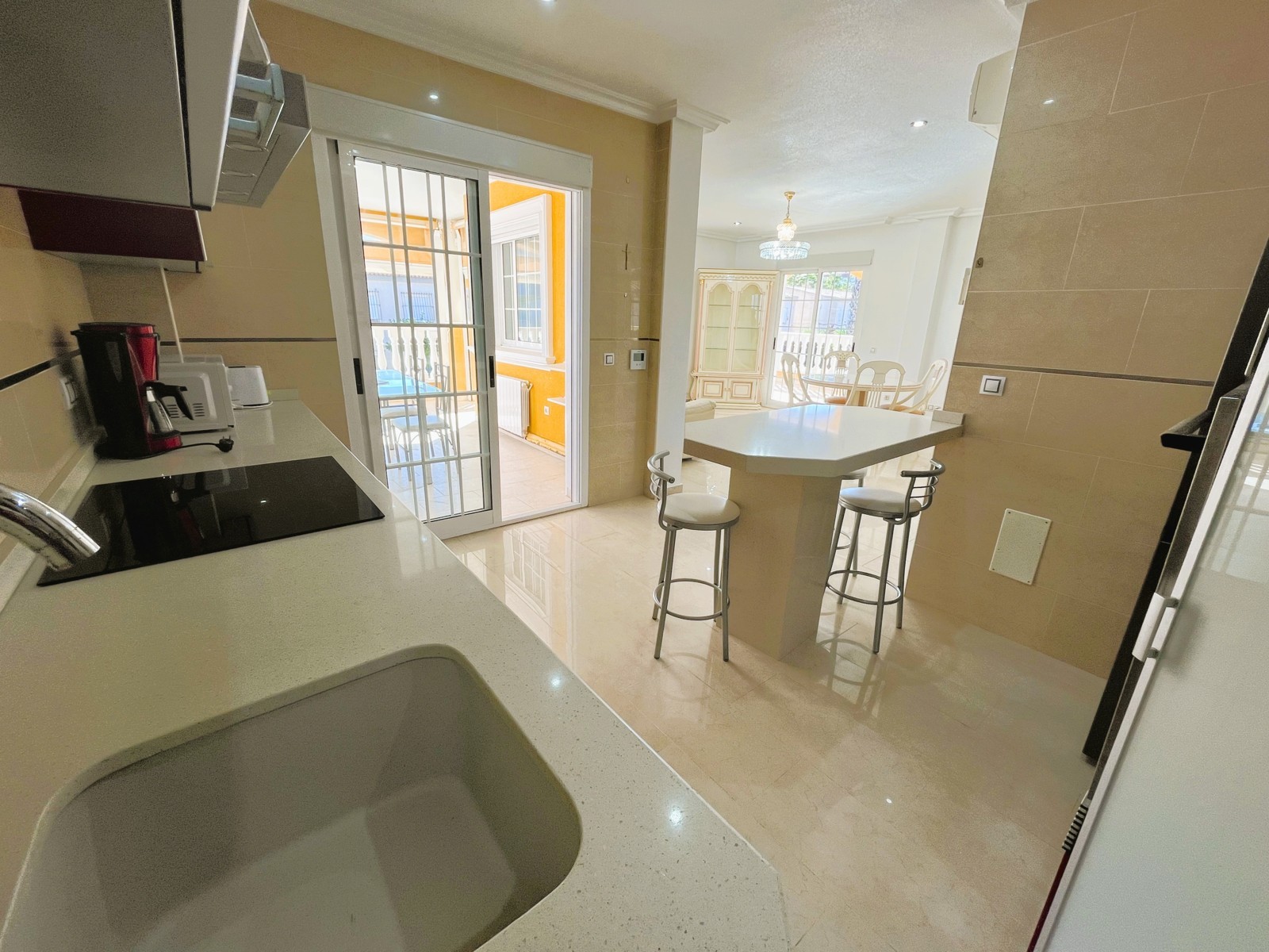 Fantastic Villa with 3 Bedrooms and Spacious Outdoor Areas. This charming villa offers a bright and generous outdoor space, featuring a sunny terrace perfect for family meals and relaxing moments. On the main floor, you’ll find a spacious living–dining area with air conditioning and direct access to a modern, fully equipped kitchen. There is also a separate laundry area with direct access to the terrace . The sleeping area includes 3 bedrooms with built-in wardrobes and 2 full bathrooms, designed for comfort and convenience. Outside, the property offers ample parking space for vehicles and a lovely garden ideal for unwinding. Located in a privileged area, it is close to all essential services—restaurants, bars, supermarkets—and the best beaches in the area..