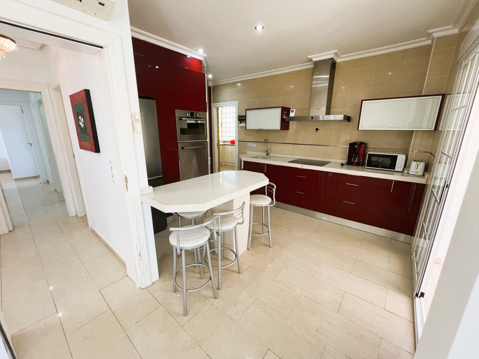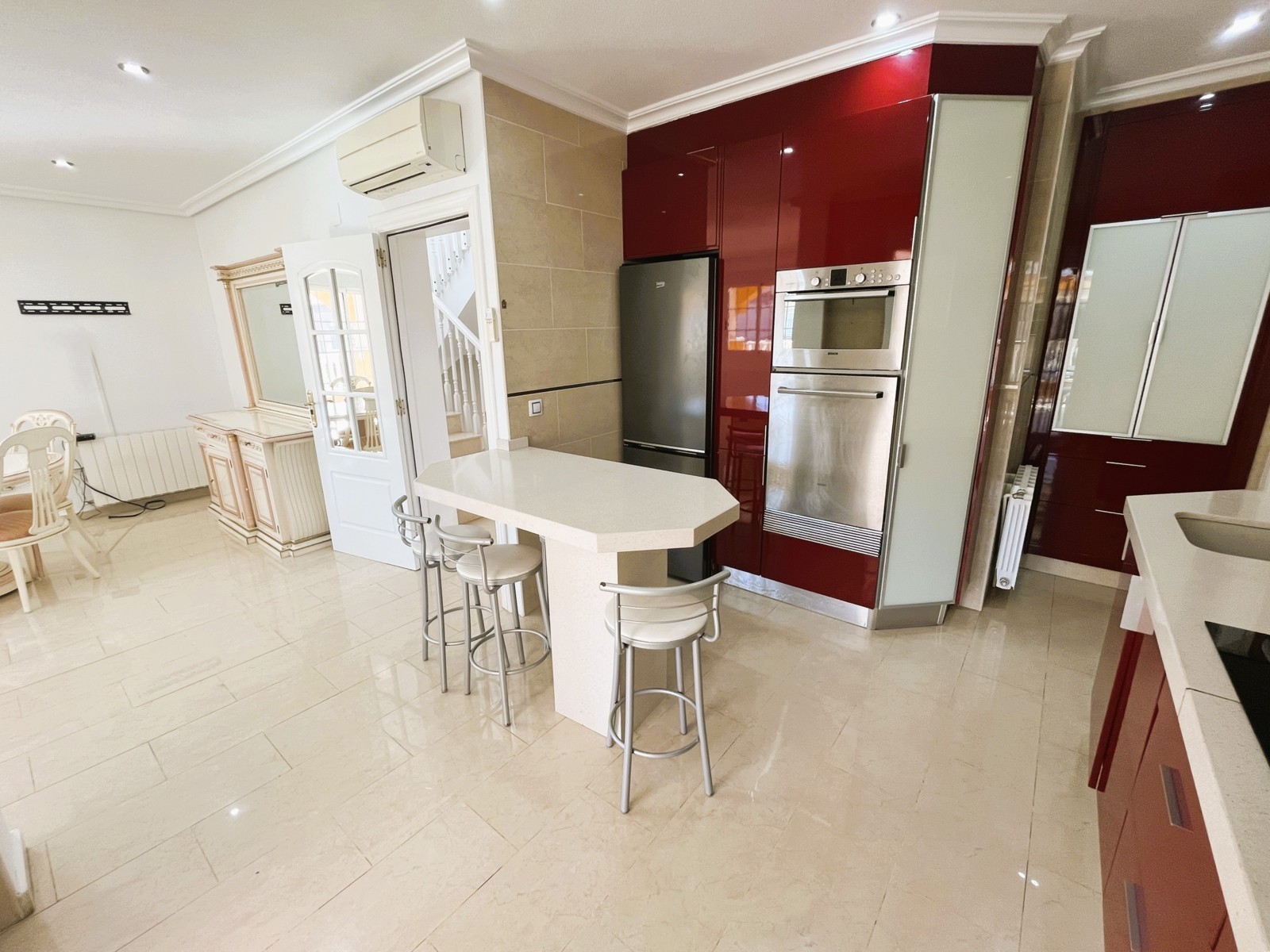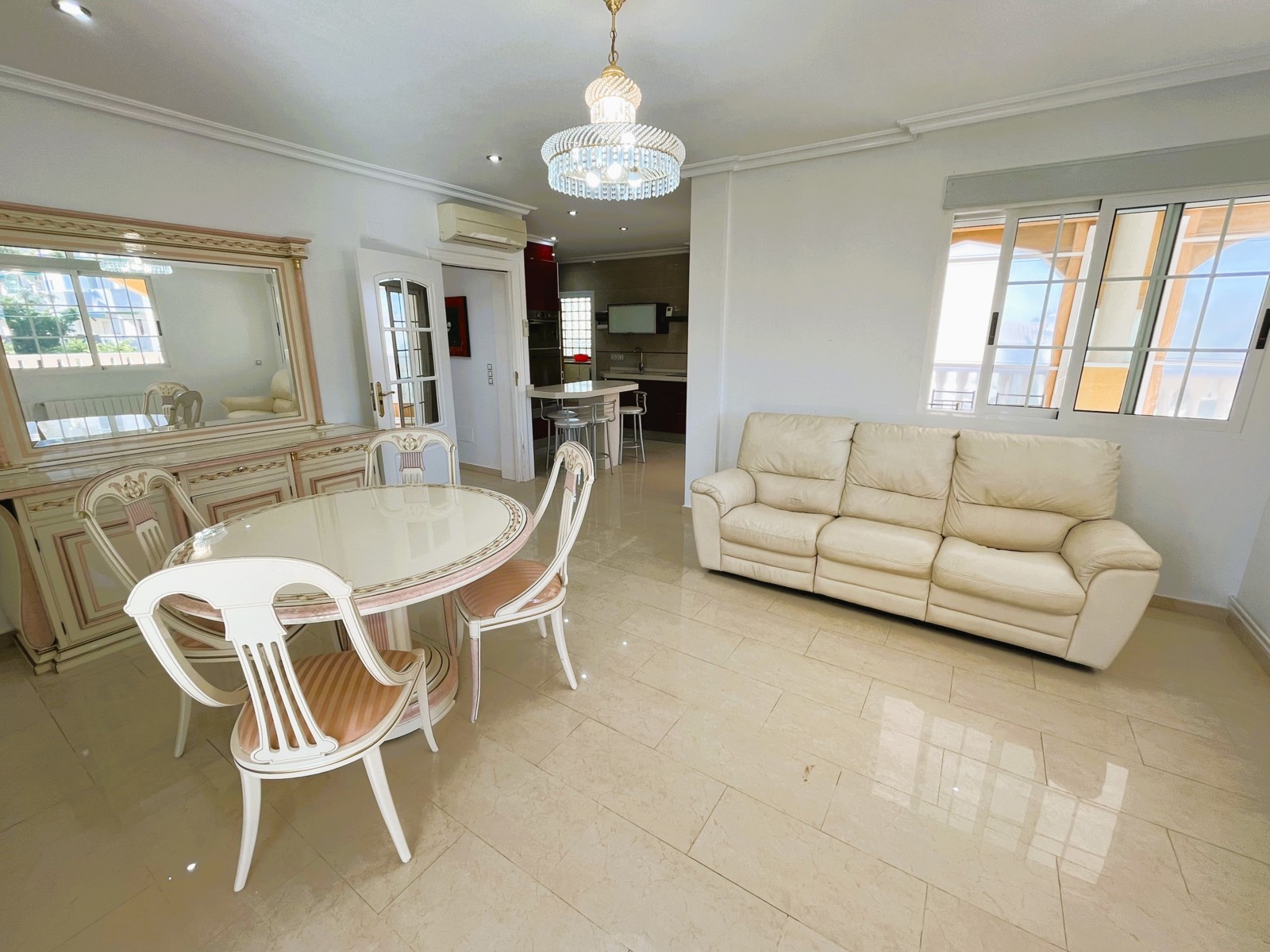 Fantastic Villa with 3 Bedrooms and Spacious Outdoor Areas. This charming villa offers a bright and generous outdoor space, featuring a sunny terrace perfect for family meals and relaxing moments. On the main floor, you’ll find a spacious living–dining area with air conditioning and direct access to a modern, fully equipped kitchen. There is also a separate laundry area with direct access to the terrace . The sleeping area includes 3 bedrooms with built-in wardrobes and 2 full bathrooms, designed for comfort and convenience. Outside, the property offers ample parking space for vehicles and a lovely garden ideal for unwinding. Located in a privileged area, it is close to all essential services—restaurants, bars, supermarkets—and the best beaches in the area..