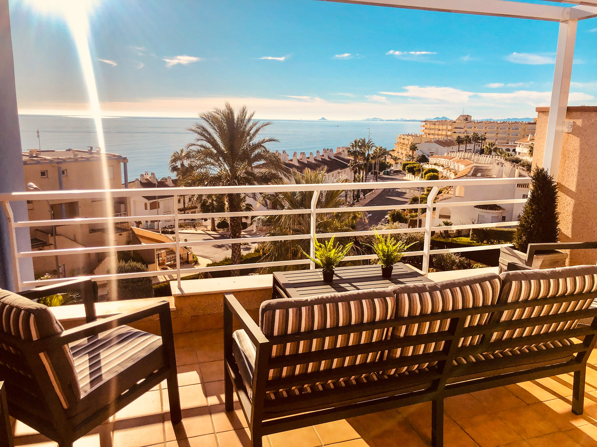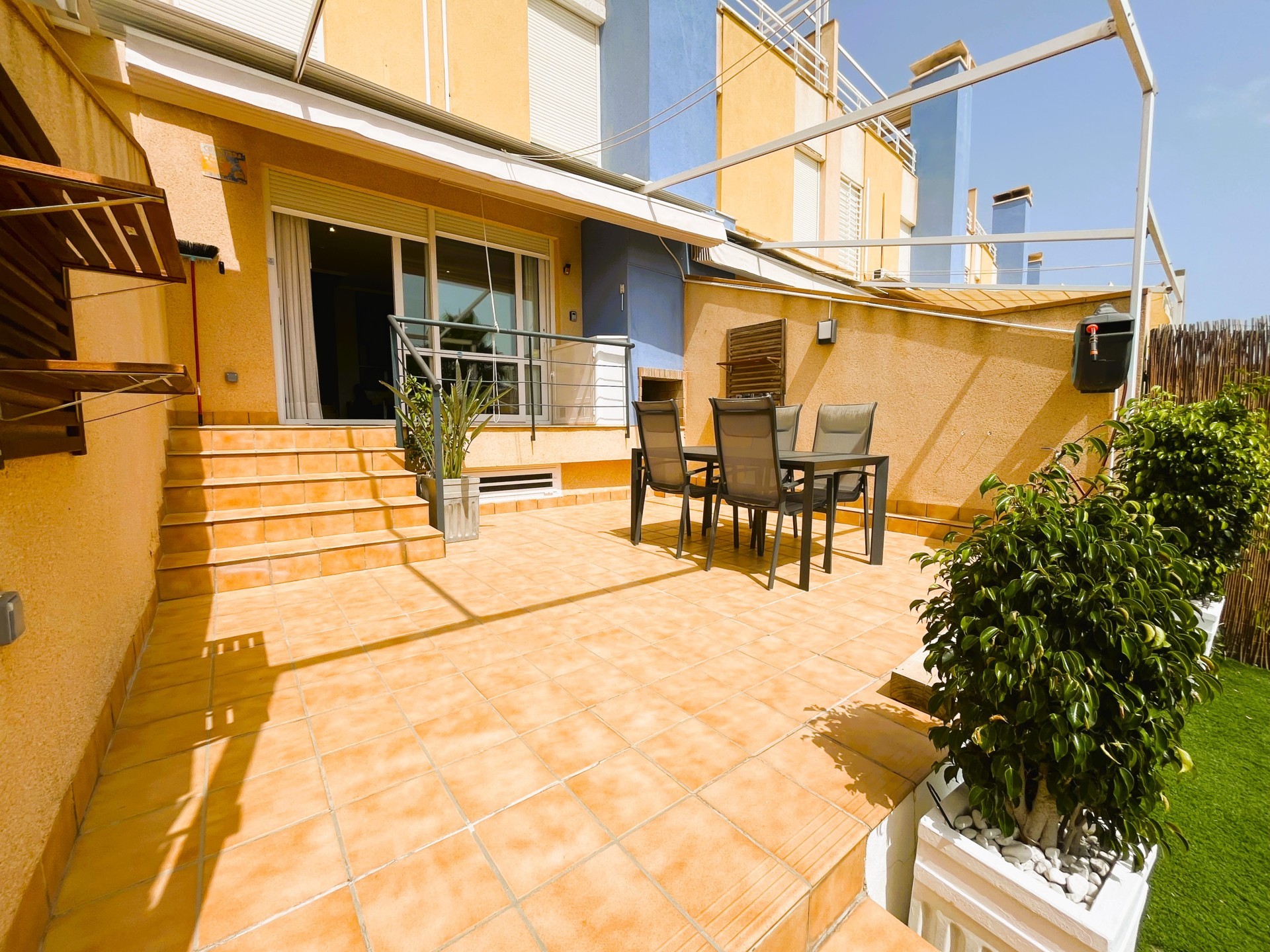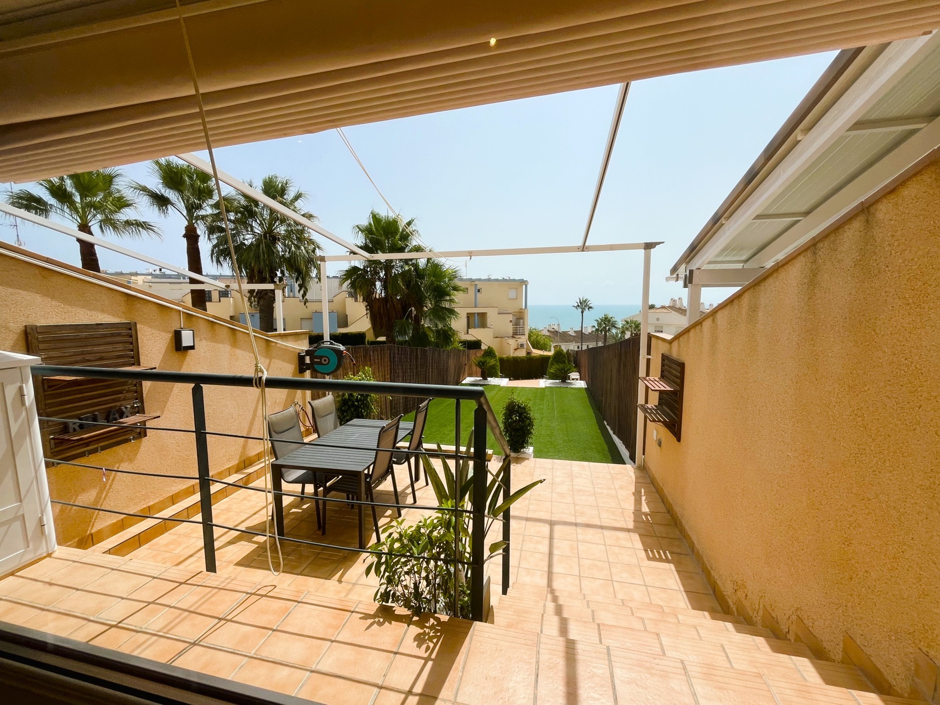 Stupendous Dúplex in Dehesa de Campoamor, Aguamarina with views of the Mediterranean Sea, only 160m from the beach, with an amazing and large garden with artificial grass and a porch that has beautiful Sea views, where you can enjoy a nice dinner out in the fresh air. The property has a welcoming and modern salon with a chimenea, next to an opened american kitchen and a storage area. The bedrooms are found on the second floor, a total of 3 bedrooms and 3 bathrooms. On the third floor there is a big solarium, with spectacular views of the entire Coast, perfect place for star glazing at night. The home is located in a closed gated residencial with a common swimming pool and area to relax. It is close to all services, restaurants, bars, supermarkets, medical centres, markets, beach bars, Sea ports, maritime walks and close to some of the best coastal areas and beaches of the entire Costa Blanca. This apartment cannot be booked for less than 11 nights. It is a mid-term stay in accordance with Decree Law 9/2024 of the government of the Comunidad Valenciana..