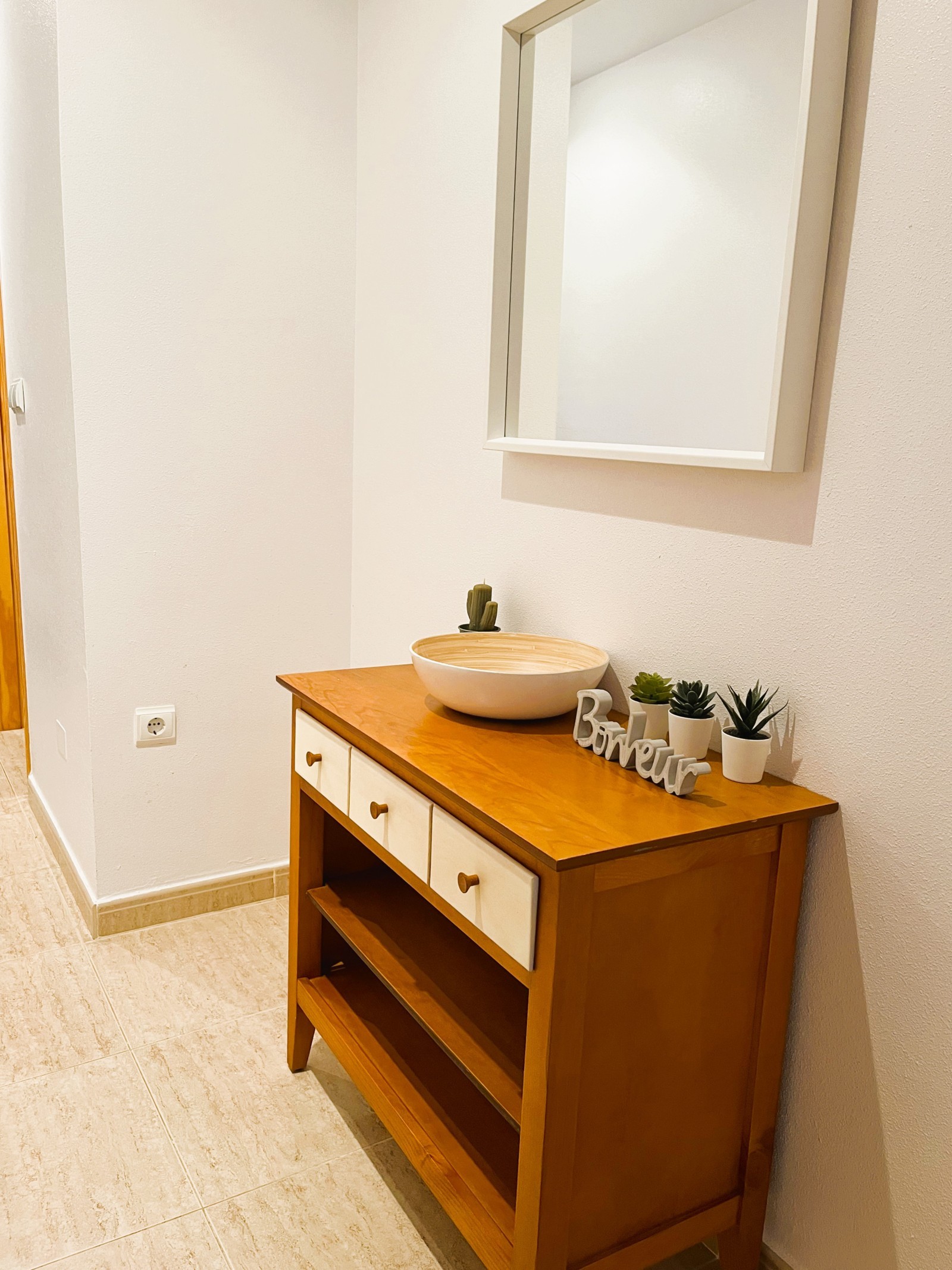 Fantastic 2-bedroom apartment in the center of Campoamor. The house has a bright terrace overlooking the Mediterranean Sea. It has a spacious living room, separate kitchen with laundry area, two bedrooms and a bathroom. The house belongs to a gated community, has a private parking space and community pool. It is close to all services, bars, restaurants, supermarket and the best beaches in the area. This apartment cannot be booked for less than 11 nights. It is a mid-term stay in accordance with Decree Law 9/2024 of the government of the Comunidad Valenciana..