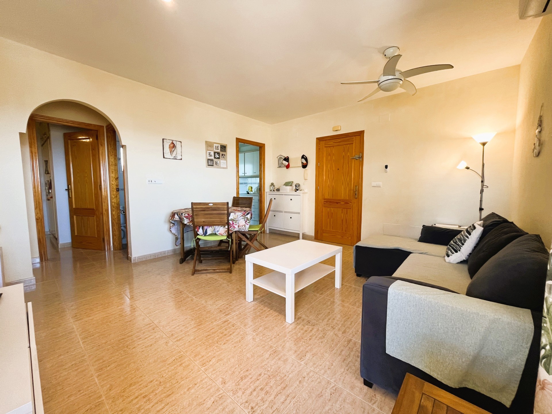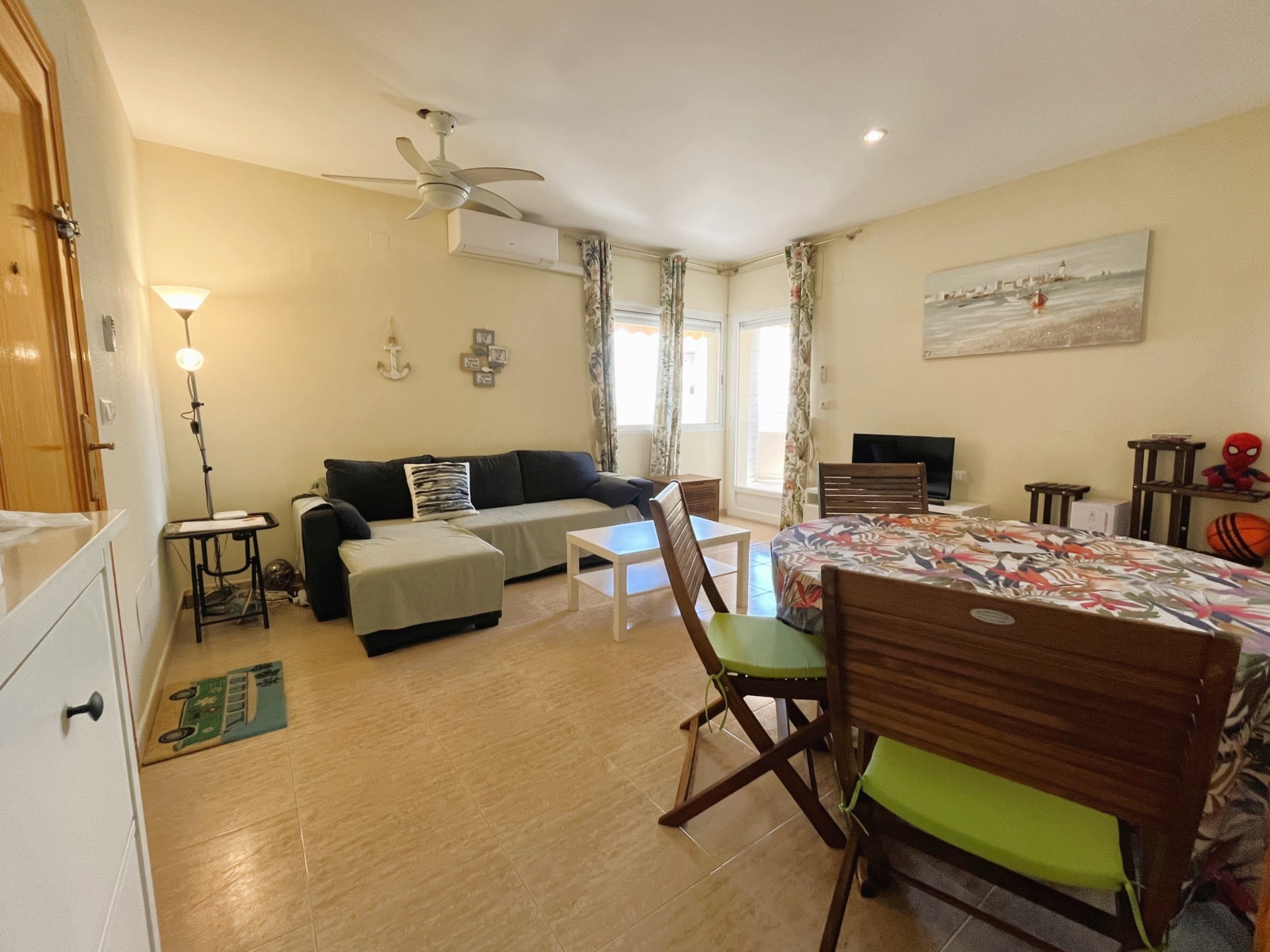 Fabulous apartment in the center of Campoamor with fantastic sea views at just 400 meters from the beach. The property has a spacious living room with air conditioning, a separate kitchen with laundry area, 2 bedrooms with ceiling fans, and 1 bathroom. It has its own parking space and access to a fantastic communal pool. Close to all amenities such as bars, restaurants, supermarket, green areas and the best beaches in the area. This apartment cannot be booked for less than 11 nights. It is a mid-term stay in accordance with Decree Law 9/2024 of the government of the Comunidad Valenciana..