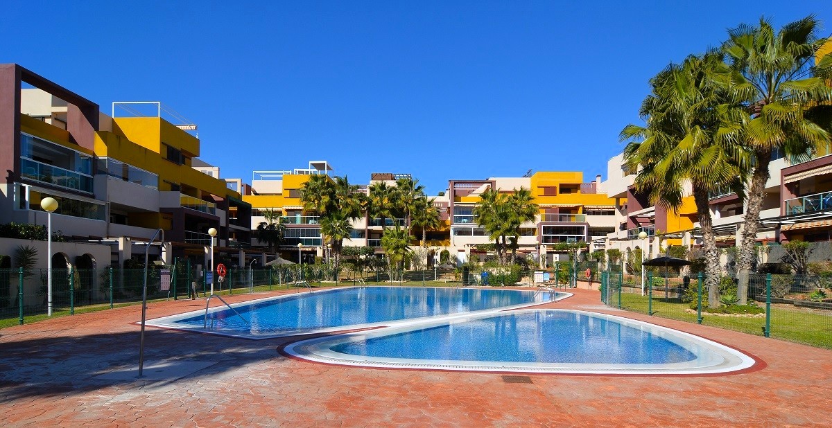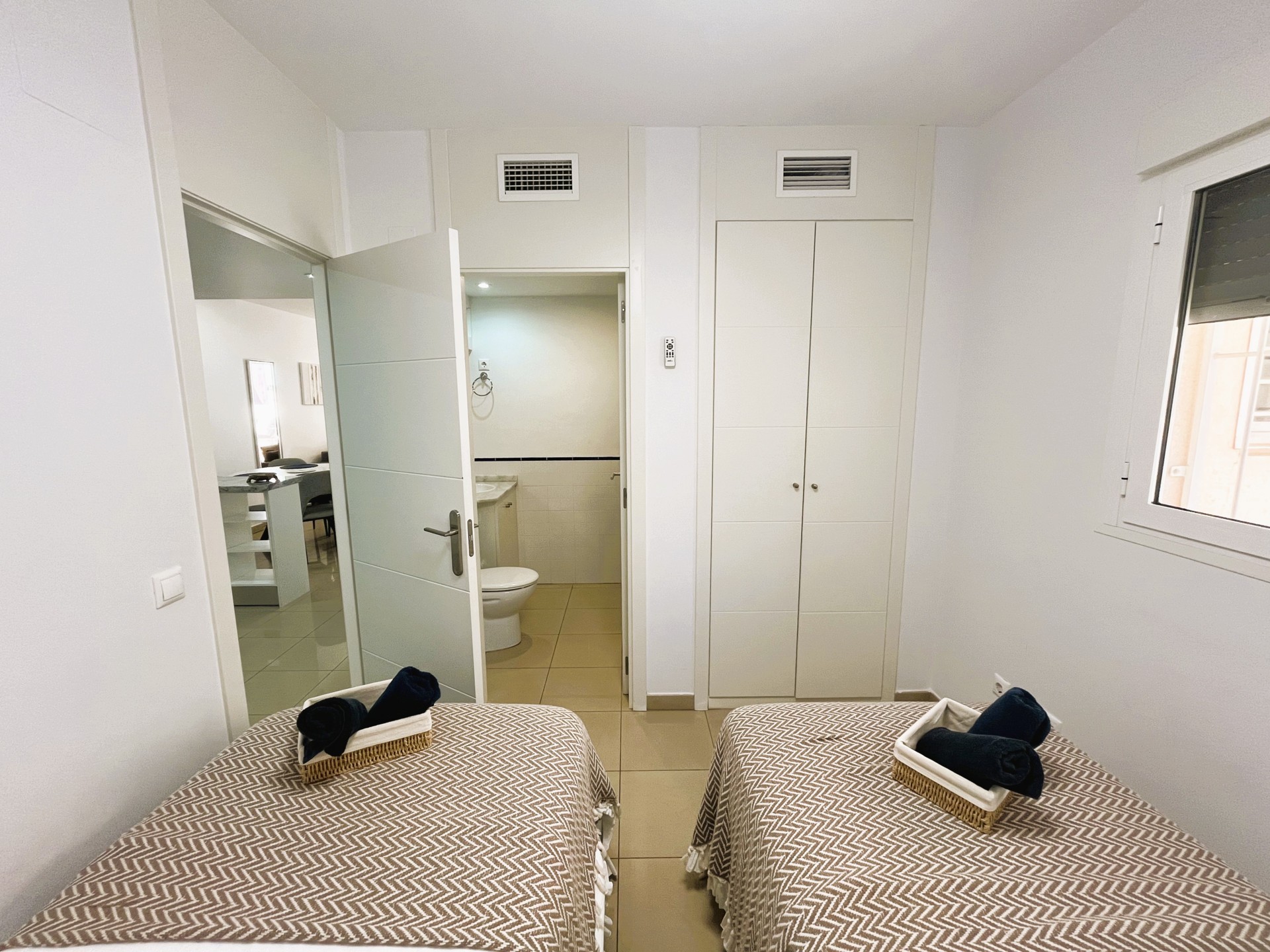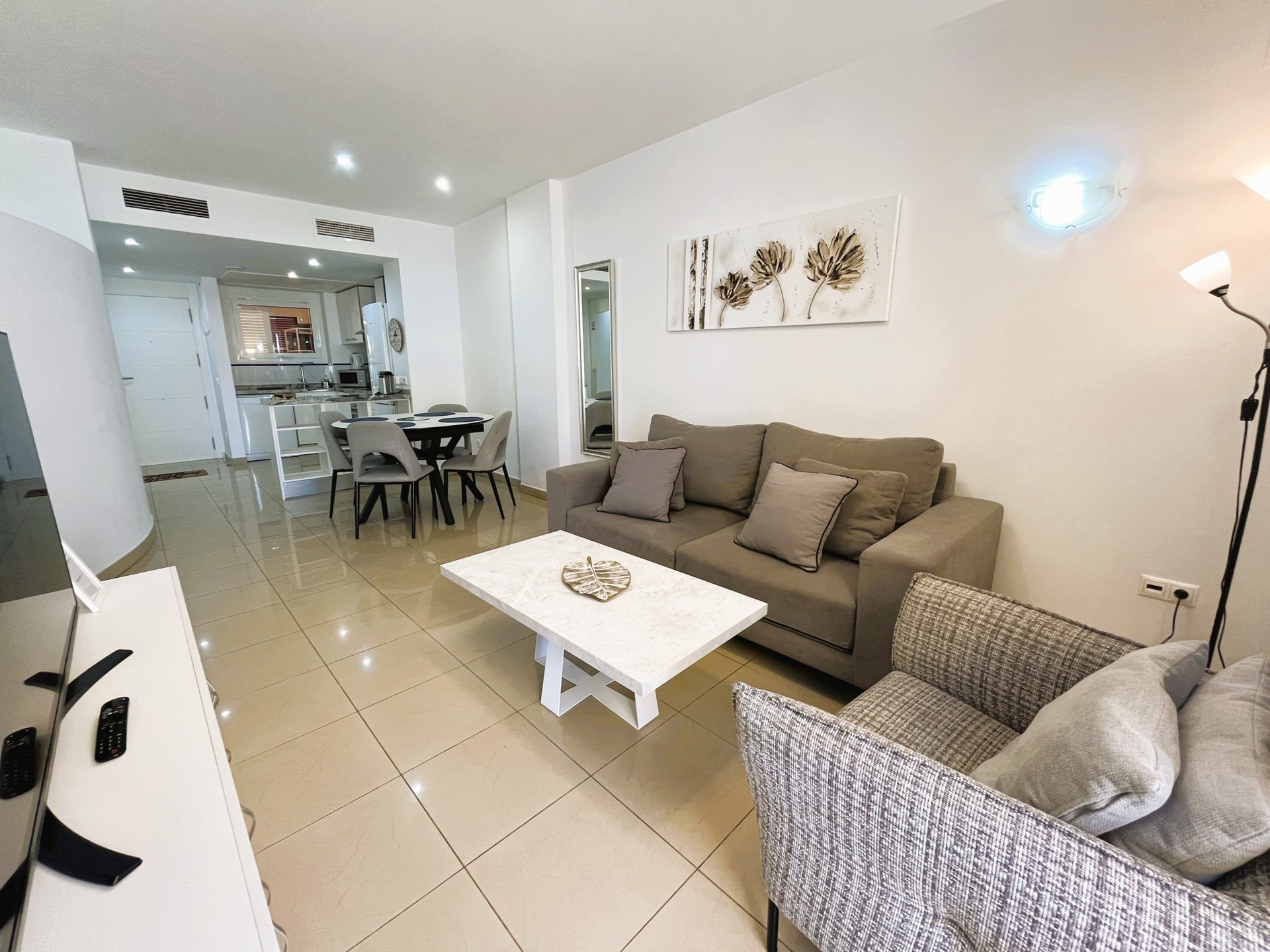 Fantastic apartment available for rent in one of the most beautiful areas of Orihuela Costa. The property is located in a gated community with a wonderful communal pool surrounded by green areas that invite relaxation. This charming home combines a cozy atmosphere with a modern style, perfect for fully enjoying coastal life. It features a spacious and bright living-dining room with direct access to a generous terrace, ideal for relaxing outdoors with a good book. The modern, fully equipped open-plan kitchen blends seamlessly into the space. The apartment includes two bedrooms with built-in wardrobes, two full bathrooms, and a practical laundry area. It comes with its own parking space and ducted air conditioning. It is situated in a quiet and well-connected area, close to all essential services such as supermarkets, restaurants, and shopping centers, and just minutes away from the best beaches on the coast. This apartment cannot be booked for fewer than 11 nights. It qualifies as a “mid-term stay” in accordance with Decree Law 9/2024 of the Valencian Community Government..