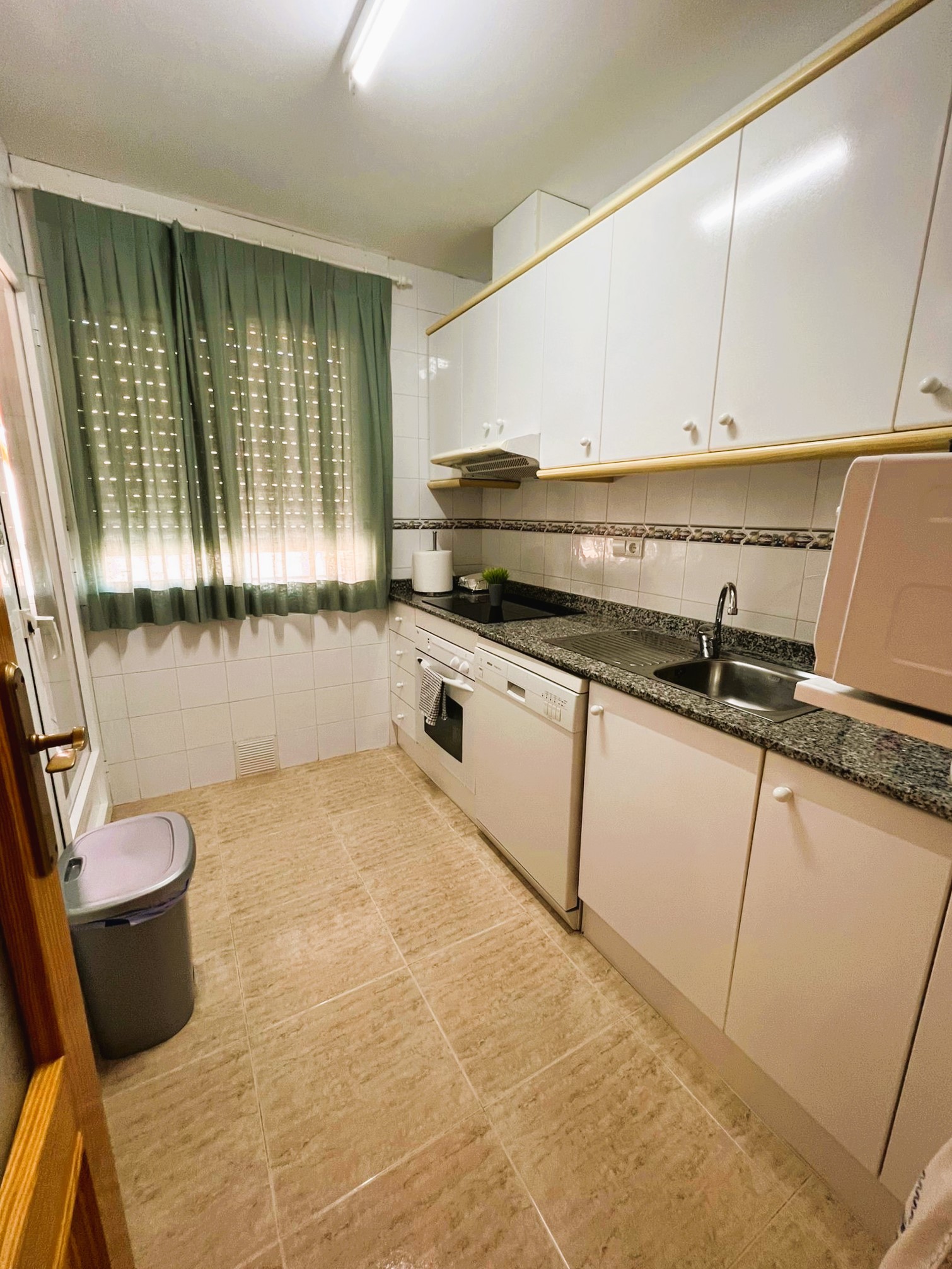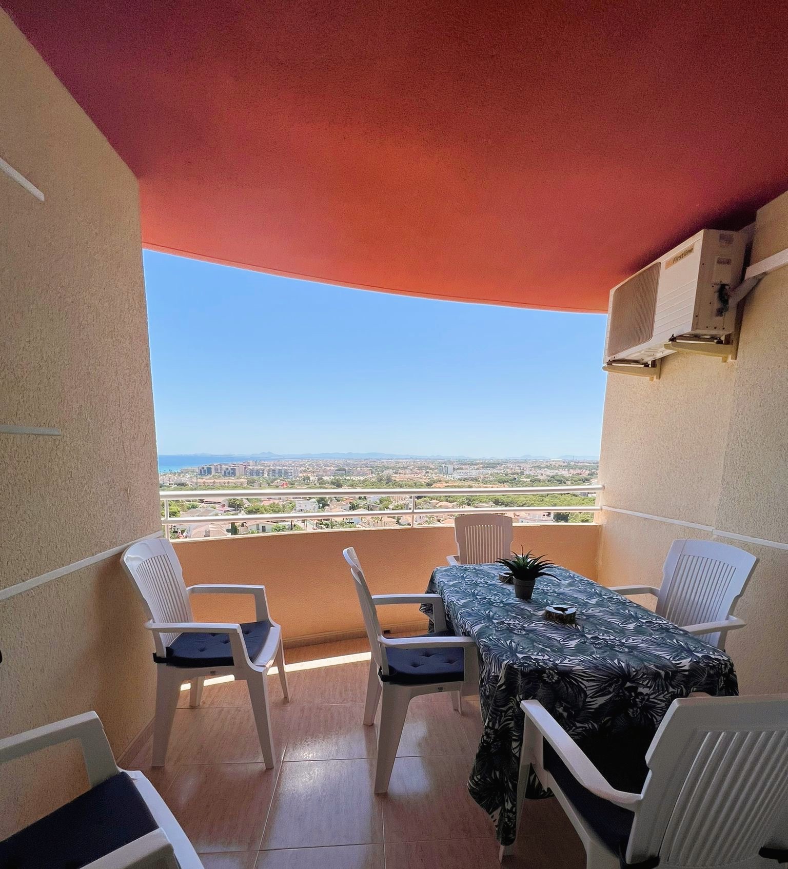 On the Cristinas Residential there is a wonderful flat for sale in Dehesa de Campoamor. The apartment has two bedrooms, a bathroom, a kitchen, a storage, an ample and illuminated living/dining room, and a terrace. In addition the flat has a parking place and community swimming pool. With beautiful sea views, this apartment becomes the ideal place to enjoy your vacation. This apartment cannot be booked for less than 11 nights. It is a mid-term stay in accordance with Decree Law 9/2024 of the government of the Comunidad Valenciana..