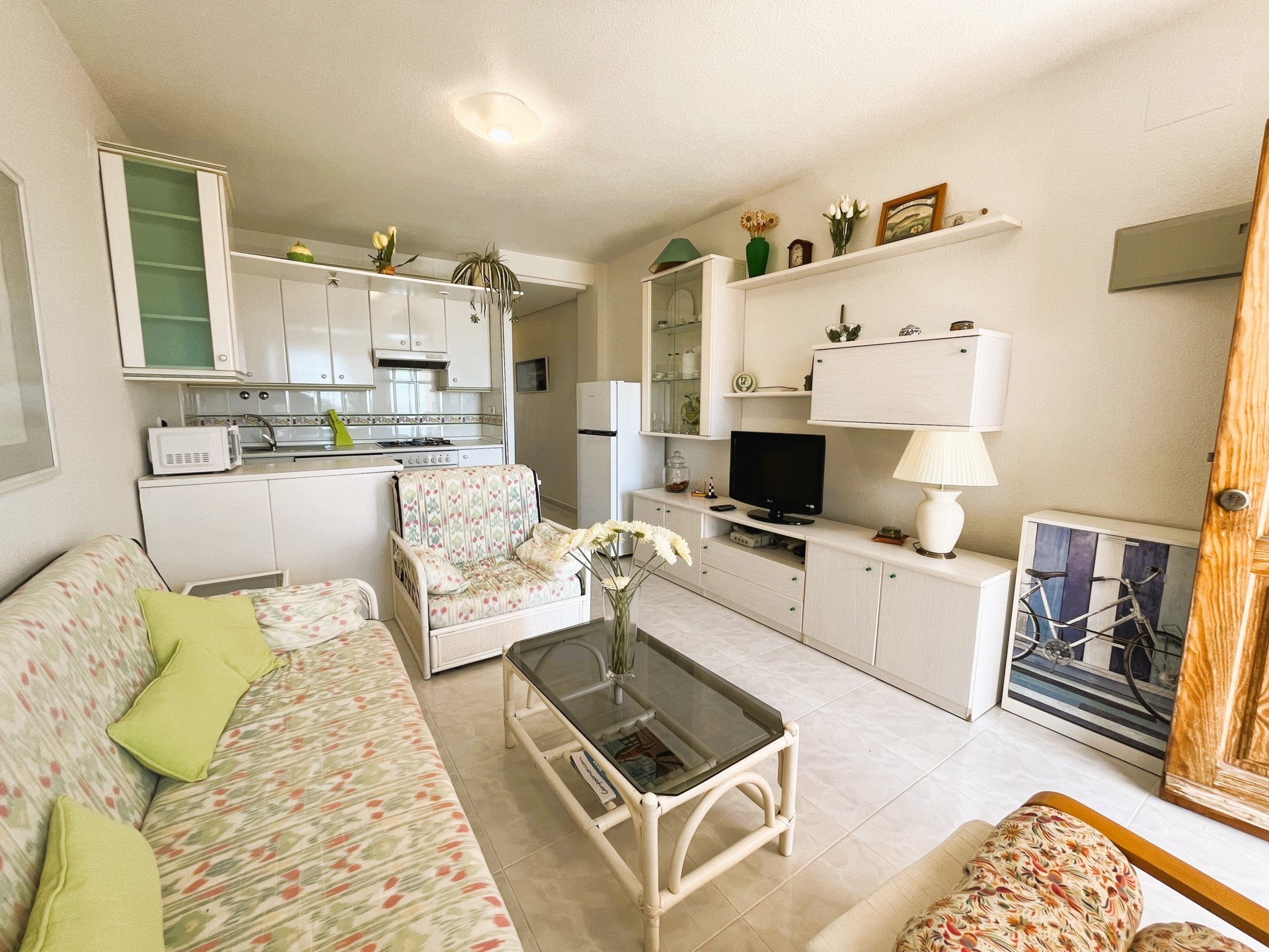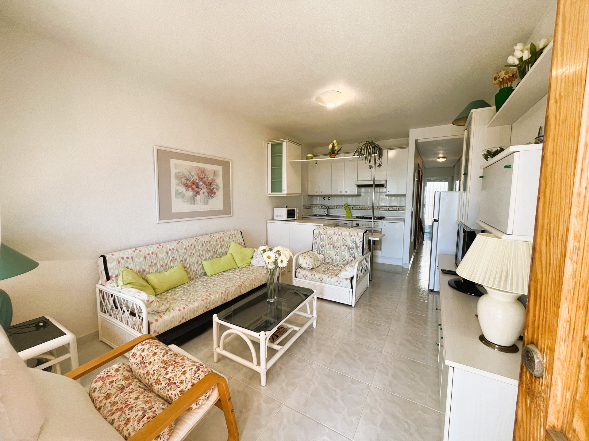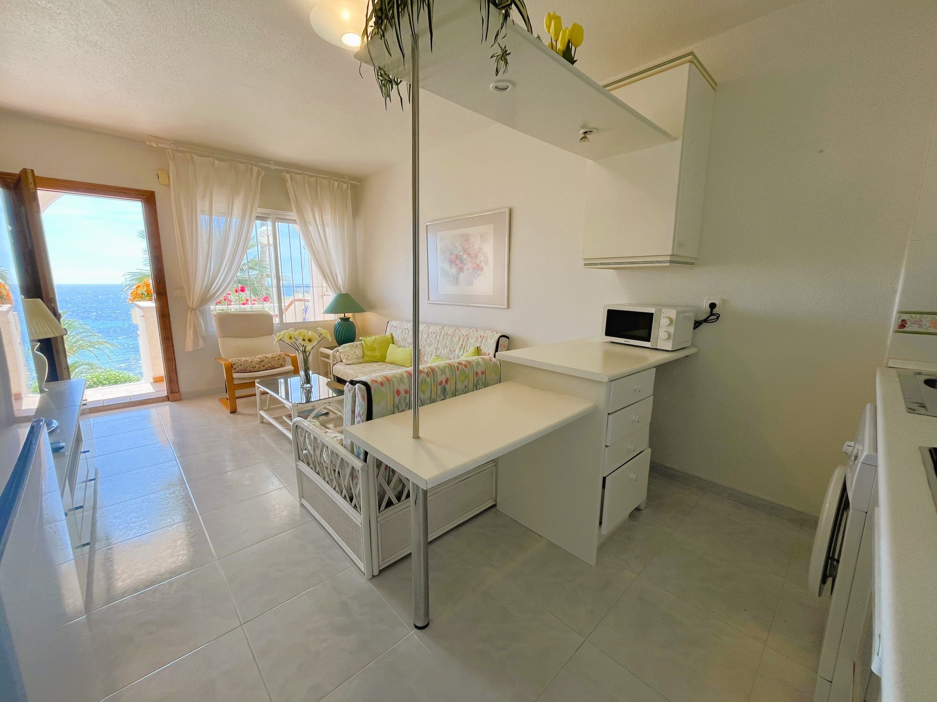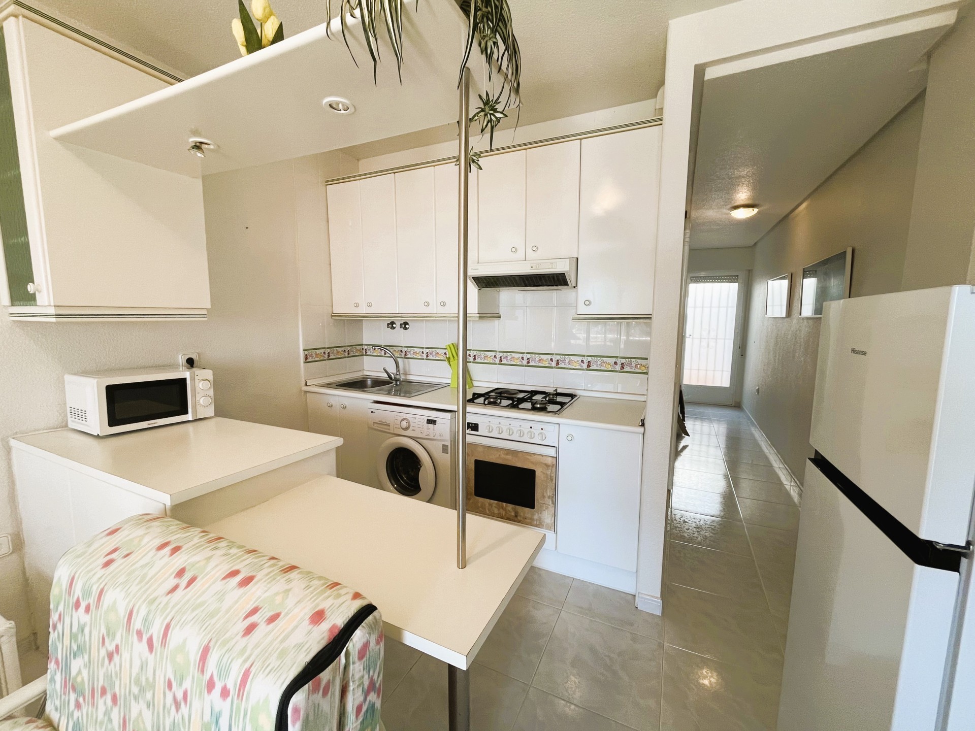 Extraordinary Apartment in Aguamarina – Dehesa de Campoamor, with Sea Views and Direct Beach Access This charming apartment is located in one of the most sought-after areas of Dehesa de Campoamor, offering direct access from the residential complex to the beach and all the amenities for an unforgettable holiday. The property features a stunning front terrace with sea views, perfect for relaxing outdoors. Inside, you’ll find a cozy living area integrated with a functional open-plan kitchen, a full bathroom with a bathtub, and a spacious bedroom with a double bed. At the end of the hallway, there is access to a large rear terrace, ideal for added privacy, which also includes a laundry area. The complex offers a communal swimming pool and a peaceful environment, perfect for unwinding by the sea. Minimum stay: 11 nights. This property is offered as a mid-term rental in accordance with Decree Law 9/2024 of the Valencian Government. Perfect for those looking to enjoy the Mediterranean with comfort, tranquility, and a prime location..