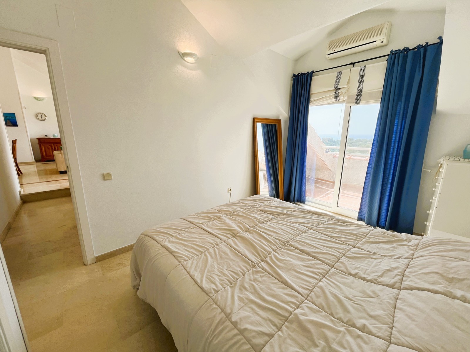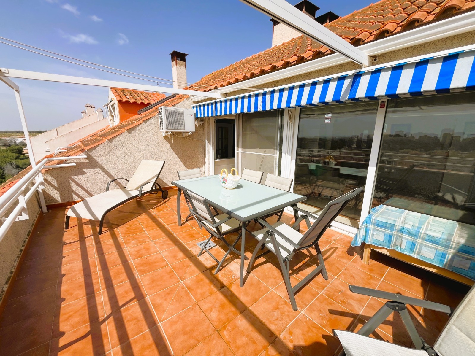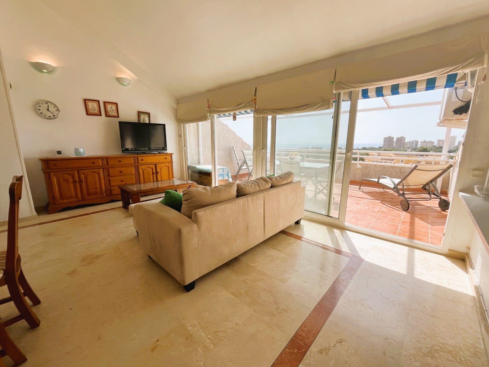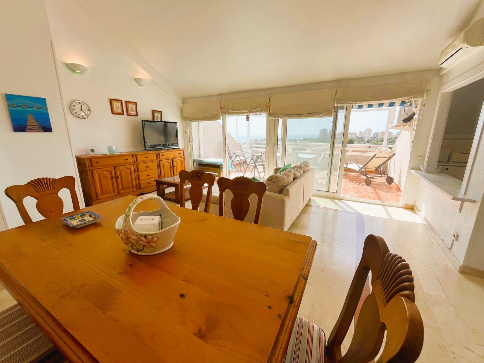 Spectacular penthouse in Dehesa de Campoamor with stunning views of the Mediterranean Sea. The property features a fantastic terrace, ideal for enjoying charming breakfasts while watching the sunrise. The living-dining room is very spacious and bright, with direct access to a fully equipped independent kitchen. The master bedroom includes air conditioning, a built-in wardrobe, and access to a private terrace with views. In addition, the property offers two more bedrooms, all equipped with air conditioning and built-in wardrobes. There are a total of 2 bathrooms. The property also includes a private parking space. The residential complex offers excellent communal areas, including one of the most beautiful swimming pools in Campoamor and a tennis court. Located close to all amenities: bars, restaurants, supermarkets, and some of the best beaches in the area. Minimum stay of 11 nights. Mid-term rental in accordance with Decree Law 9/2024 of the Government of the Valencian Community. .