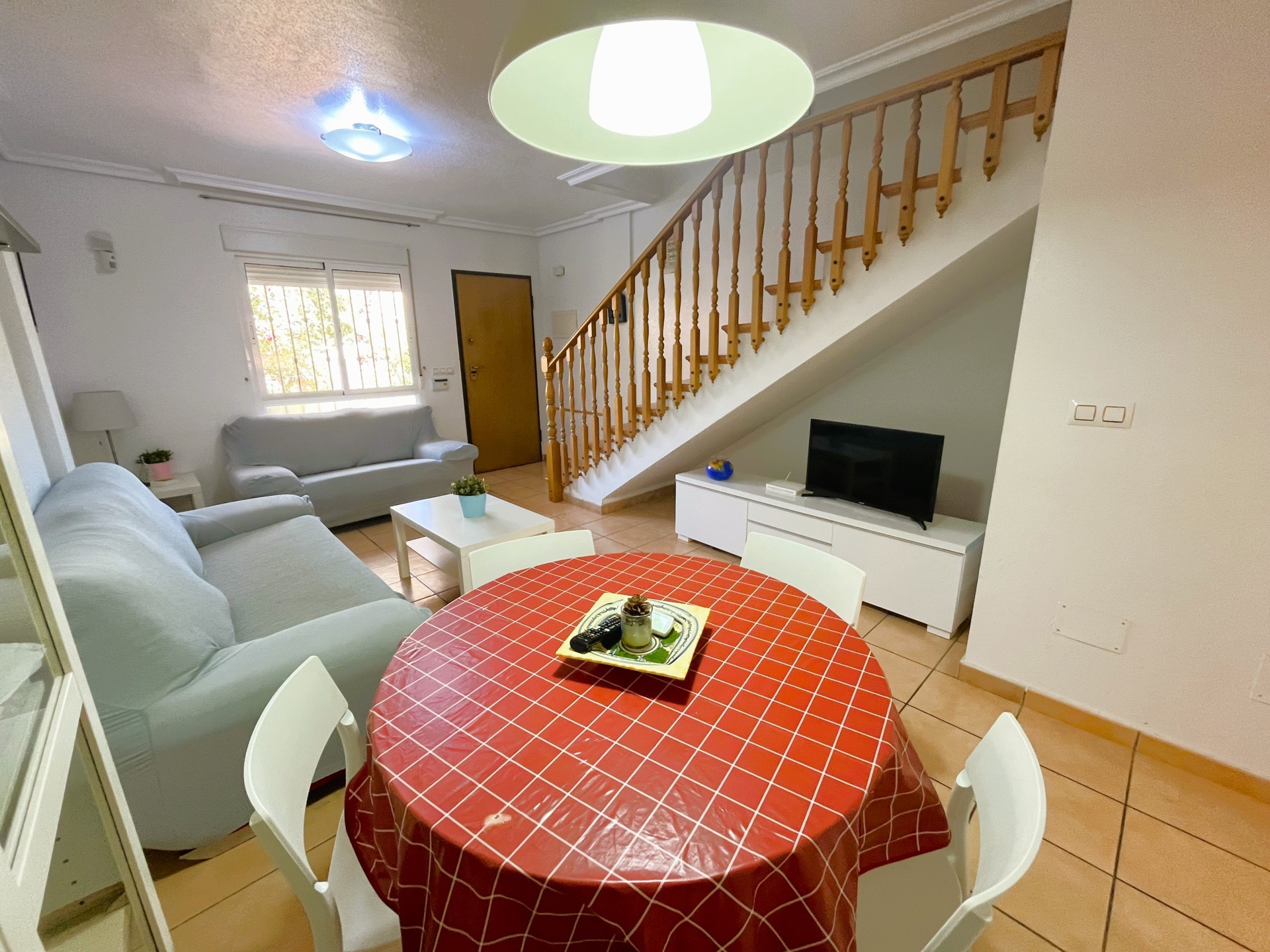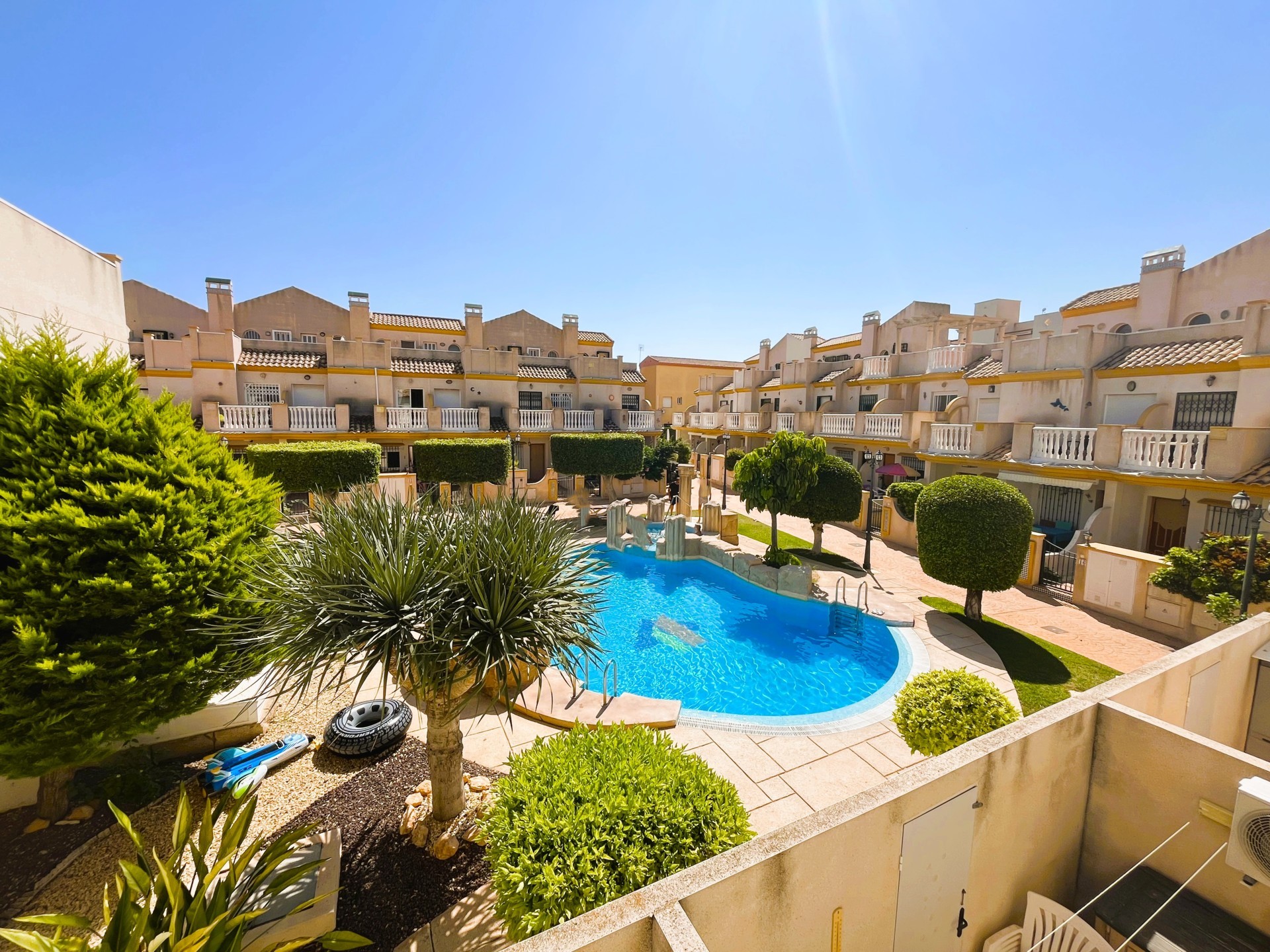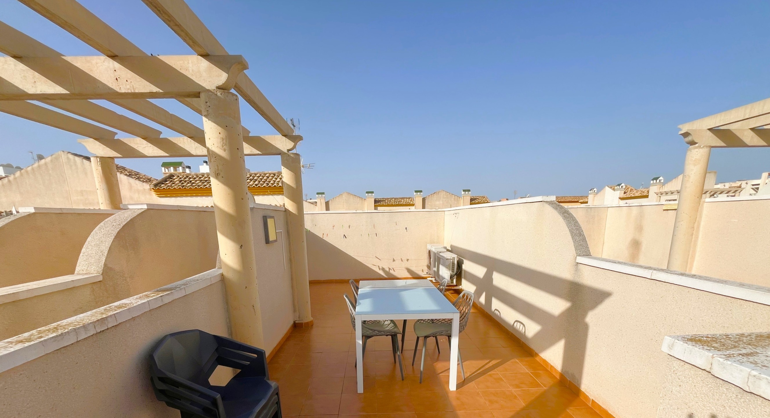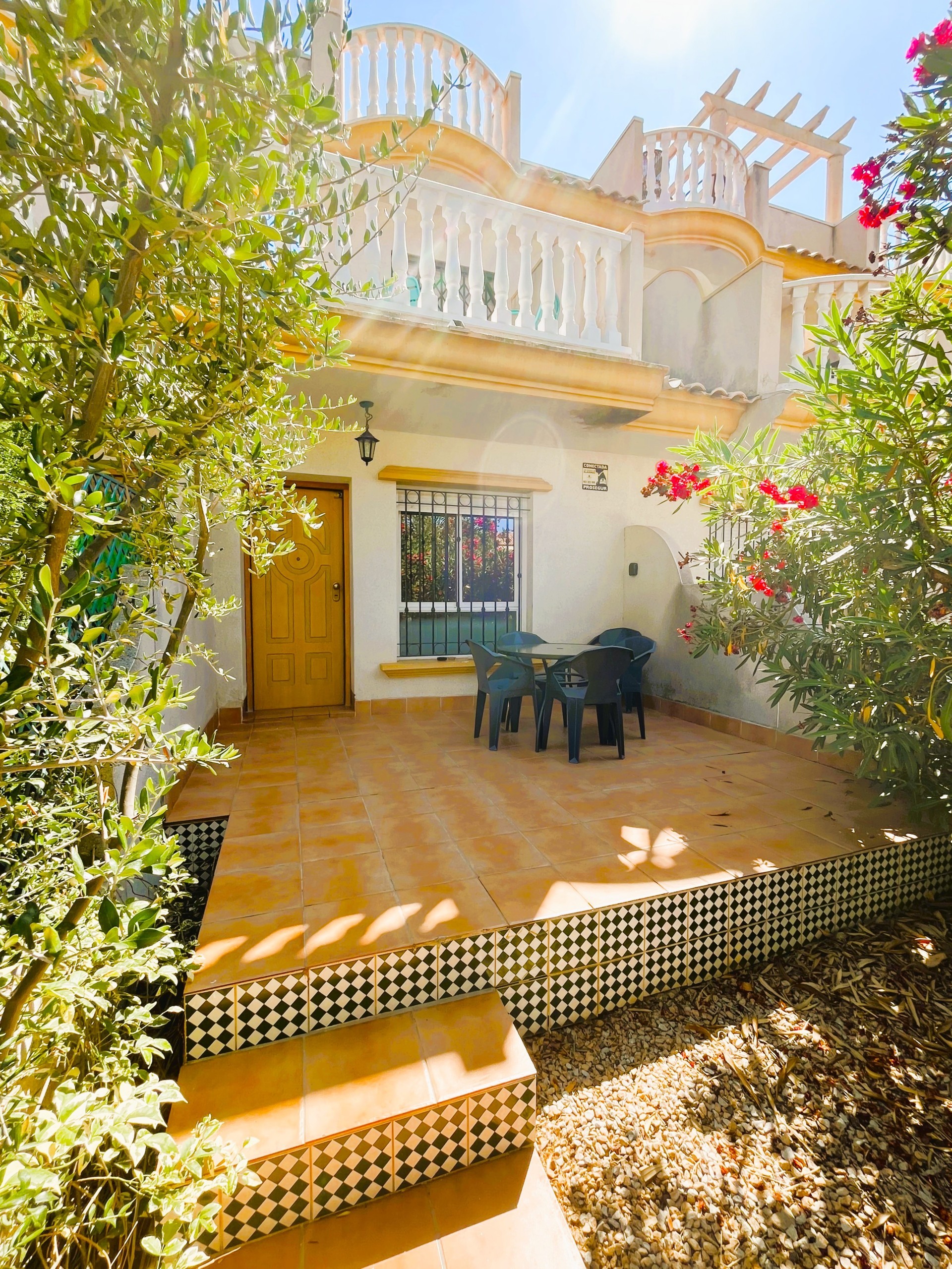 Fantastic 3-Bedroom Duplex Just 450 Meters from the Beach – Available from September to June This charming duplex offers the perfect combination of comfort, space, and an unbeatable location — ideal for those looking to enjoy the peaceful coastal lifestyle with all essential services nearby. At the entrance, you’ll find a lovely front patio, perfect for relaxing outdoors with a good book or a cup of coffee. Inside, the ground floor features a spacious and bright living- dining area with air conditioning, connected to a fully equipped, light-filled kitchen and a convenient laundry area. This floor also includes a bedroom and a full bathroom, offering added comfort and flexibility. Upstairs, the master bedroom opens onto a private terrace and has direct access to a large solarium — an ideal spot to sunbathe or unwind. You’ll also find a second bedroom and another full bathroom on this level. All bedrooms are equipped with ceiling fans to ensure a cool and comfortable stay throughout the season. The property includes access to a communal swimming pool and a private parking space. It is located just steps away from supermarkets, restaurants, bars, and some of the best beaches in the area..