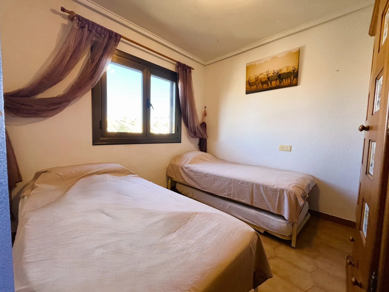 Fantastic duplex, perfect for your vacation, located just 350 meters from the beach in a quiet residential complex. On the ground floor, you’ll enjoy a bright and cozy living room with a fireplace, and a spacious, fully equipped kitchen open to the dining area, designed to make socializing and family time effortless. From this area, you can access the private patio, a pleasant outdoor space ideal for enjoying meals, relaxing, and spending quality time. Upstairs, you’ll find two bedrooms, both equipped with air conditioning, and two full bathrooms. From the balcony of the master bedroom, you can access a private solarium—perfect for sunbathing in peace, reading a book, or simply unwinding. The complex offers communal green areas, perfect for strolls and relaxation, as well as a fantastic shared swimming pool surrounded by gardens, where you can cool off and rest. There is also communal parking available. This accommodation is designed for those seeking comfort, tranquility, and proximity to the sea, with spaces perfect for enjoying time with family or friends. It is conveniently located near all amenities: bars, restaurants, a supermarket, and some of the best beaches in the area. Please note, this apartment cannot be booked for fewer than 11 nights, as it is considered a mid-term stay, in accordance with Decree Law 9/2024 of the Government of the Valencian Community..
