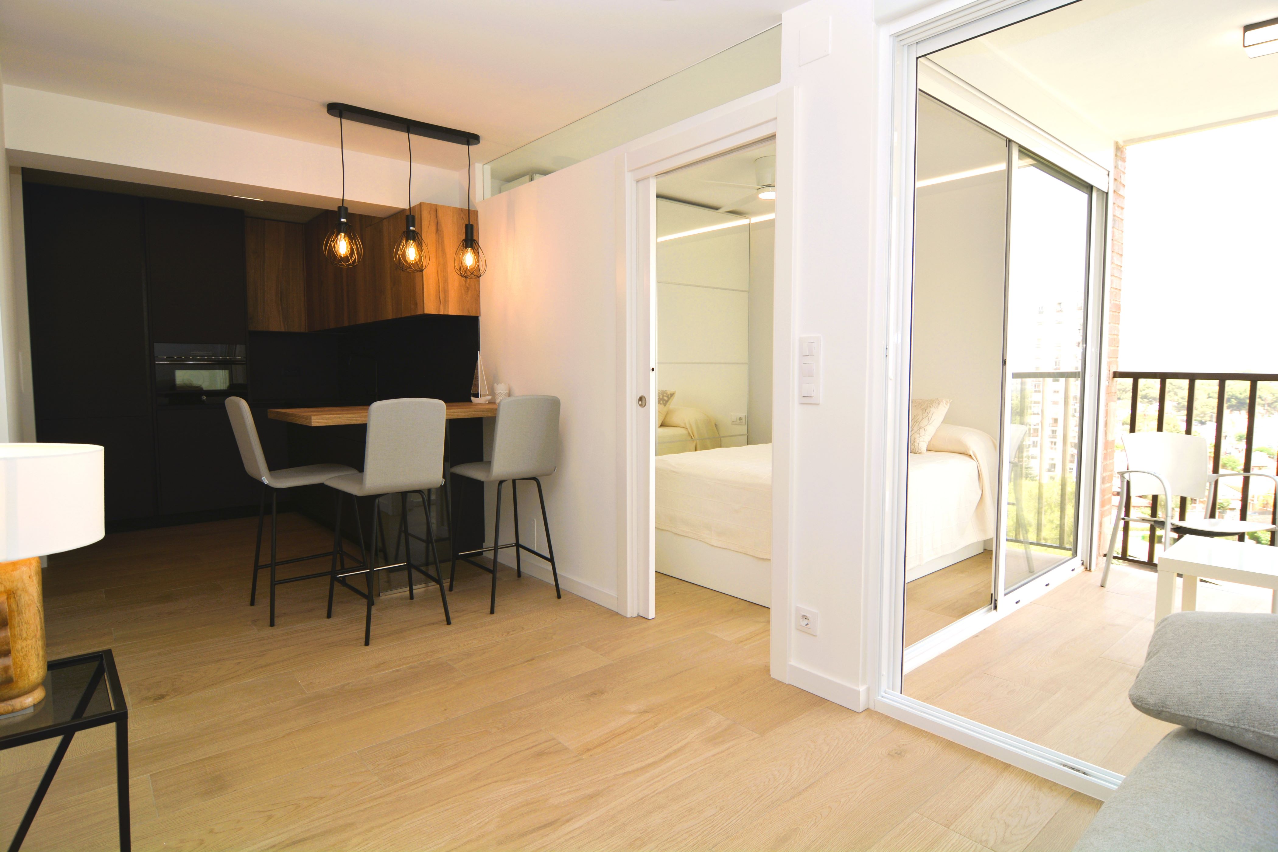 Fantastic studio with sea views completely renovated in the Center of Campoamor. It has a very bright living room with ceiling fan and access to the terrace. The kitchen is very well equipped, all the appliances are brand new, and it has a lot of storage space. The bedroom has a double bed with its ceiling fan, a closet and a large window that lets in plenty of natural light. The bathroom with shower. The house has a community parking area and is close to all services, bars, restaurants, supermarket, green areas and the best beaches in the area..