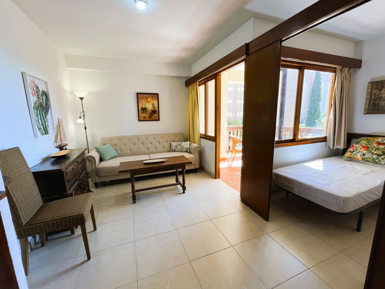 In the center of Campoamor, this studio apartment is ideally located. The property features 1 bedroom, 1 bathroom, an open-plan kitchen integrated into a bright living-dining area, and a charming terrace with sea views—perfect for relaxing and enjoying the Mediterranean climate. It is close to all amenities, including restaurants, bars, a supermarket, a children’s playground, a tennis club, and some of the best beaches in the area. A perfect home to enjoy a summer by the sea. This apartment cannot be booked for stays shorter than 11 nights. It is a mid-term rental in accordance with Decree Law 9/2024 of the Valencian Community government. .