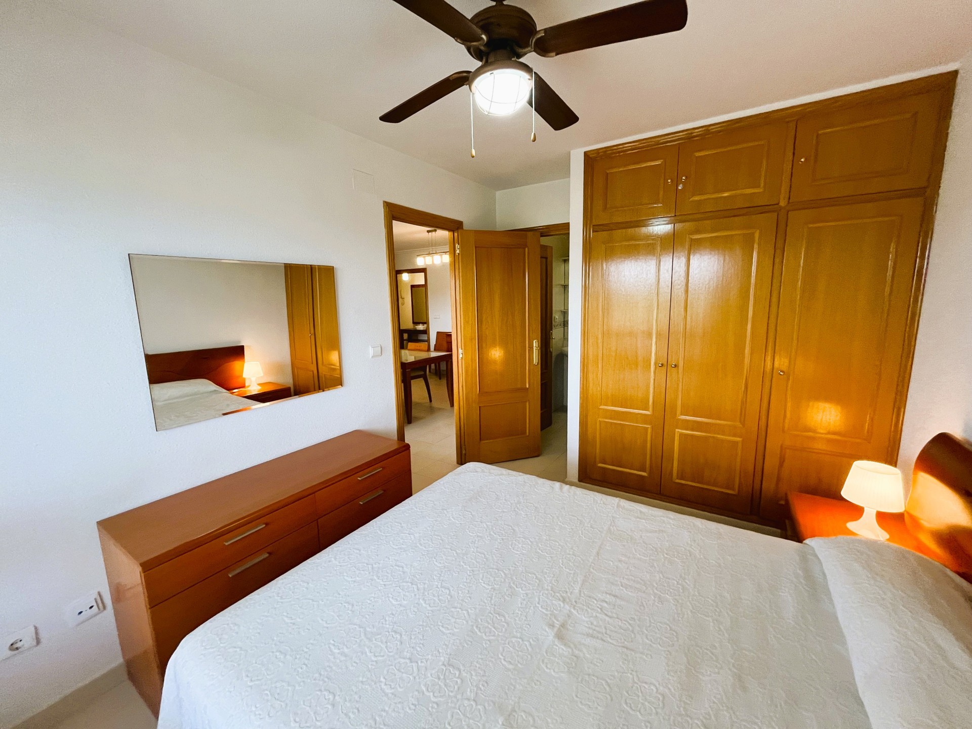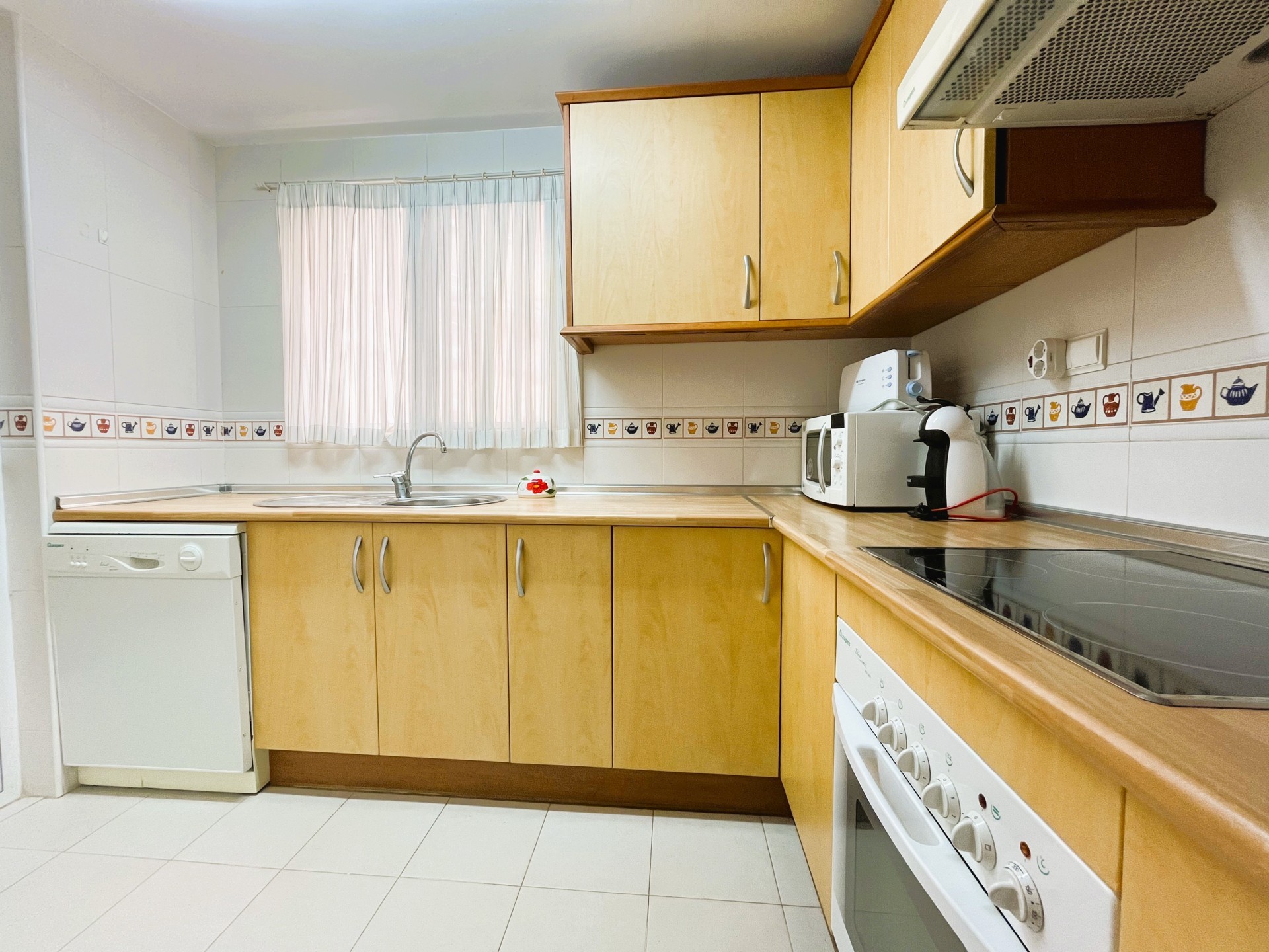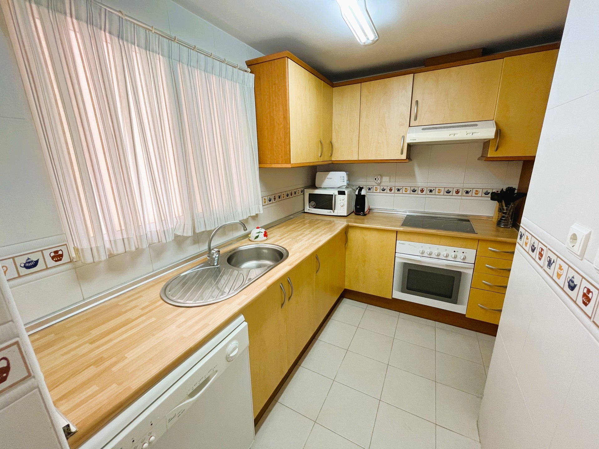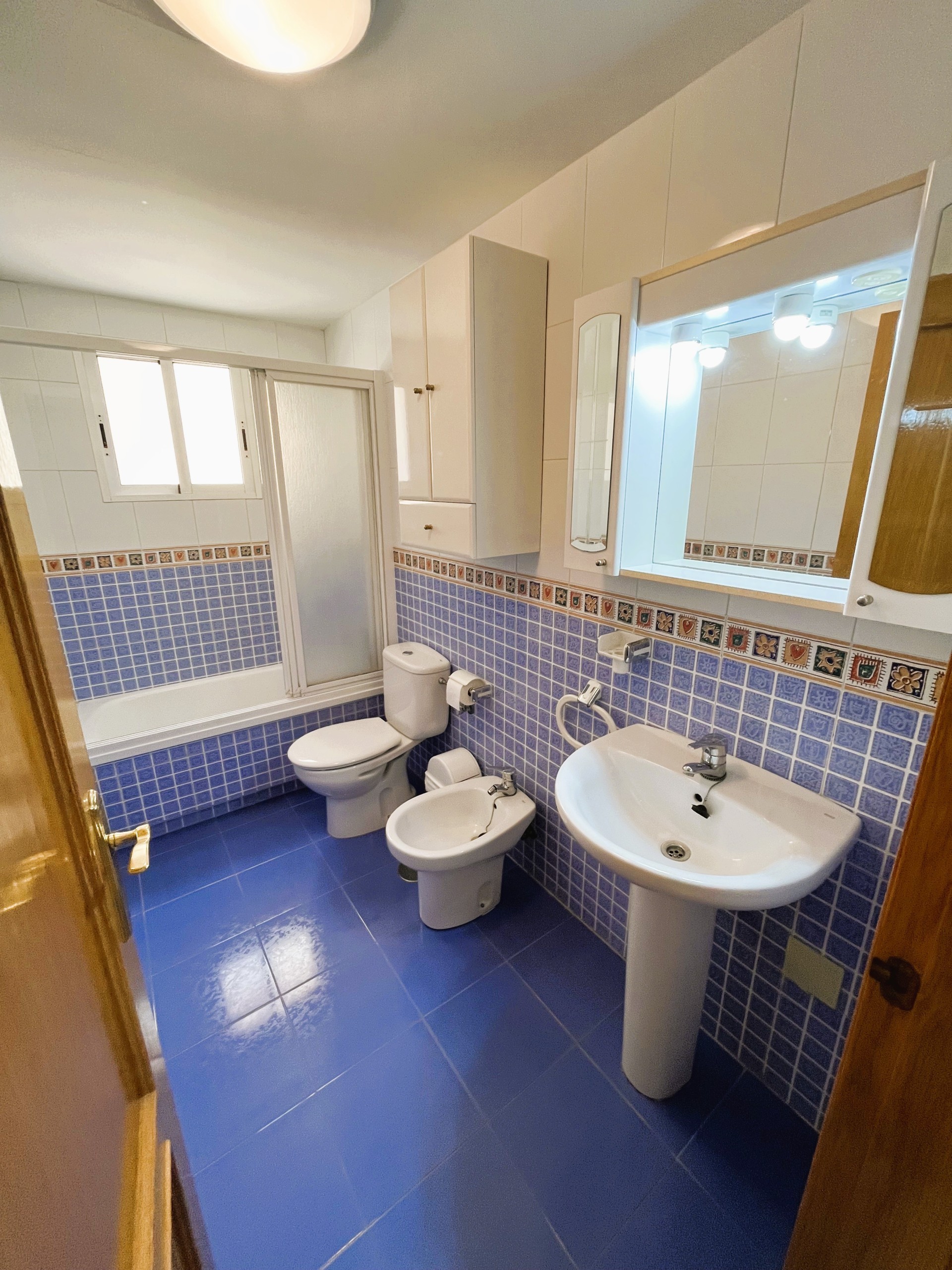 Incredible 3-bedroom apartment with sea views and only 50 meters from the beach. The house has a very bright living room with direct access to a large terrace. The kitchen is independent, very well equipped, with a dishwasher and a laundry area. It has 3 bedrooms and two bathrooms. The apartment has a garage space and access to a community pool. It is close to all services, supermarket, restaurants, bars and the best beaches in the area..