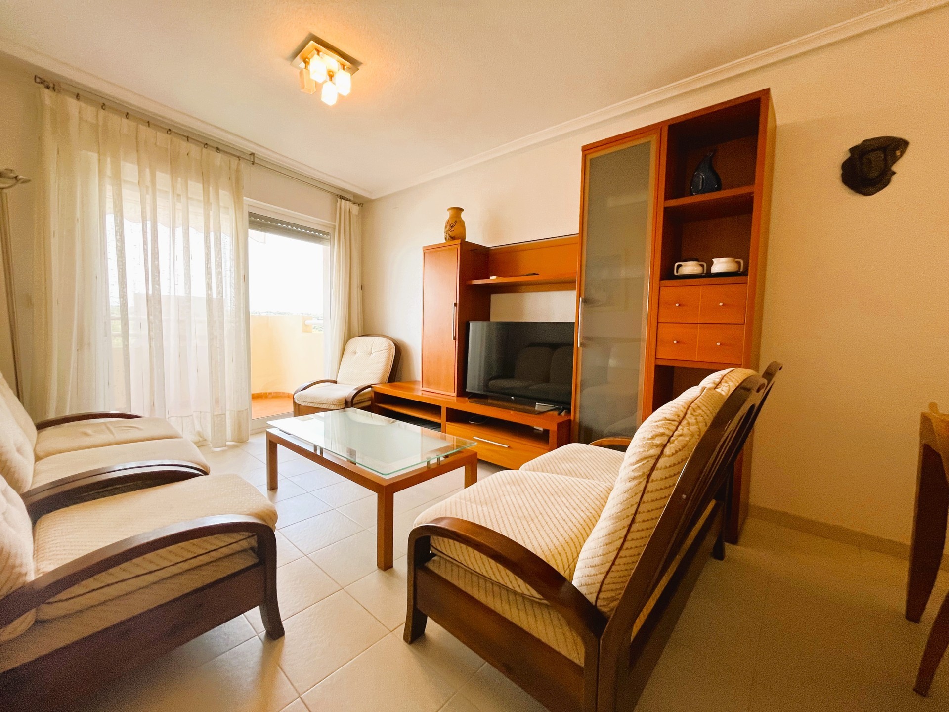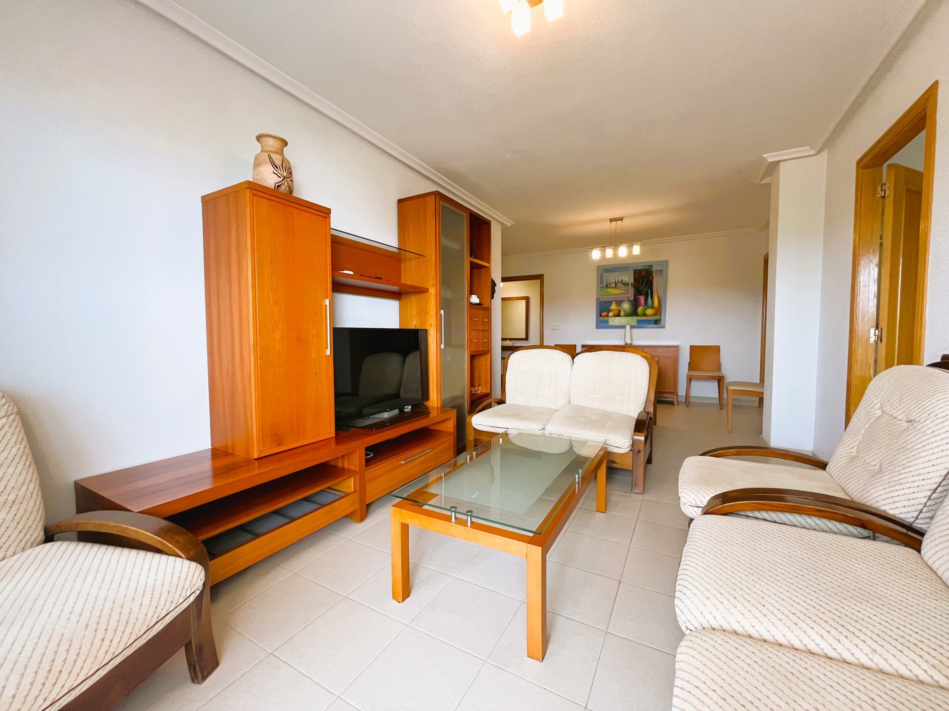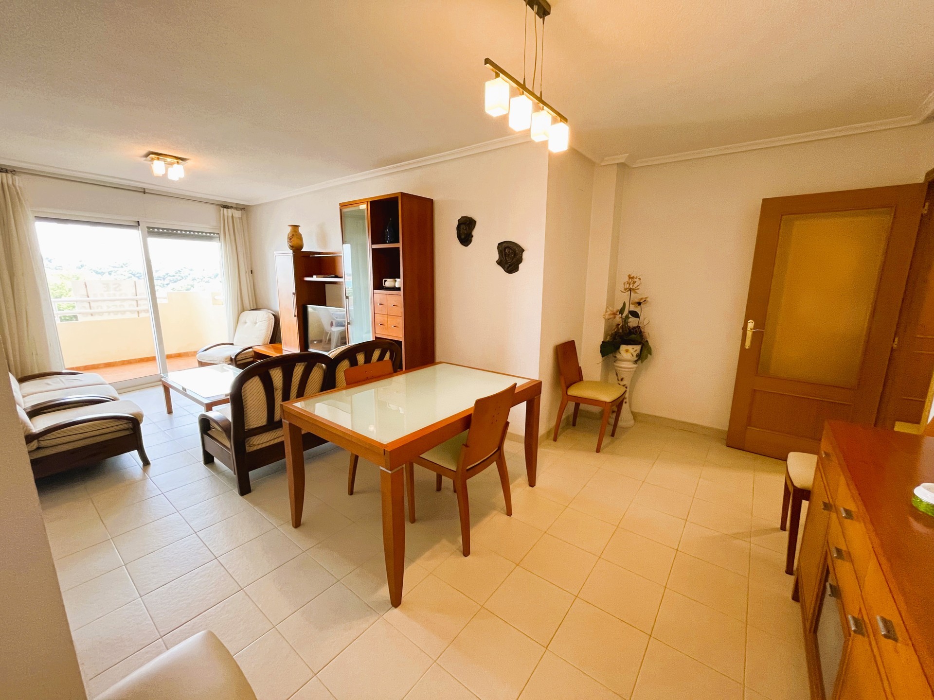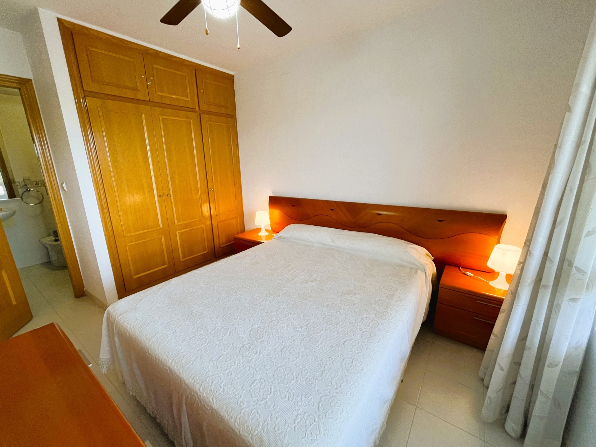 Incredible 3-bedroom apartment with sea views and only 50 meters from the beach. The house has a very bright living room with direct access to a large terrace. The kitchen is independent, very well equipped, with a dishwasher and a laundry area. It has 3 bedrooms and two bathrooms. The apartment has a garage space and access to a community pool. It is close to all services, supermarket, restaurants, bars and the best beaches in the area..