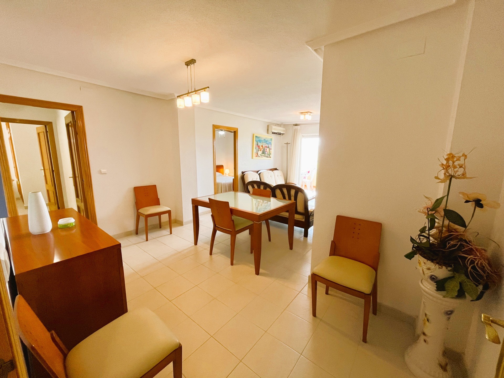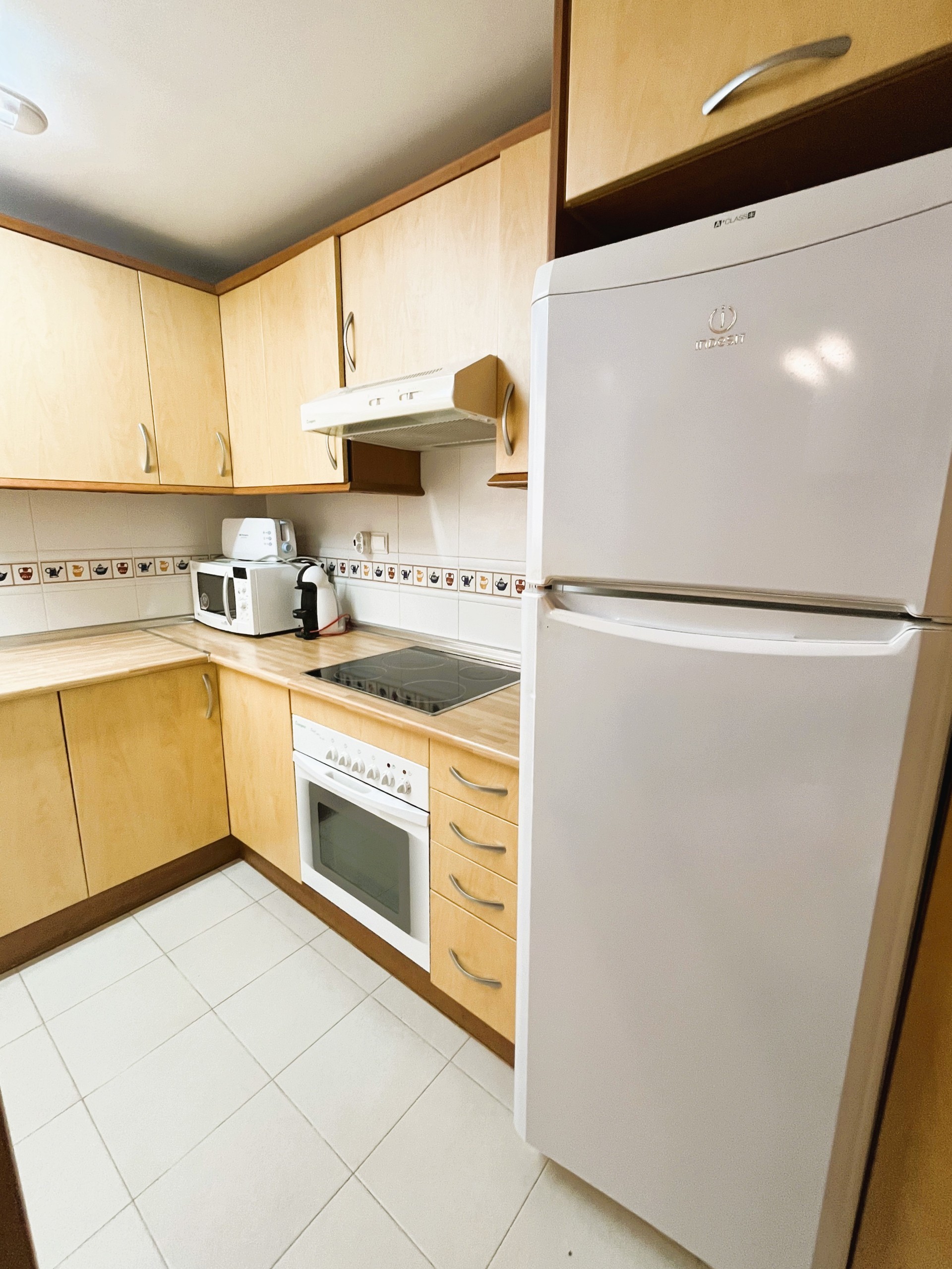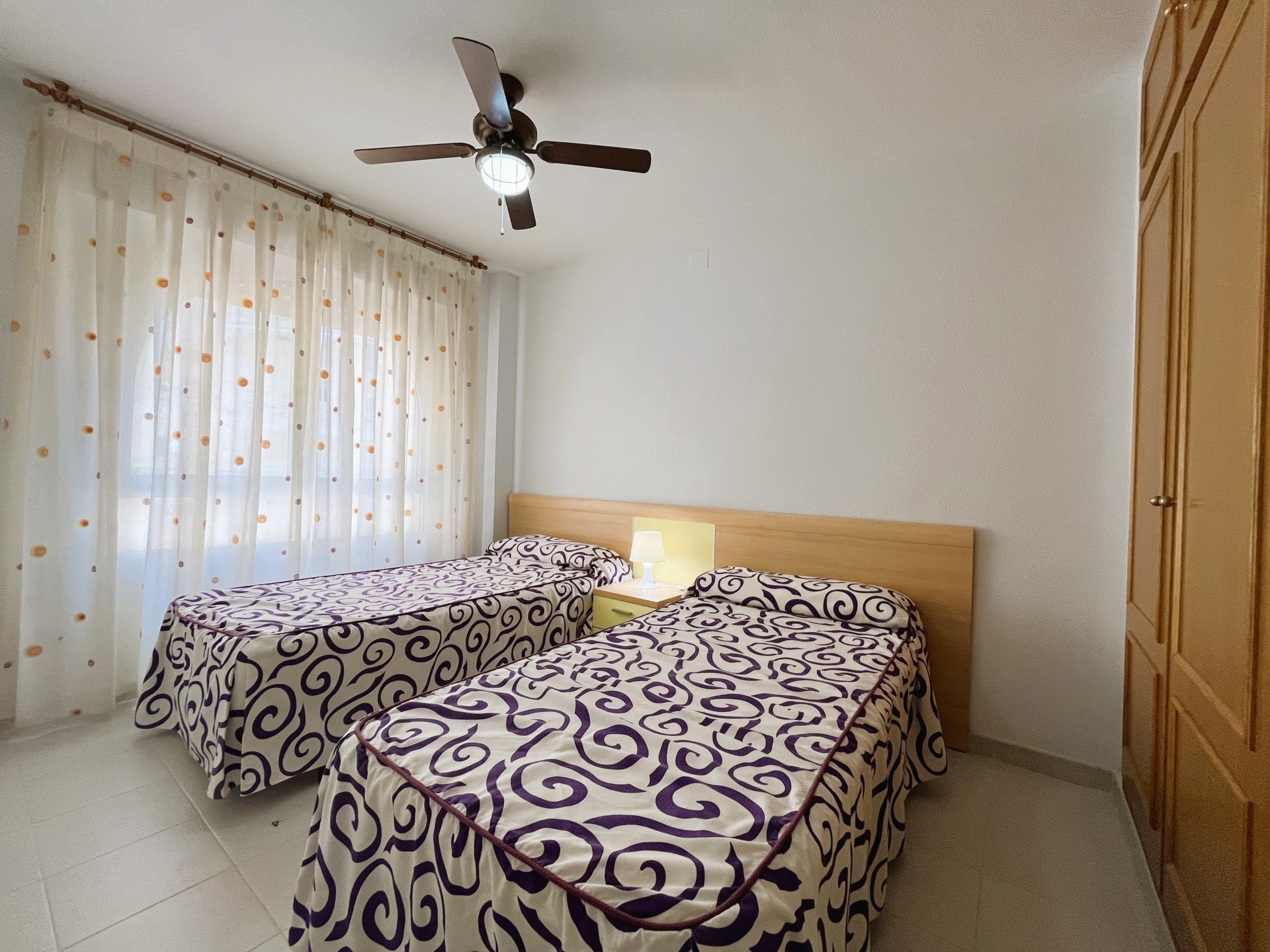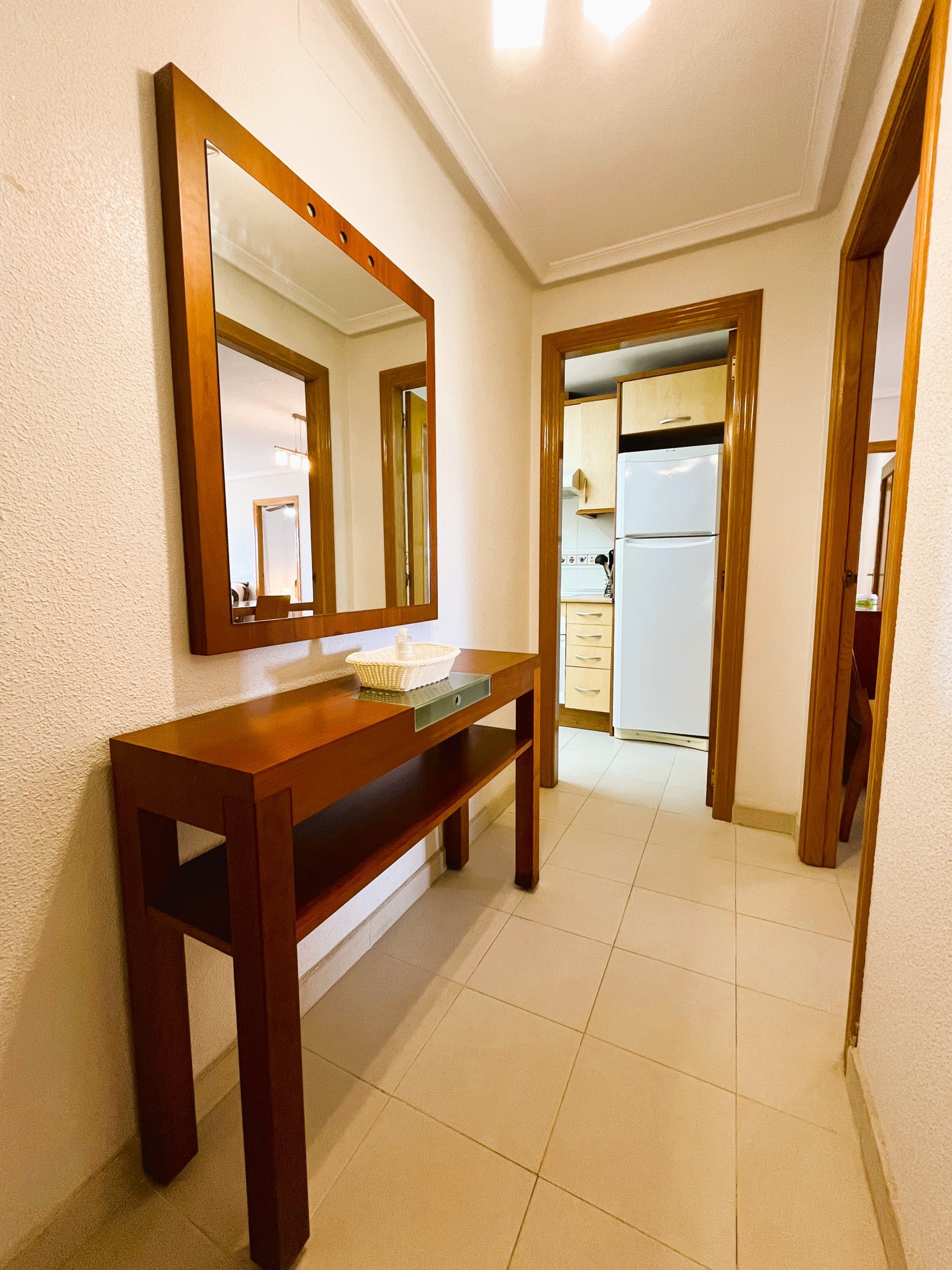 Incredible 3-bedroom apartment with sea views and only 50 meters from the beach. The house has a very bright living room with direct access to a large terrace. The kitchen is independent, very well equipped, with a dishwasher and a laundry area. It has 3 bedrooms and two bathrooms. The apartment has a garage space and access to a community pool. It is close to all services, supermarket, restaurants, bars and the best beaches in the area..
