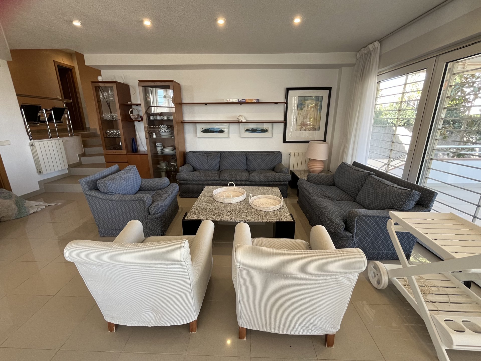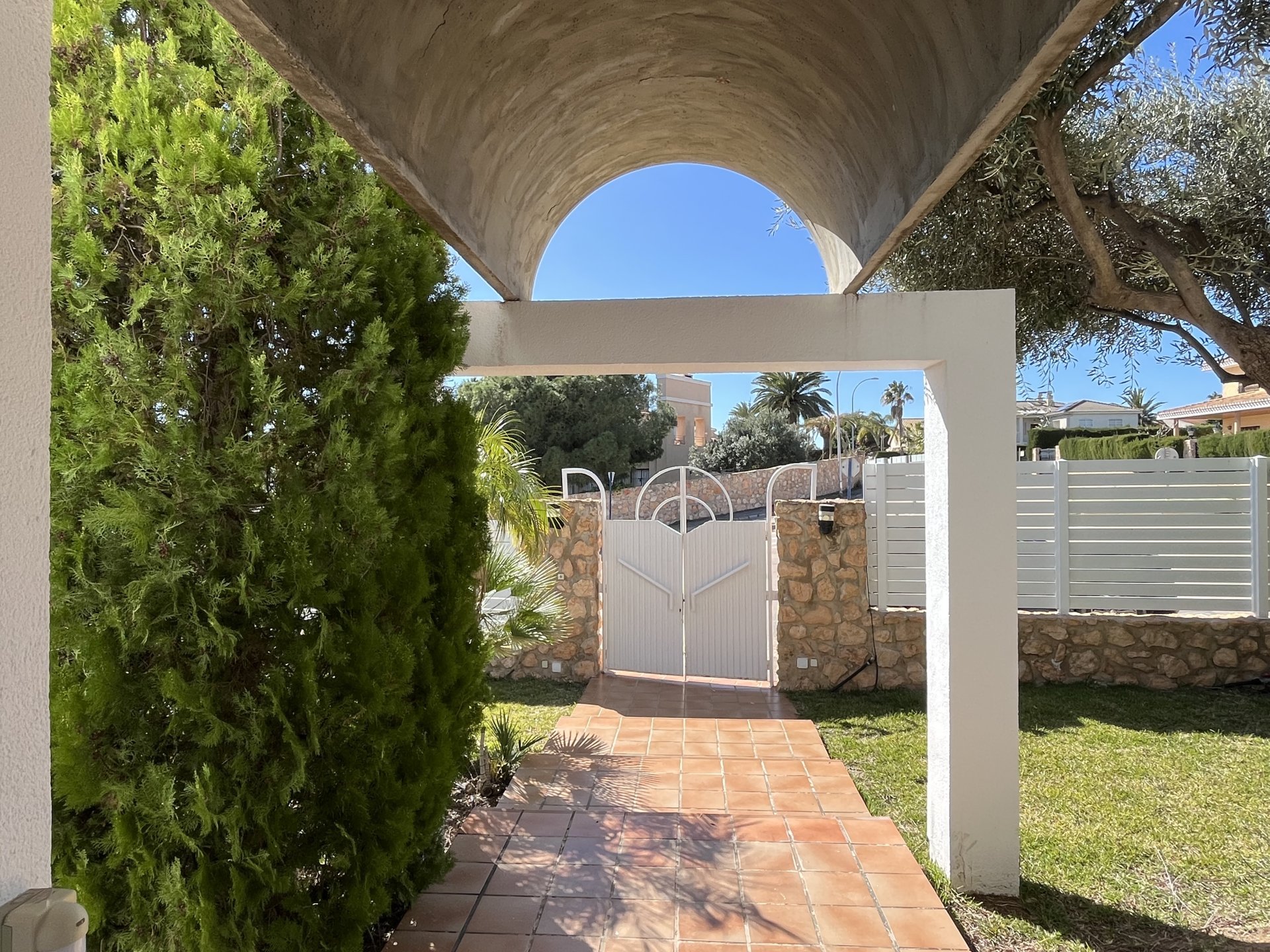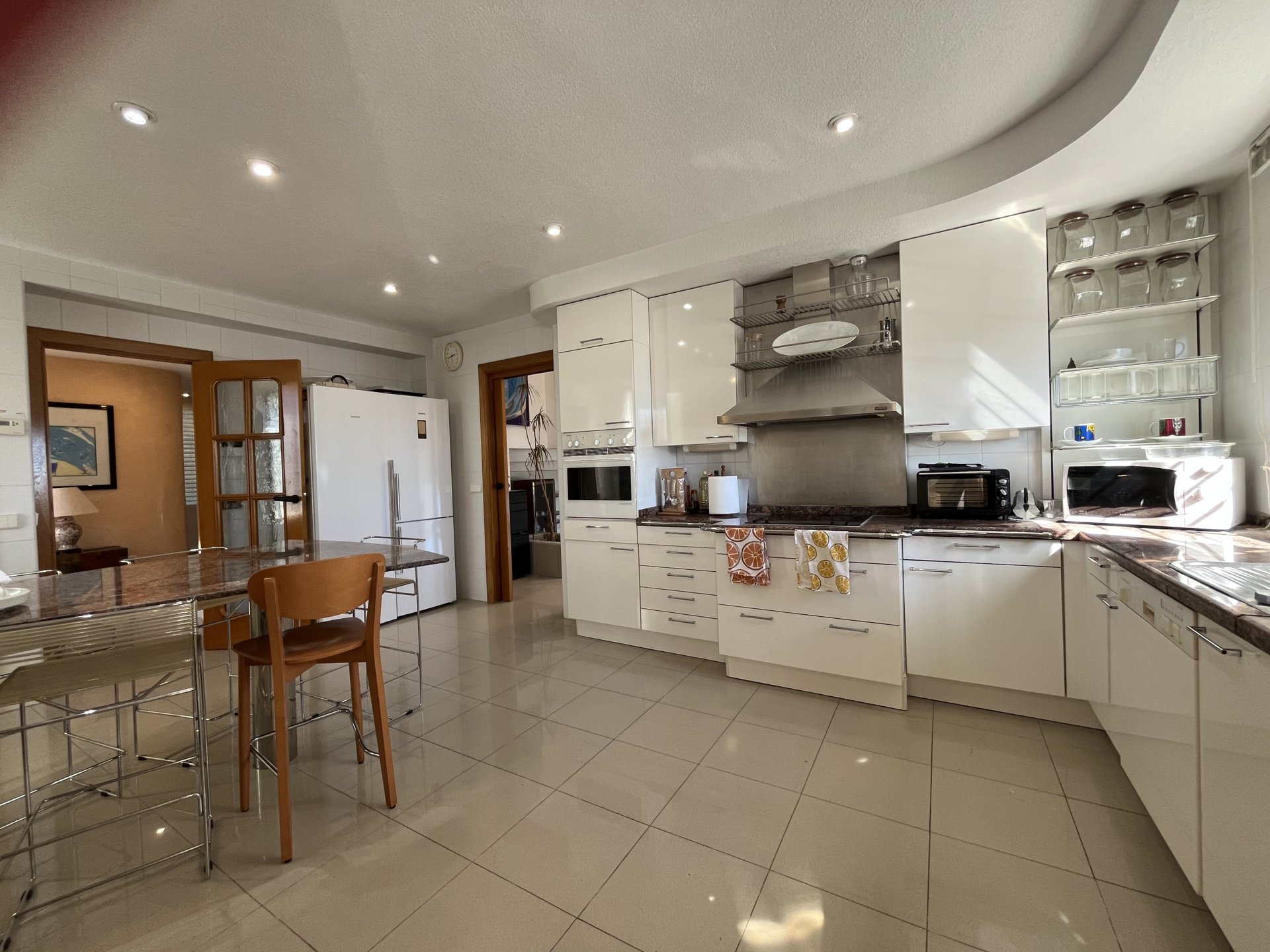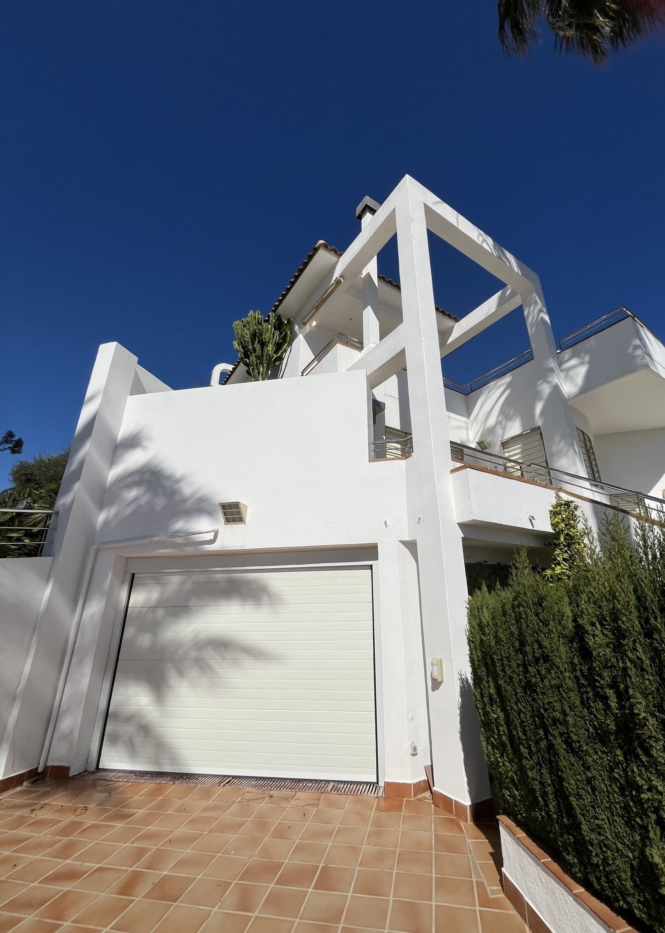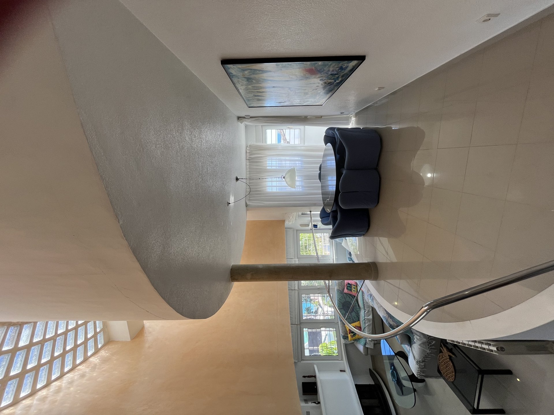 In a privileged spot overlooking to the sea, we find this villa with a unique design, created by architect Vicente Garaulet to resemble a ship’s sail. A spectacular design that can be appreciated in every corner of the house. This home is filled with light. It’s a dream come true. From its exterior, overflowing with vegetation, to its magical interior, where the interplay of heights, the influx of light, and the sea views leave you spellbound. We enter to the house into an entrance hall wherea ll the posible ways lead you to the kitchen, the living area, and the staircase to the bedrooms. It’s astonishing how comfort and convenience lie beneath the design, everything perfectly connected, making the most of the ideal space. The house’s location means that each room has a window with a view of either the blue of the sea or the green of the palm trees and surrounding vegetation. A perfect combination to feel relaxed wherever you look..