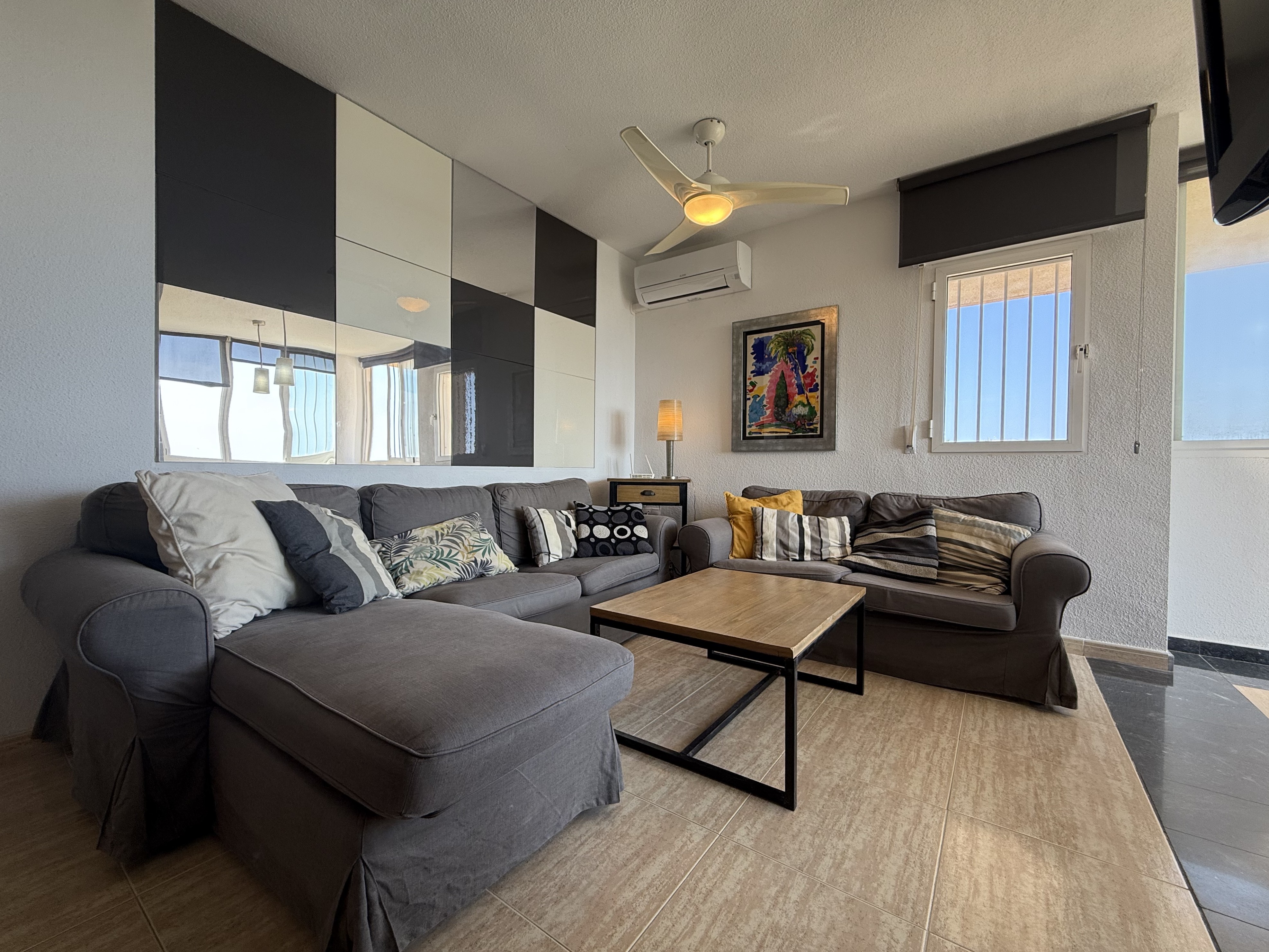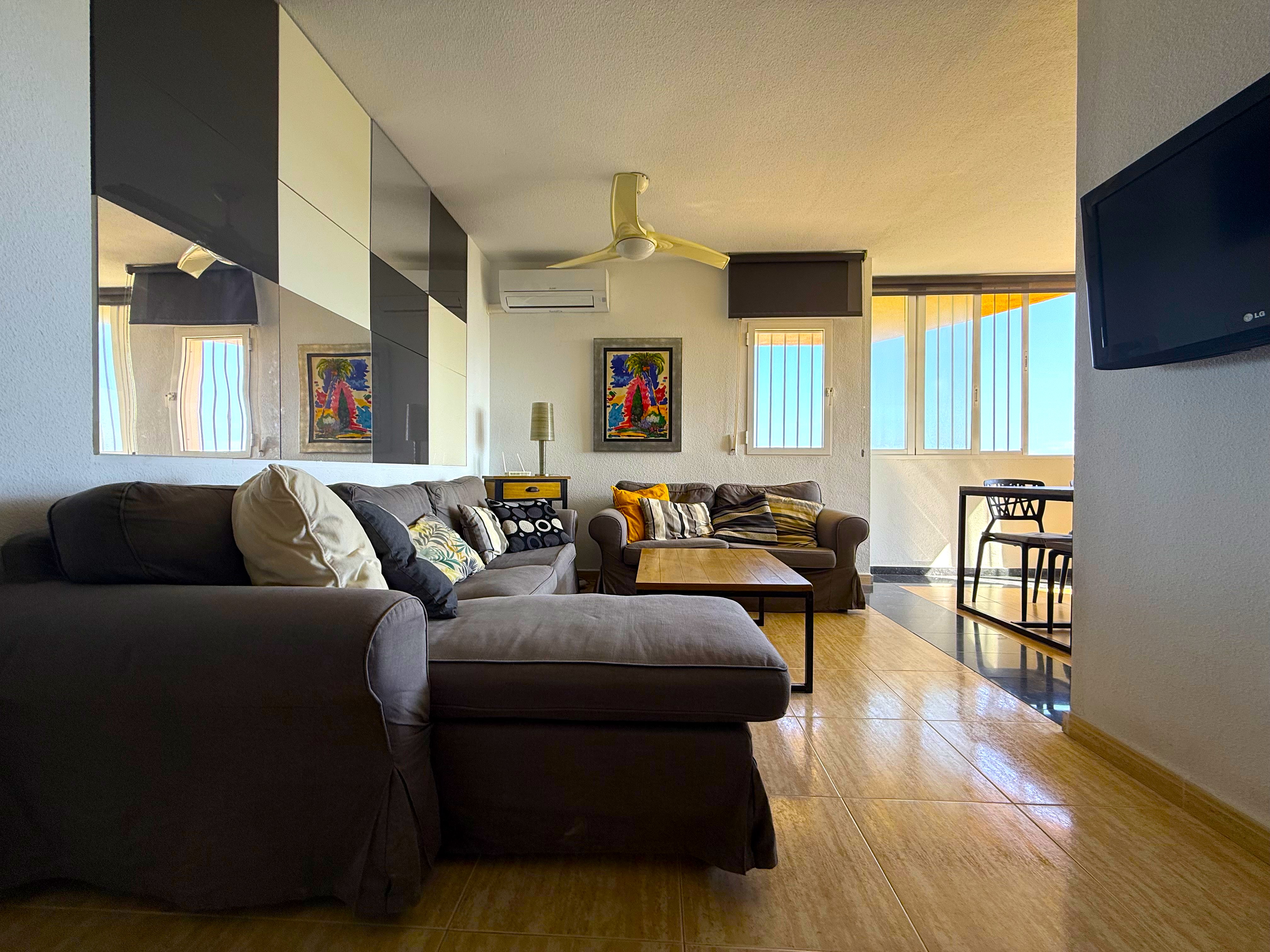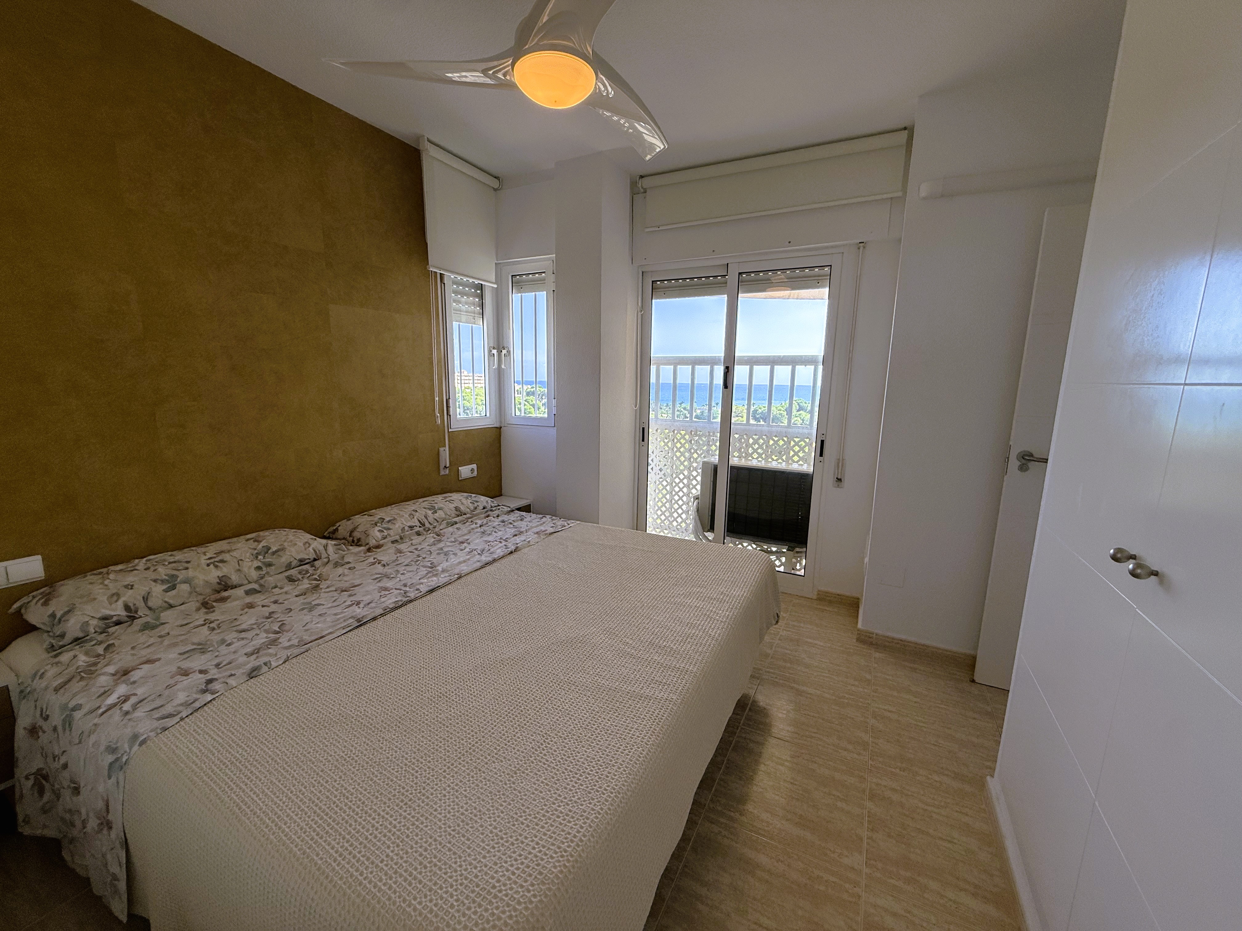 In the heart of the Pine area of Campoamor, we find this urbanization with a privileged location, surrounded by vegetation, large trees, and beautiful gardens. A charming setting where we find five buildings that have private pool, tennis courts, a children’s playground, etc. The apartment is in the fifth tower, a good high,making it a very cool home facing southeast and east. The house is also A beautiful, completely renovated home, with plenty of style and modernity, without sacrificing comfort. A beautiful home with 3 bedrooms and 2 bathrooms, the terrace area has been incorporated into the home with double glazing. It also has AACC and a private parking space..