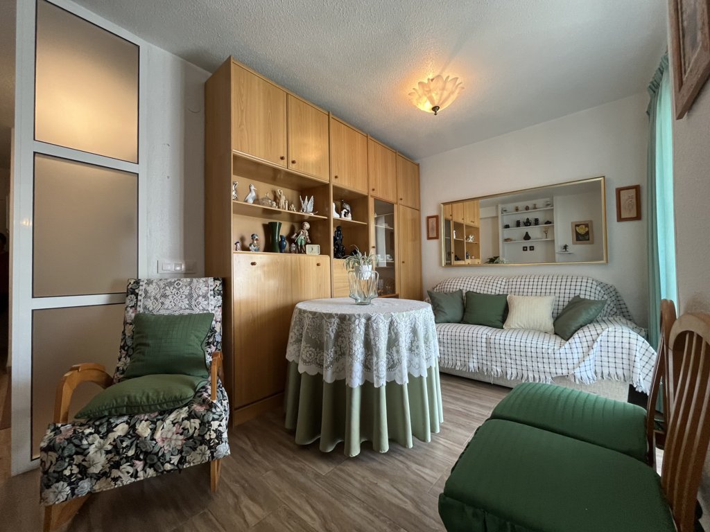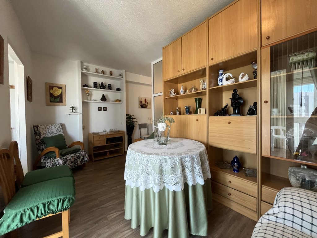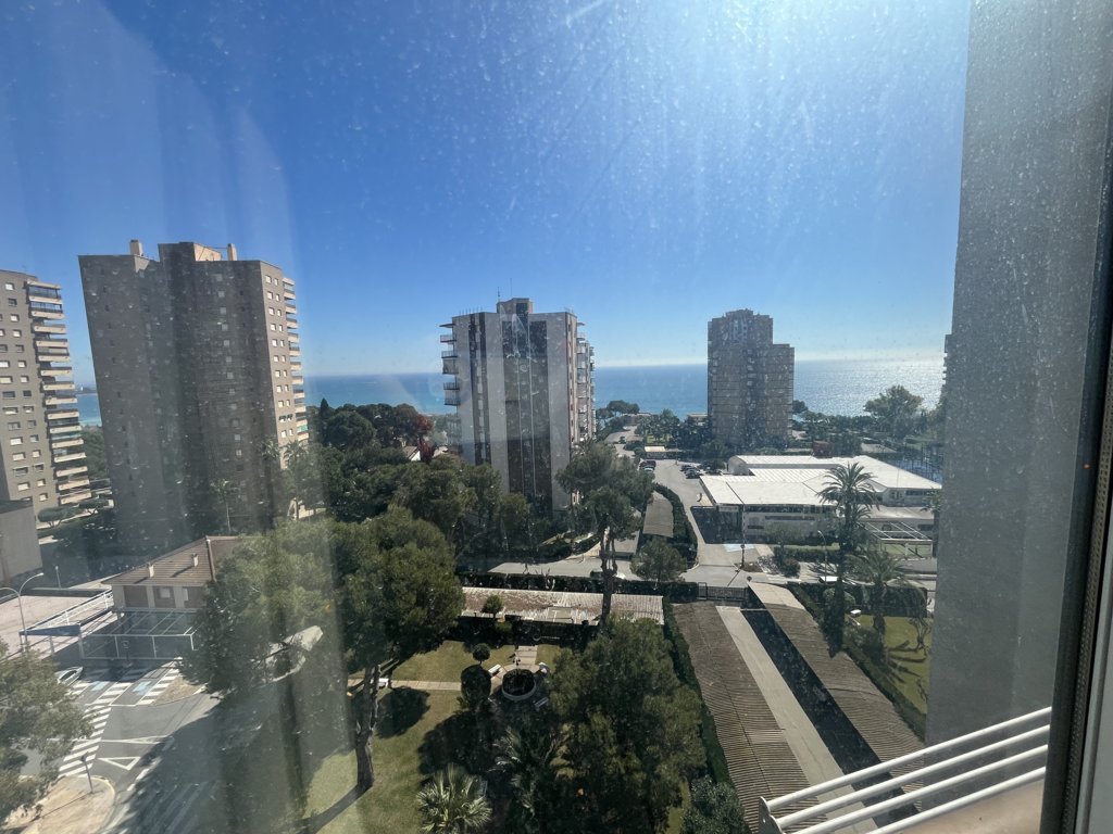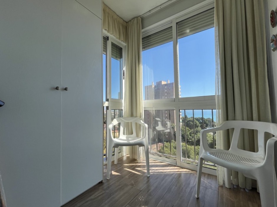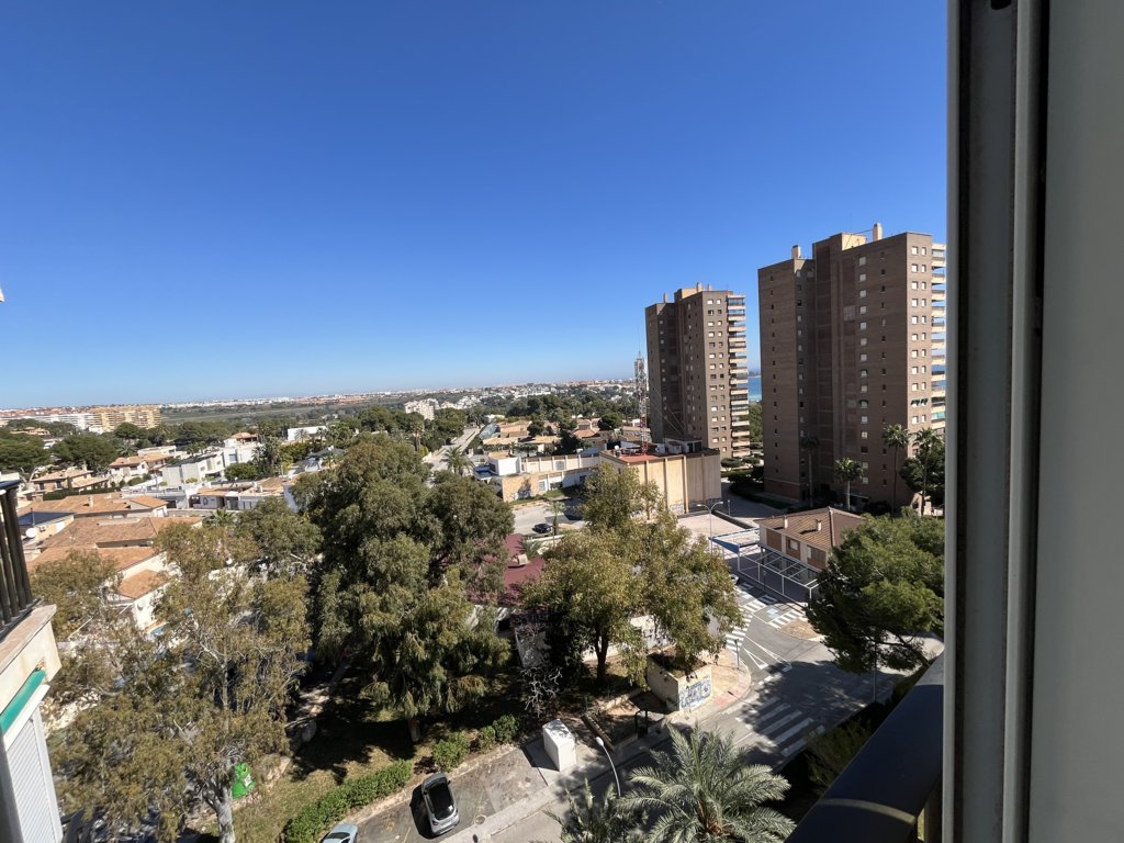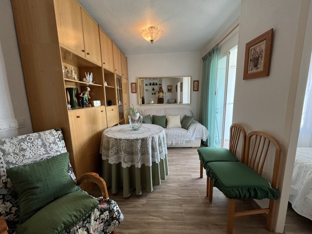 Este fantastico estudio se encuentra en la planta 9 del edificio Rhin, con unas vistas espectaculares y una orientación a Levante envidiable. Su terraza está acristalada y deja este espacio perfecto para acondicionarlo tanto en verano como en inviern La vivienda es muy luminosa, y está refomrada, tanto baño como cocina y el salon está adecuado con mucho confort. El dormitorio es independiente con una amplia ventana. Dispone de zona de aparcamiento y servicio de porteria 365 24/7 views. Has a bright living room with air conditioning and a sofa bed. The bedroom is independent with a large window. The American kitchen is well equipped. The bathroom has a shower. It has a community parking space. The house is close to all services, restaurants, cinema, bars, green areas, playgrounds and the best spectacular beaches in Campoamor..
