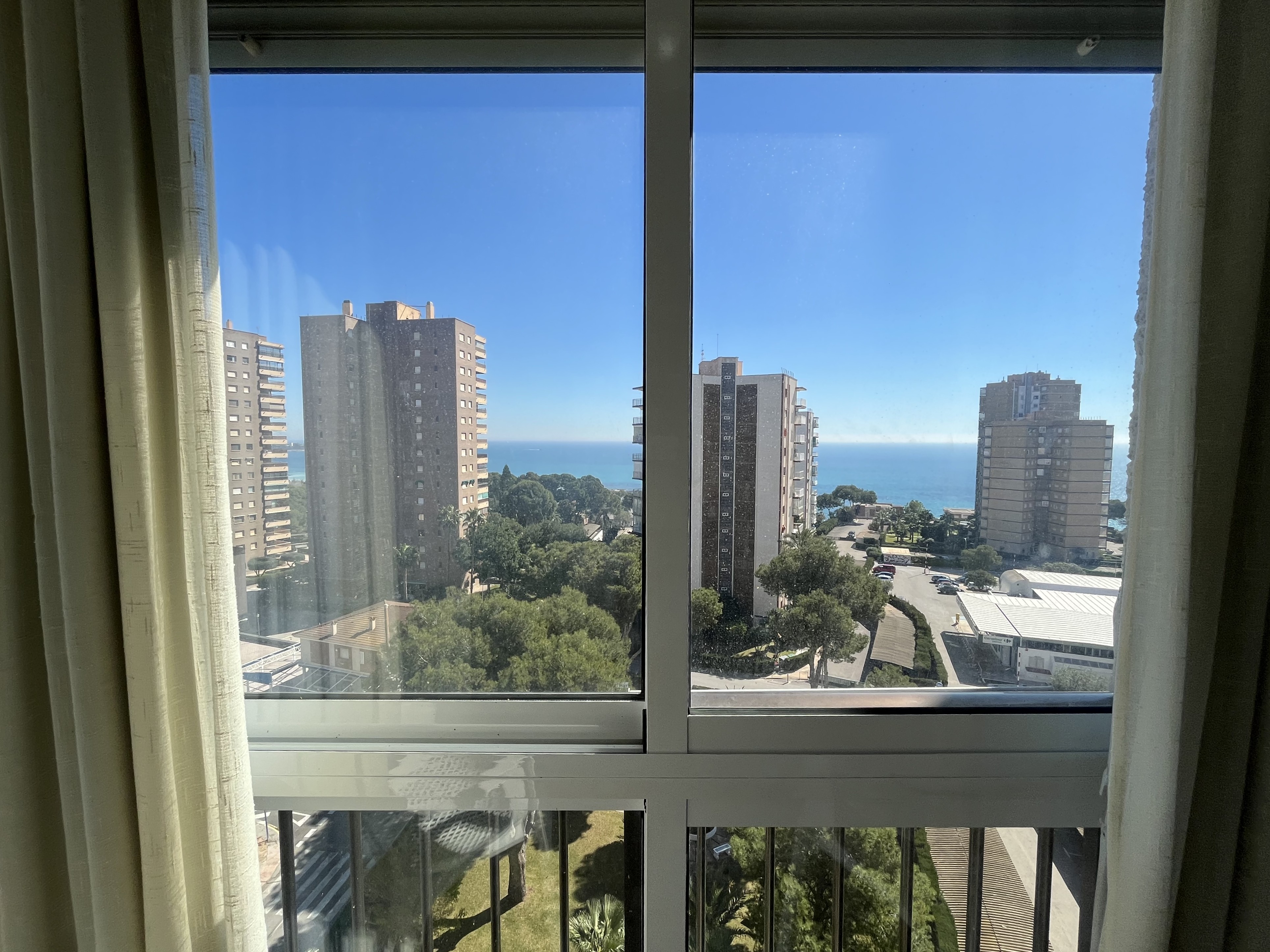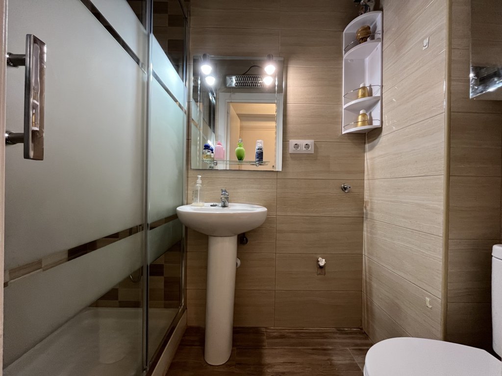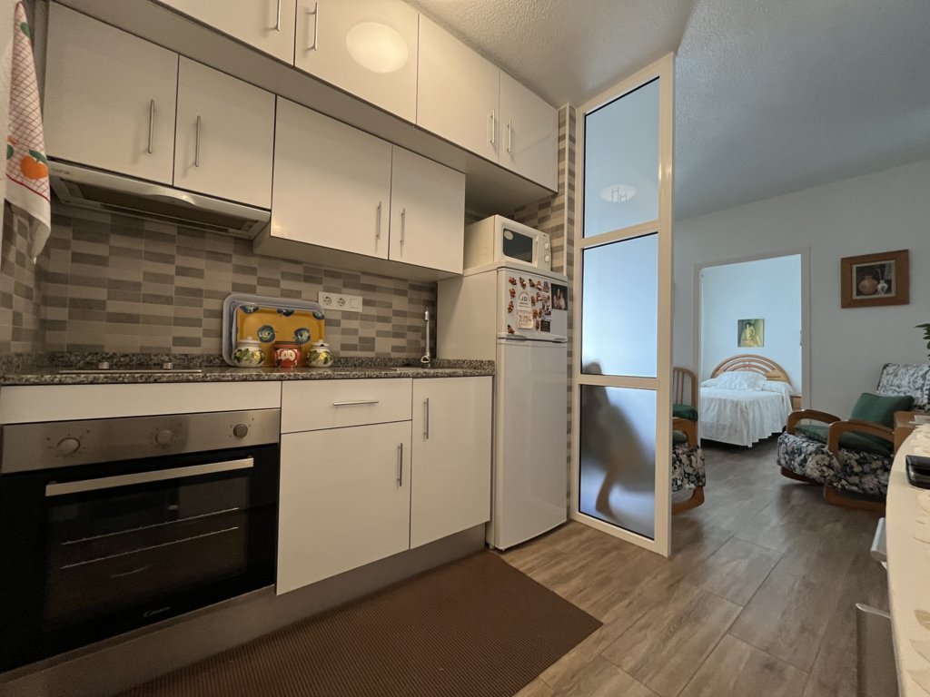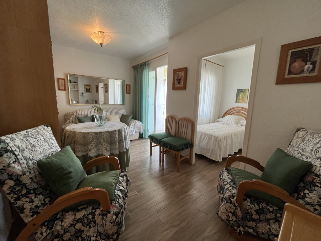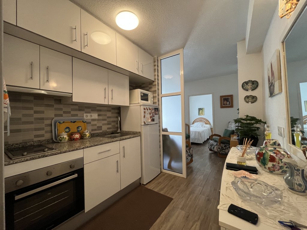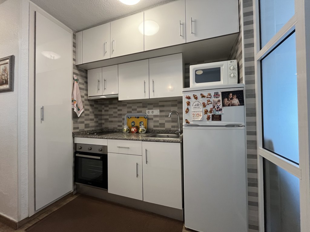 Este fantastico estudio se encuentra en la planta 9 del edificio Rhin, con unas vistas espectaculares y una orientación a Levante envidiable. Su terraza está acristalada y deja este espacio perfecto para acondicionarlo tanto en verano como en inviern La vivienda es muy luminosa, y está refomrada, tanto baño como cocina y el salon está adecuado con mucho confort. El dormitorio es independiente con una amplia ventana. Dispone de zona de aparcamiento y servicio de porteria 365 24/7 views. Has a bright living room with air conditioning and a sofa bed. The bedroom is independent with a large window. The American kitchen is well equipped. The bathroom has a shower. It has a community parking space. The house is close to all services, restaurants, cinema, bars, green areas, playgrounds and the best spectacular beaches in Campoamor..
