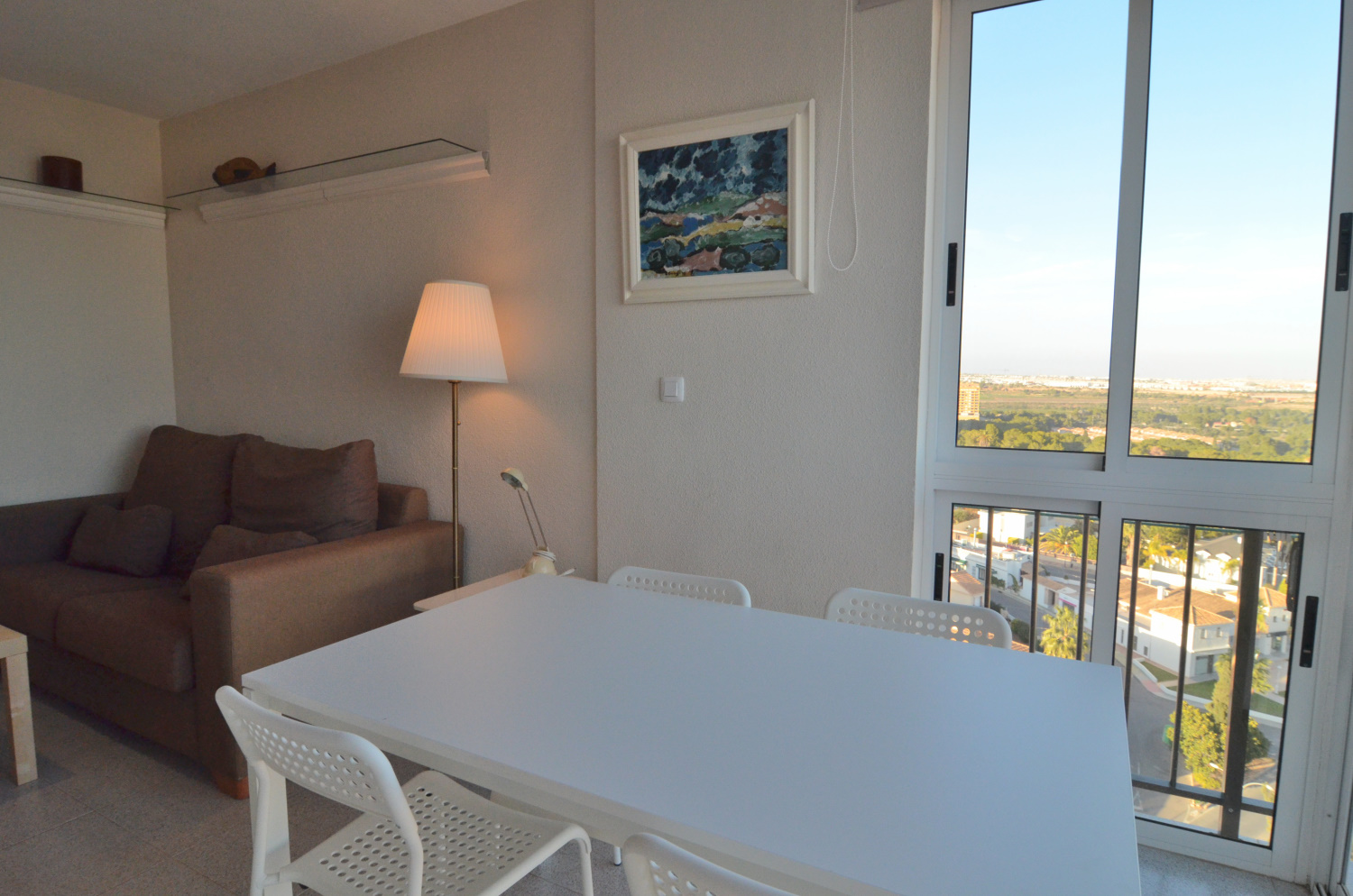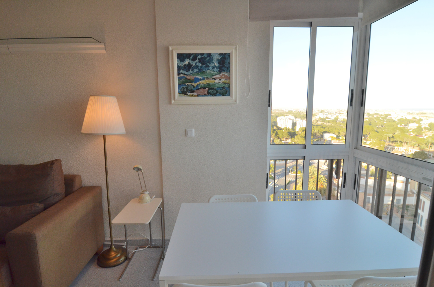 Bonito estudio en el centro de Dehesa de Campoamor completamente reformado. El piso consta de un dormitorio, un cuarto de baño completo con ducha, salón-comedor, cocina, terraza acristalada con preciosas vistas al mar. Además el edificio consta de parking privado y servicio de porteria. Este apartamento no se puede reservar por menos de 11 noches. Es una estancia mid term conforme al Decreto Ley 9/2024 del gobierno de la Comunidad Valenciana..