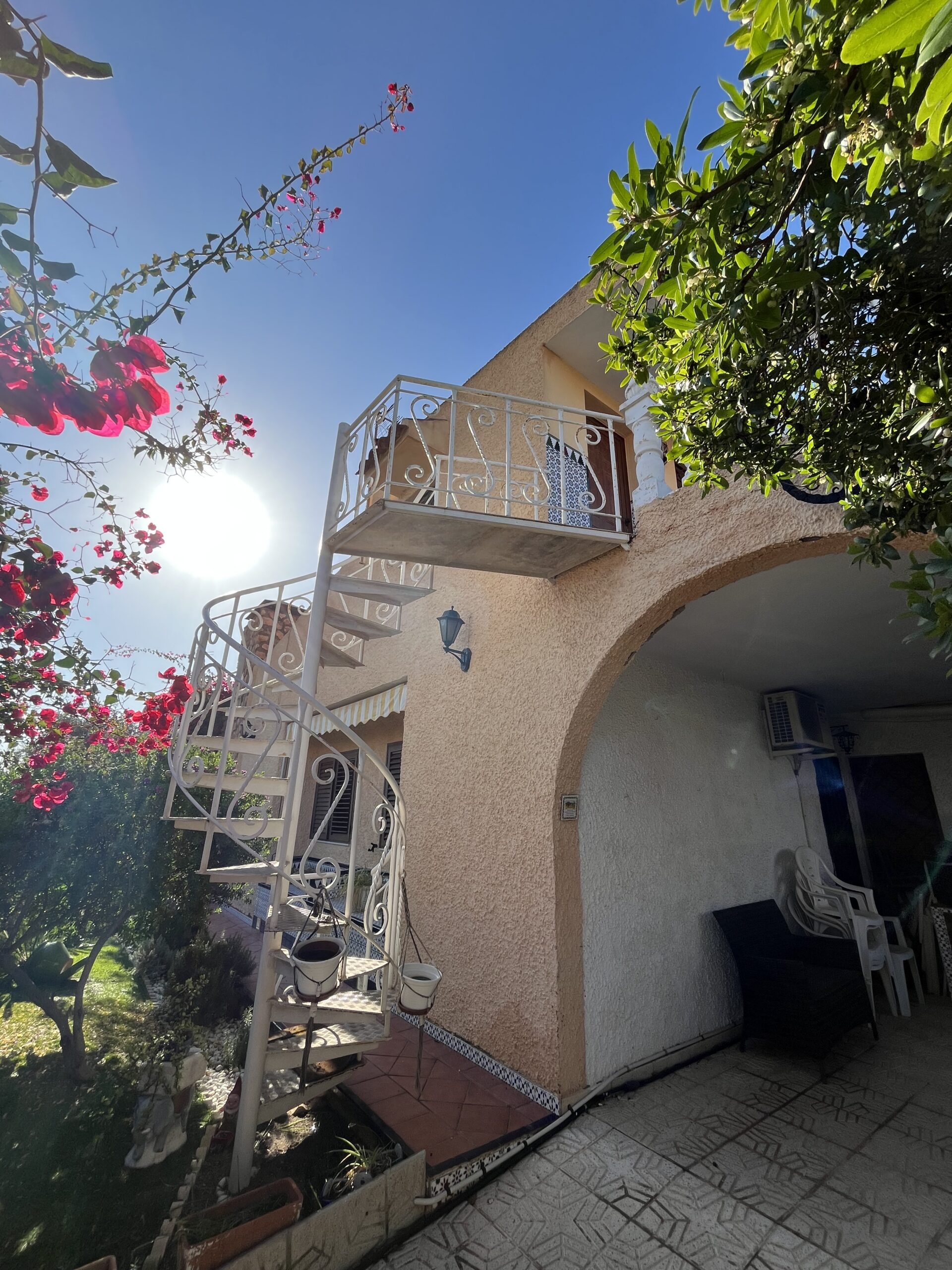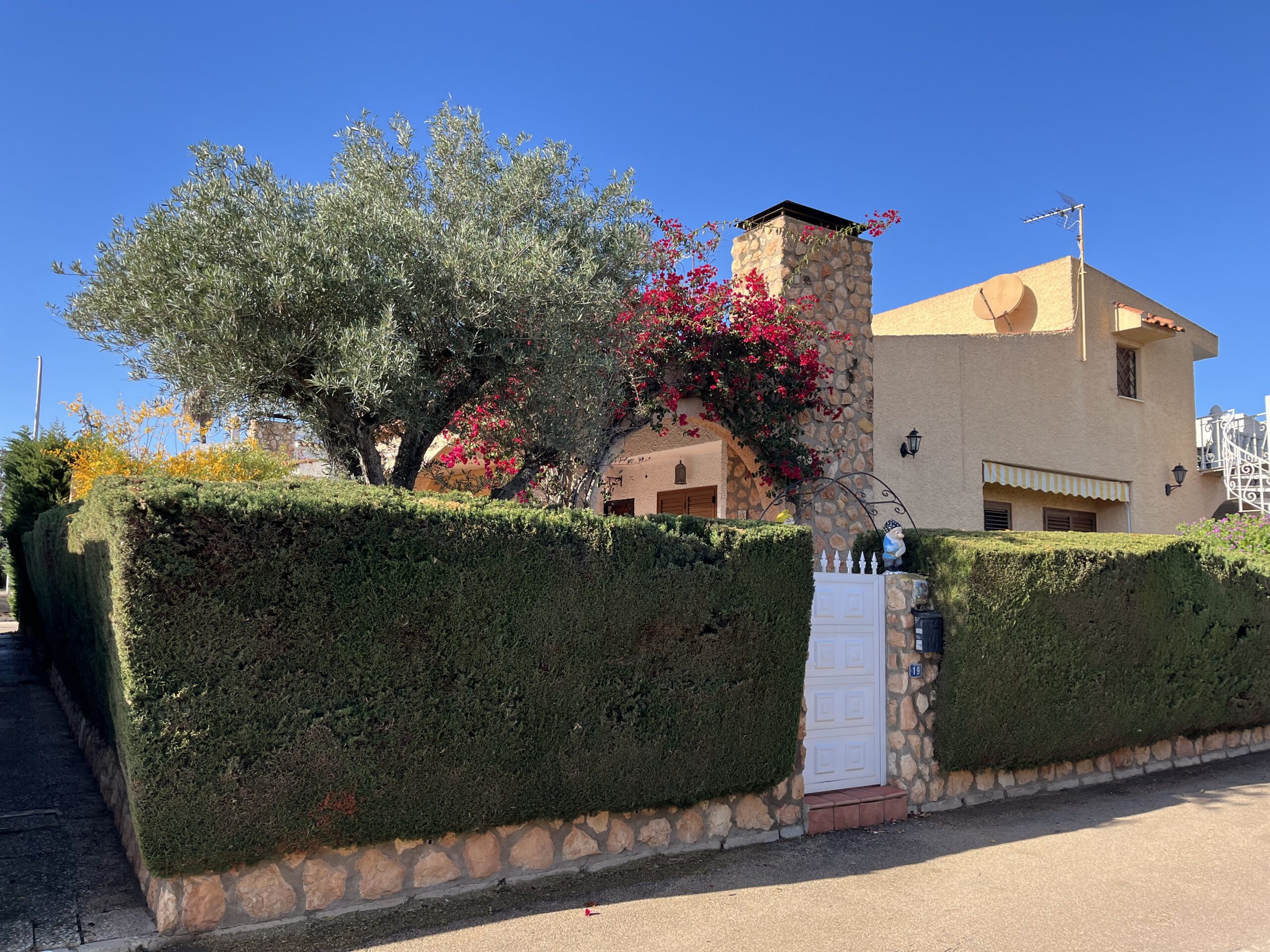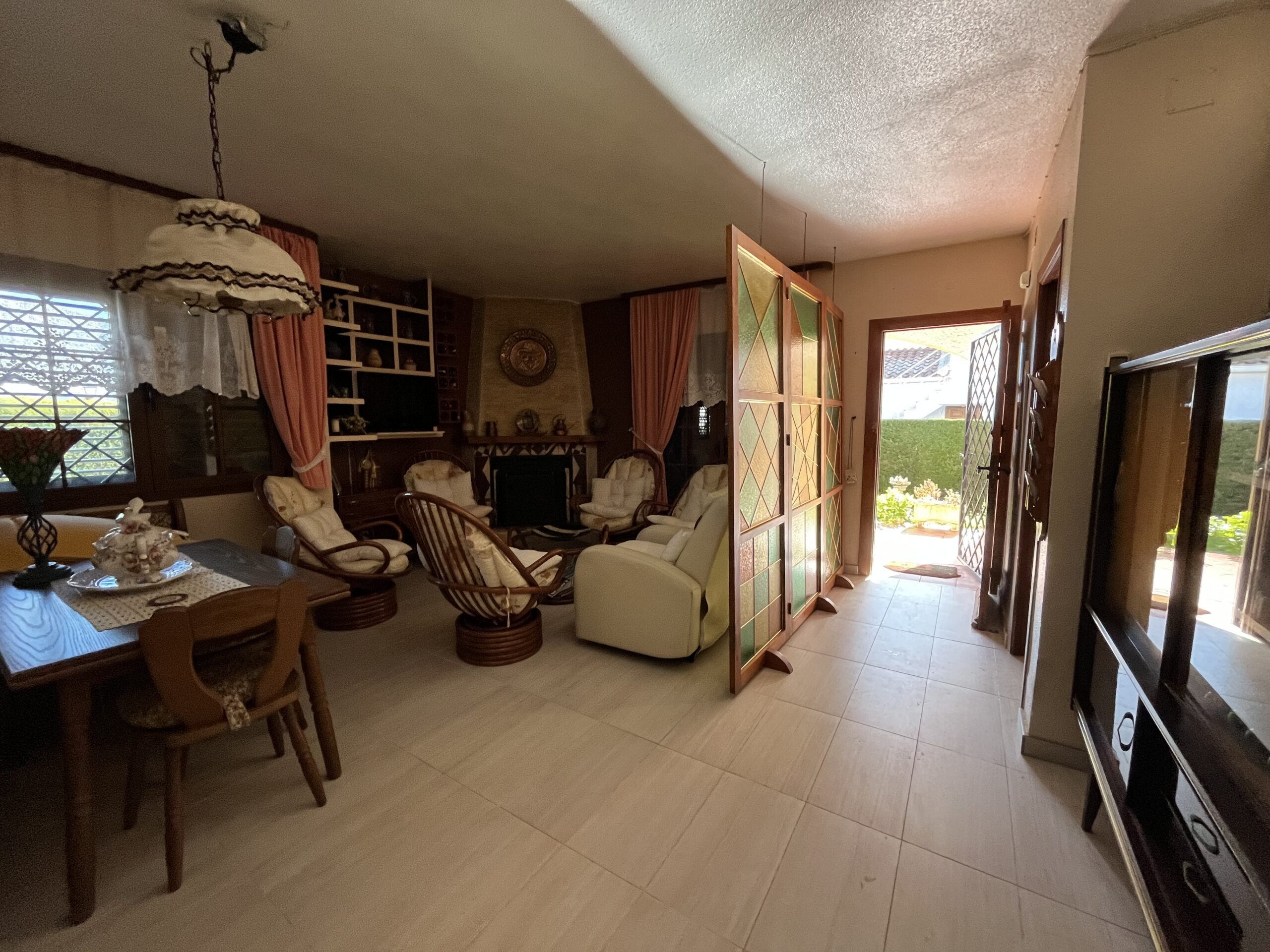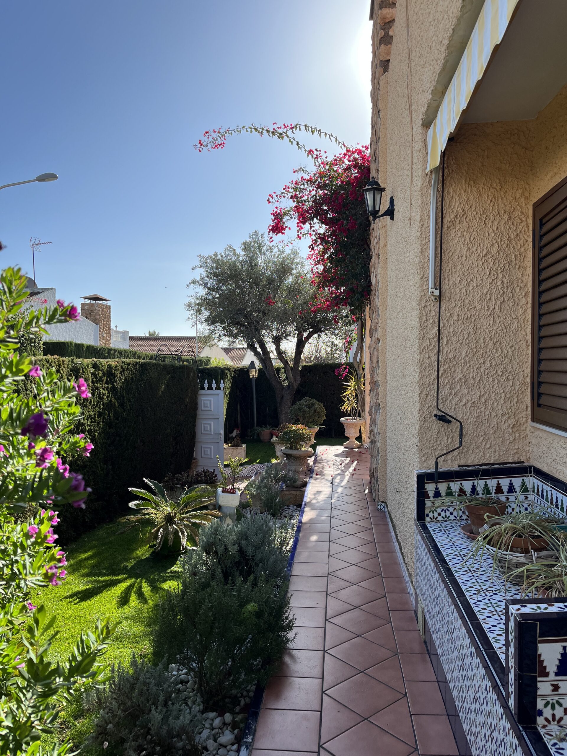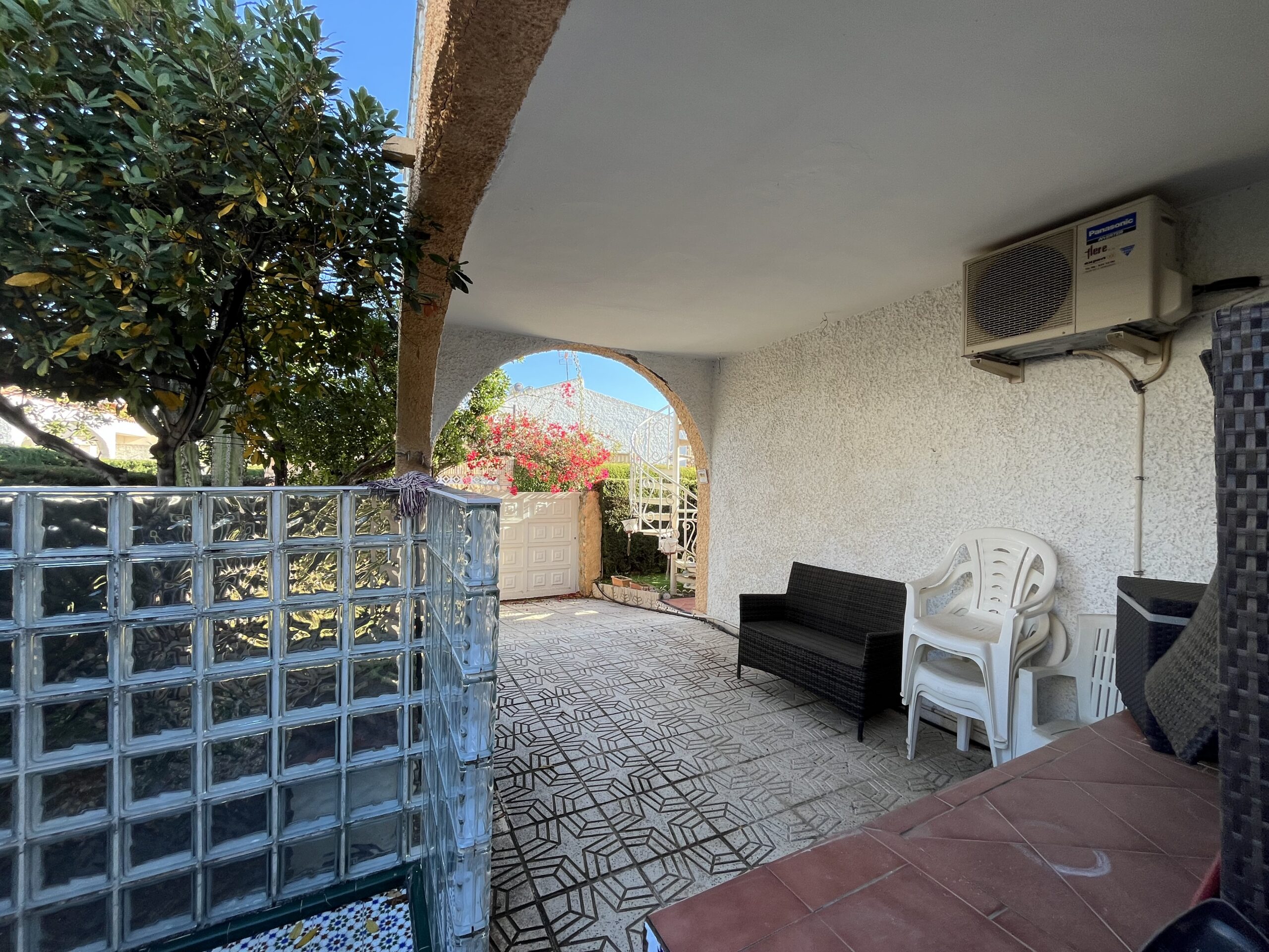 En la zona de las Villas II, encontramos este maravilloso adosado GEMINIS Tipo Duplex con muchas cualidades, entre ellas su gran orientación para el verano, puesto que es una casa que mira a Levante, osea este, lo que la convierte en una vivienda muy fresca para el verano. Nos gusta que han mantenido la vegetación en el exterior con bonitos arboles altos que dan sombra, muchas plantas y el cesped que rodea parcialmente la casa. Además, la casa la han ido reformando por lo que ya tiene mucho camino hecho. Desde sus exteriores, con toda la parte nuevamente enlosada, encontramos la terraza principal, que es la terraza frontal cubierta, y al otro ala encontramos la entrada al garaje zona la cual han habilitado tanto para meter el coche y dejarlo cubierto, como para hacer uso del mismo para comidas y reuniones varias, puesto que han habitalado y construido una zona como de barra,. más una zona de ducha exterior, y un trastero. Esta zona trasera tambien hay una puerta con acceso a la casa y una escalera que conecta con la parte superior a los 3 dormitorios de arriba. La zona superior está preprada con una gran terraza de entrada a cada una de las habitaciones. Bajamos a la zona principal de la casa, con una gran zona de salón conectada con el comedor, mucha luz y chimenea, al otro lado la nueva cocina completamente refomada con salida a una terraza acristalada- salita- comedor Por otro lado hablar de sus 2 dormitorios completos uno de ellos con baño en suit reformado y ventilado, un segundo dormitorio muy amplio con armario empotrado y su segundo baño..