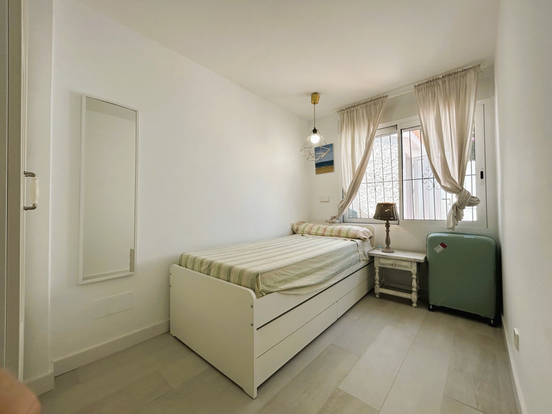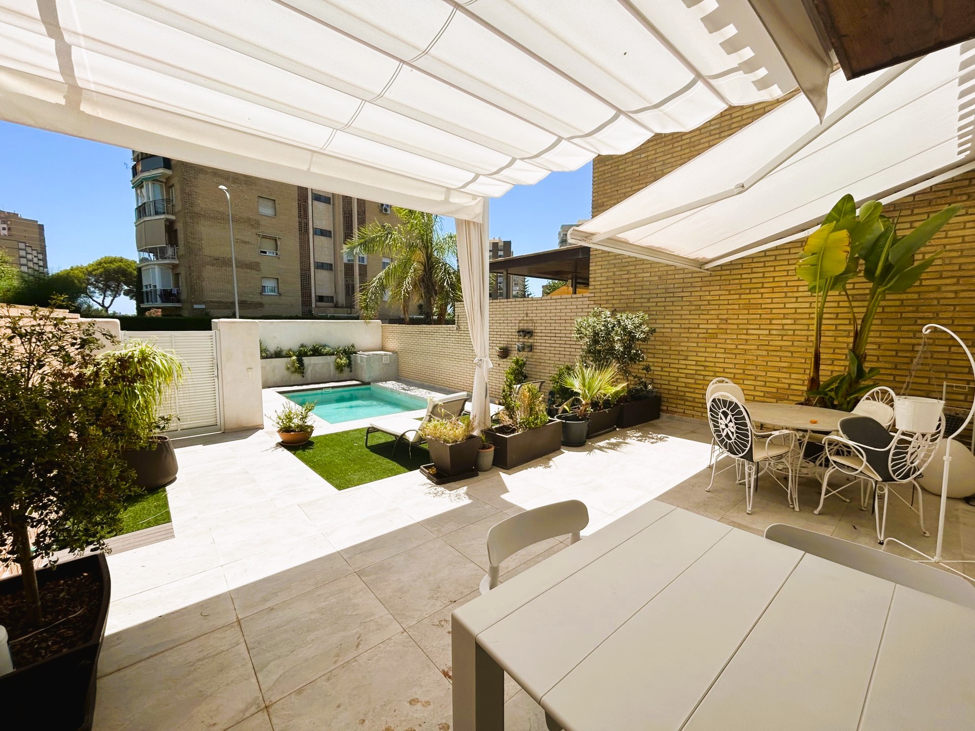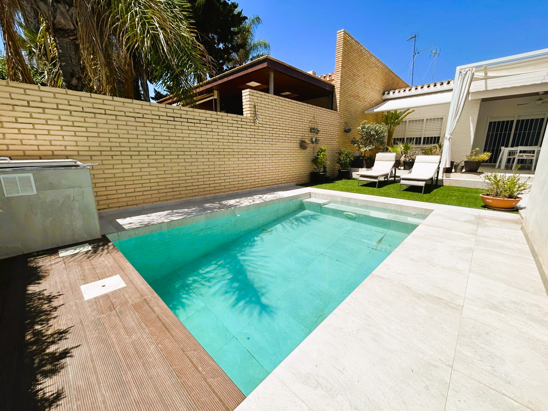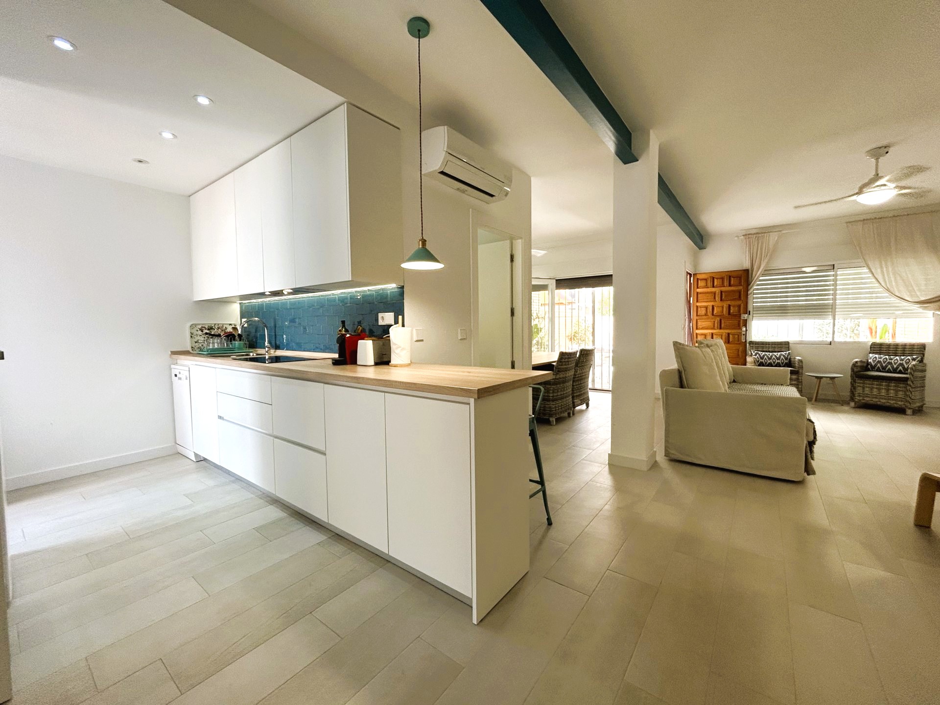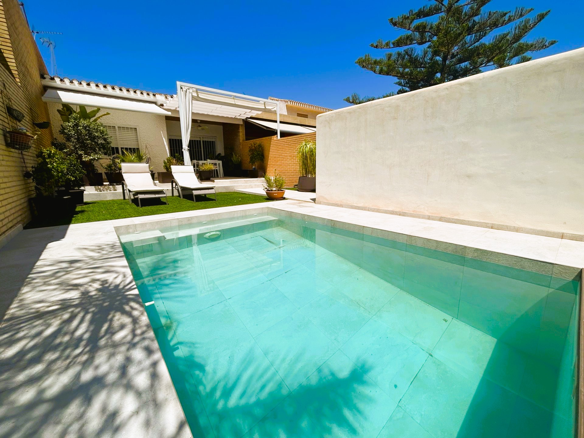 Increíble mini chalet en Campoamor completamente reformado con piscina privada a tan solo 350 metros de la playa. La vivienda tiene un porche cubierto con ventilador de techo ideal para disfrutar de una comida en familia. El salón comedor es muy luminoso y amplio, la cocina americana tiene acceso a un patio exterior con zona de lavadero. Tiene un total de dos dormitorios y dos baños. La vivienda pertenece a la zona de las Villas con acceso a una zona comunitaria con piscina y zonas verdes. Se encuentra cerca de todos los servicios, bares, restaurantes, zonas verdes, supermercado y las mejores playas de la zona..